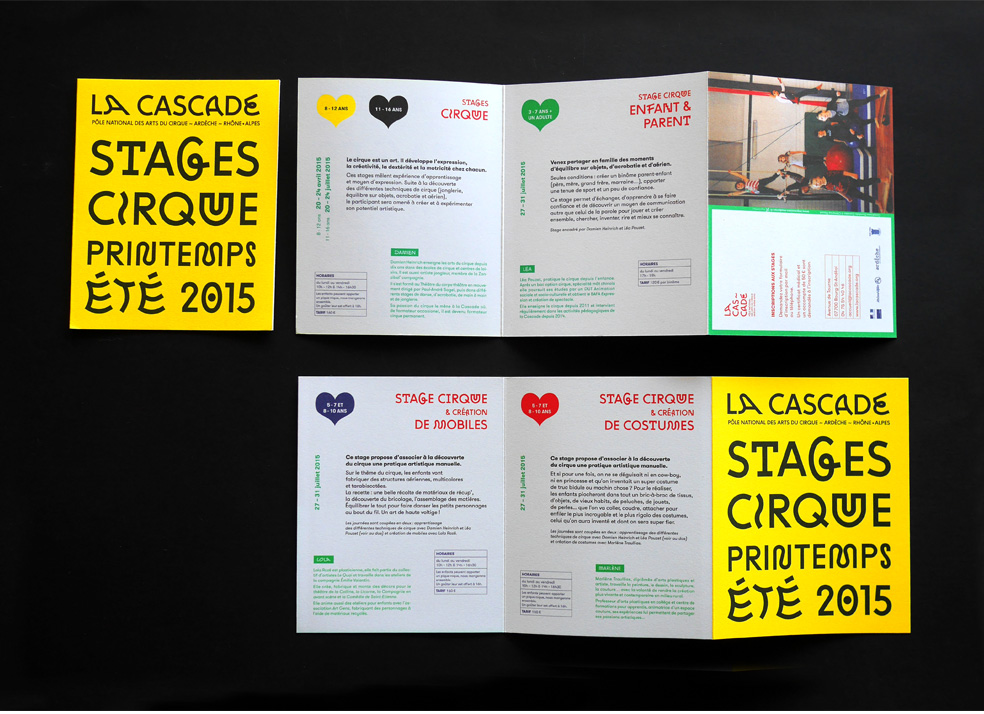 La Cascade Contributed by Benoît Bodhuin on Aug 4th, 2015. Artwork published in 2015. Source: clemencepassot.com Clémence Passot. License: All Rights Reserved. La Cascade – National Division Of Circus Arts – is a place of creation, training and research, broadcasting and meeting with the public around the circus arts. Design: Clémence Passot and Dorothée Caradec Type: Zigzag and GT Walsheim Source: clemencepassot.com Clémence Passot. License: All Rights Reserved. Source: clemencepassot.com Clémence Passot. License: All Rights Reserved. Source: clemencepassot.com Clémence Passot. License: All Rights Reserved. Source: clemencepassot.com Clémence Passot. License: All Rights Reserved. Source: clemencepassot.com Clémence Passot. License: All Rights Reserved. Typefaces More about ZigzagGet ZigzagMore about GT WalsheimGet GT Walsheim Formats Branding/Identity (8358) Booklets/Pamphlets (2379) Topics Event (3173) Performing Arts (982) Designers/Agencies Clémence Passot (3) Dorothée Caradec (1) Tagged withcircus arts (1)cultural festivals (132)circus (27)programs (630) Artwork location France (2803) Bourg-Saint-Andéol (1) In SetsIdentity (Danno) (13)FLYER (Batool Almosawi) (14)Festival Identity (personne1) (8)small brochure (Fabian Wilczek) (11)4th Street (Madison Abernethy) (8)PHANTA (Leonardo de la Fuente) (285) Post a comment Name Email – will not be published Website Your response Submit Comment More Zigzag in use Ssserpent coloring book2019ChamoContributed by Benoît Bodhuin All Eyes On Hip Hop2017Stephanie SpechtContributed by Benoît Bodhuin “Le bonheur” fresco2017PamContributed by Benoît Bodhuin Sponsor More in Event Michael Waters poetry reading poster2023StudioRd DesignContributed by StudioRd Design Expiration Date exhibition at RISD2024Deborah KhodanovichAndrea MatoContributed by Deborah Khodanovich Congreso Sopnia 20202020Bruno JaraContributed by Bruno Jara Super Bowl VIII tickets1974unknownContributed by Florian Hardwig Staff Pick More in Branding/Identity Doroni Aerospace2023Contributed by Tural Alisoy MCCANNPR Romania2014StorienceContributed by Stefan Liute Hope & Anchor brandingRosie LeeContributed by Mark Fleming 3466 Literature Prizec. 2022TundraContributed by Ivo Gabrowitsch Staff Pick More Fonts In Use CNET France2017CNETContributed by Darden Studio Staff Pick The Stars Now Unclaimed by Drew Williams (Simon & Schuster)2018Jack SmythContributed by Florian Hardwig Staff Pick Zett magazine, issue 182025Samuel MartyContributed by Ludwig Übele Staff Pick U&lc, Vol. 1 #2, 19741974Herb LubalinContributed by Stéphane Darricau Staff Pick