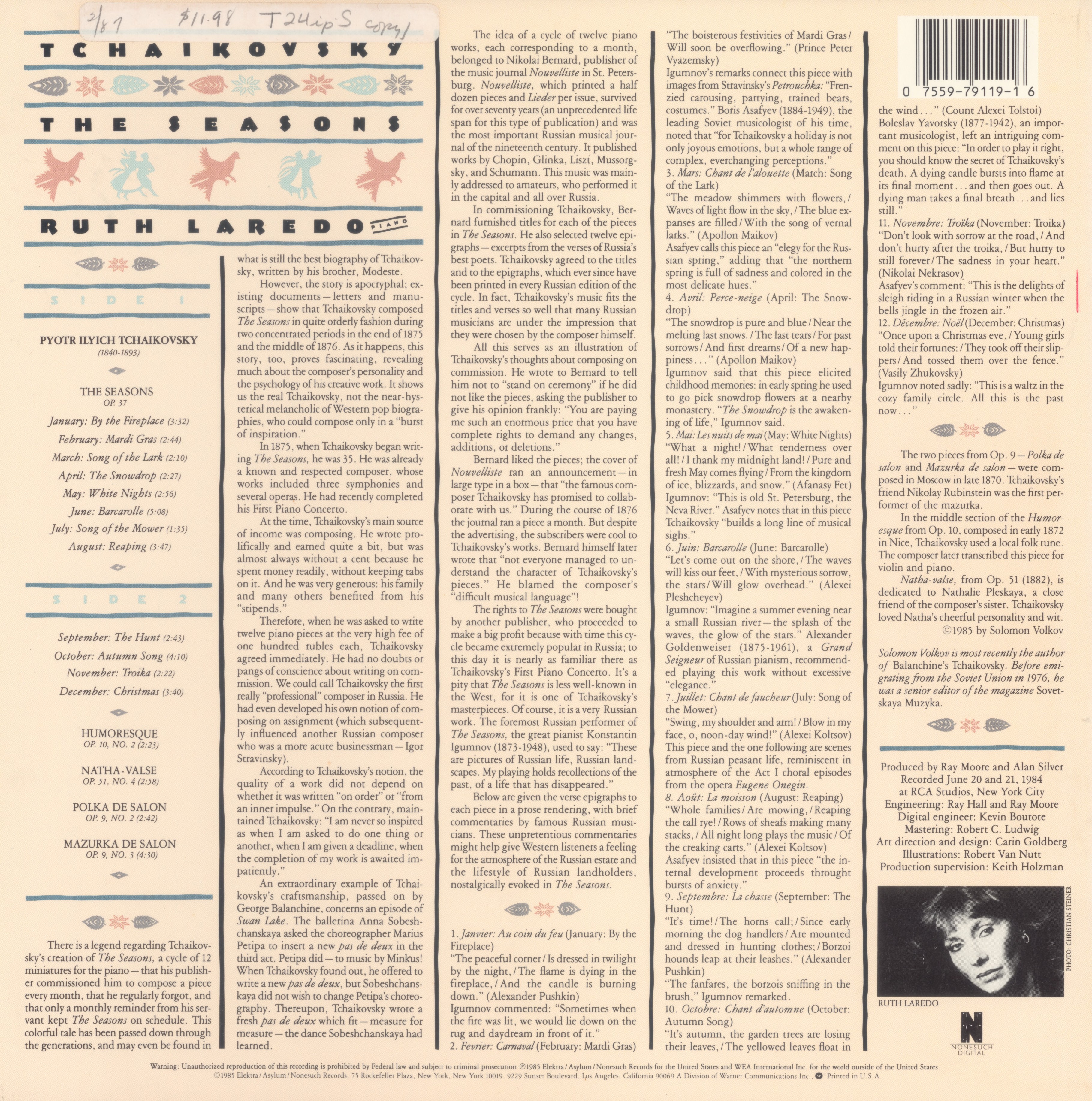 Ruth Laredo – Tchaikovsky: The Seasons album art