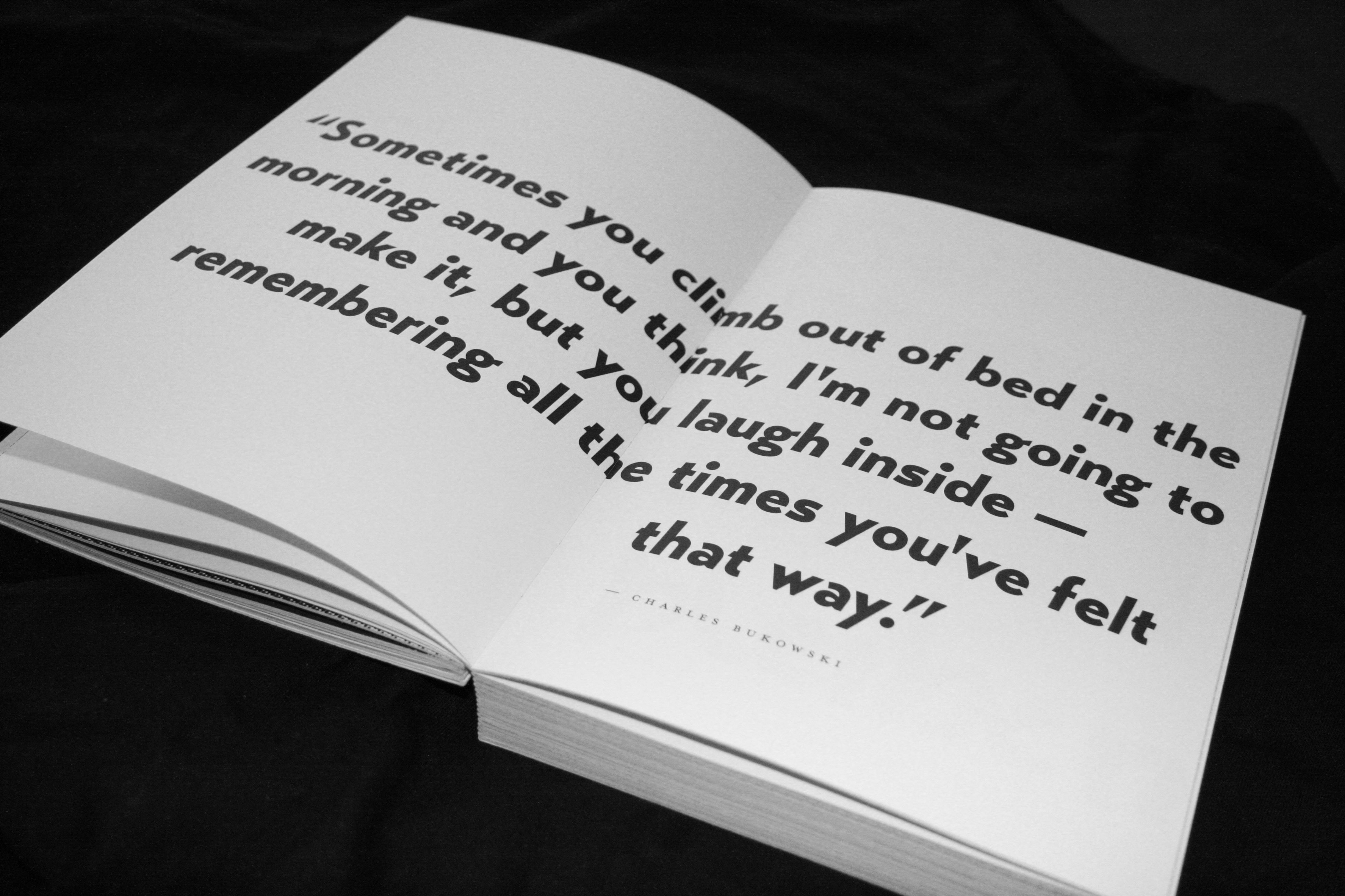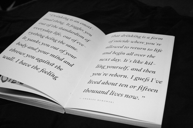 Punch—Drunk—Love Contributed by flo doe on Aug 14th, 2015. Artwork published in circa July 2015. Source: www.behance.net ©schoener. License: All Rights Reserved. Punch Drunk Love — a book about Bukowski, drinks, women & stuff. Personal, non-commercial project. 340 pages. Source: www.behance.net ©schoener. License: All Rights Reserved. Source: www.behance.net ©schoener. License: All Rights Reserved. Source: www.behance.net ©schoener. License: All Rights Reserved. Source: www.behance.net ©schoener. License: All Rights Reserved. Source: www.behance.net ©schoener. License: All Rights Reserved. Source: www.behance.net ©schoener. License: All Rights Reserved. Source: www.behance.net ©schoener. License: All Rights Reserved. Source: www.behance.net ©schoener. License: All Rights Reserved. Typefaces More about Elegant LuxGet Elegant LuxMore about TransatGet TransatMore about CapsaGet CapsaMore about Acta PosterGet Acta PosterMore about EroticaGet EroticaMore about Dream ScriptGet Dream ScriptMore about Dream CapsGet Dream CapsMore about LinceGet Lince Formats Books (6479) Topics Other (257) Designers/Agencies schoener (4) Tagged withbook covers (5820)editorial design (606)non-profit (156)typeface combinations (3900)uses by the typeface’s designer (1249)exposed binding (170)lettering (676)Charles Bukowski (2)poetry (388)typographic eclecticism (284)self-initiated projects (426) Artwork location Germany (3834) Augsburg (14) In Setstypo licence theatre (Benoit Camille) (18)Brochure (Michael Nordstrand) (10)BONNE TYPO (Aurore ororgraphic) (43)elegant (Gayle t-k-s) (4) Post a comment Name Email – will not be published Website Your response Submit Comment More in Other Robert Joseph Coles gravestone2008Stephen ColesPhoto(s) by Stephen Coles on Flickr. 60 Yılın Ardından Anıları ve Zamanı Biriktirmek2023Ali Emre DoğramacıContributed by Ali Emre Doğramacı Anthony Froshaug gravestonec. 1987Françoise BerserikContributed by Florian Hardwig Staff Pick Sponsor More in Books Ornament Is Crime, Phaidon2017unknownContributed by The Foundry Types Afterparties by Anthony Veasna So2020Elizabeth YaffeContributed by XYZ Type The Brother by F.D. Reeve (Farrar, Straus & Giroux)1971Pat de GrootContributed by Herb Lubalin Study Center Stargate by Pauline Gedge1982Diane DillonLeo DillonContributed by Bryson Stohr More Fonts In Use “Be” poster series2022Micah ShannonContributed by Miles Newlyn Staff Pick Dummy magazine #42 “Verlierer”2014Nils KüppersRené SiegfriedContributed by Matthijs Sluiter Staff Pick Guglhupf Bar2023AcuteContributed by Hrvoje Živčić Staff Pick Telegraf magazine no. 1, “Ukrainian Design”2021LLIWELLNonna StarushchenkoGlib KaporikovContributed by Svitlana Tolmach (Rentafont) Staff Pick Black & Brown ad: “$1–$5 Sale!”2014Kimmy NguyenContributed by Frank Grießhammer Staff Pick One Idea, One Book exhibition2023Finn ReduhnKatharine WatzlawickContributed by Moritz Appich Staff Pick Der Lebhag by Meinrad Inglinc. 2013Nadine SpenglerContributed by Nouvelle Noire Staff Pick The Capitols – Dance The Cool Jerk album art1966Loring EutemeyContributed by Florian Hardwig Staff Pick