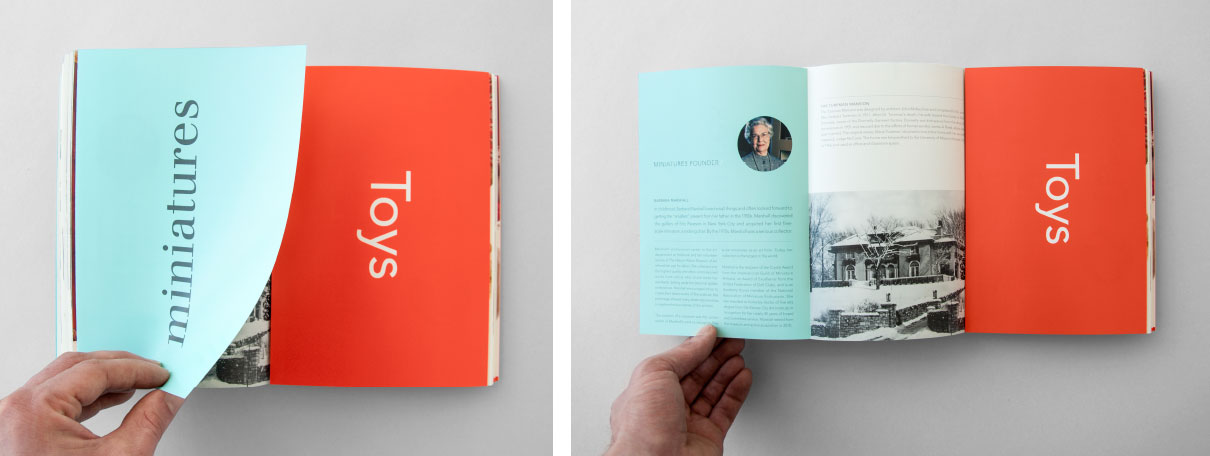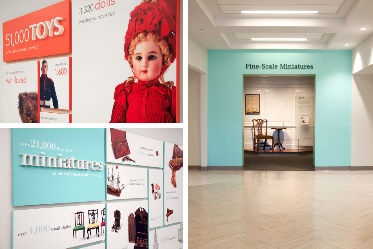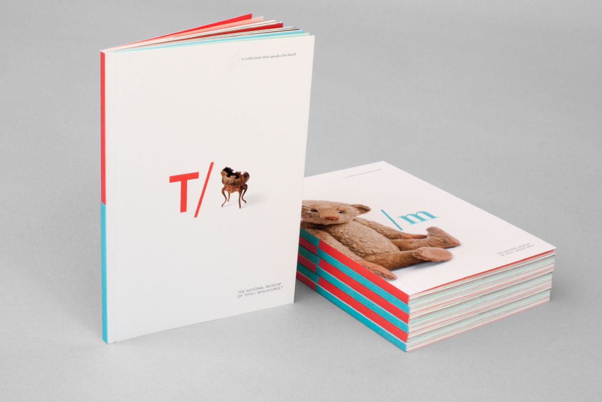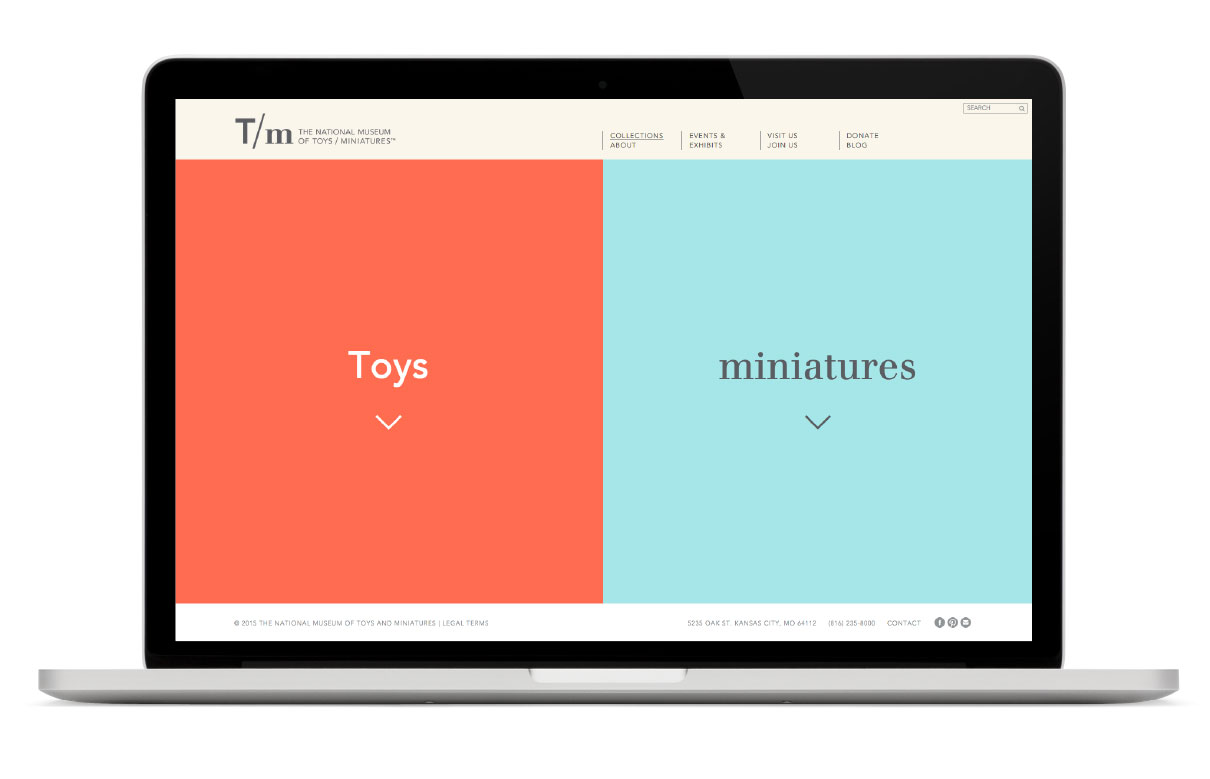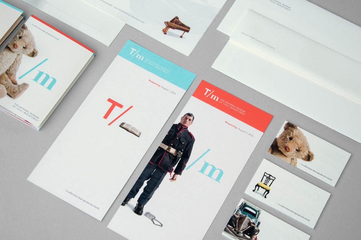 Over the past year, the National Museum of Toys and Miniatures in Kansas City, Missouri (NOT Kansas) has renovated its building, its displays, and its branding. 'Toys’ ≠ 'Miniatures’, so Design Ranch, also of Kansas City, emphasizes the differences between them with two typefaces and two colors.