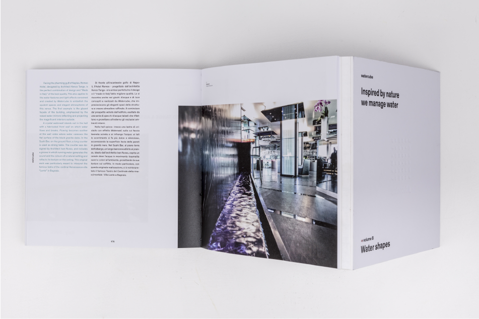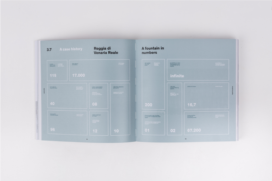 Watercube is a strongly passionate fountain consultancy firm that combines creativity and engineering required in water control. Theinhardt is a classic Grotesque typeface by Optimo Type Foundry named after Ferdinand Theinhardt, a punch-cutter and type designer, whose radical design approach led to the contemporary modern sans-serifs. For this rebrand and editorial project, it was the perfect fit since it conveys elegance, simplicity and strength with precision, which is the main core characteristic of the client. As it happens with Grotesque fonts projects, Watercube gets inspiration from tradition to deliver modern concepts.