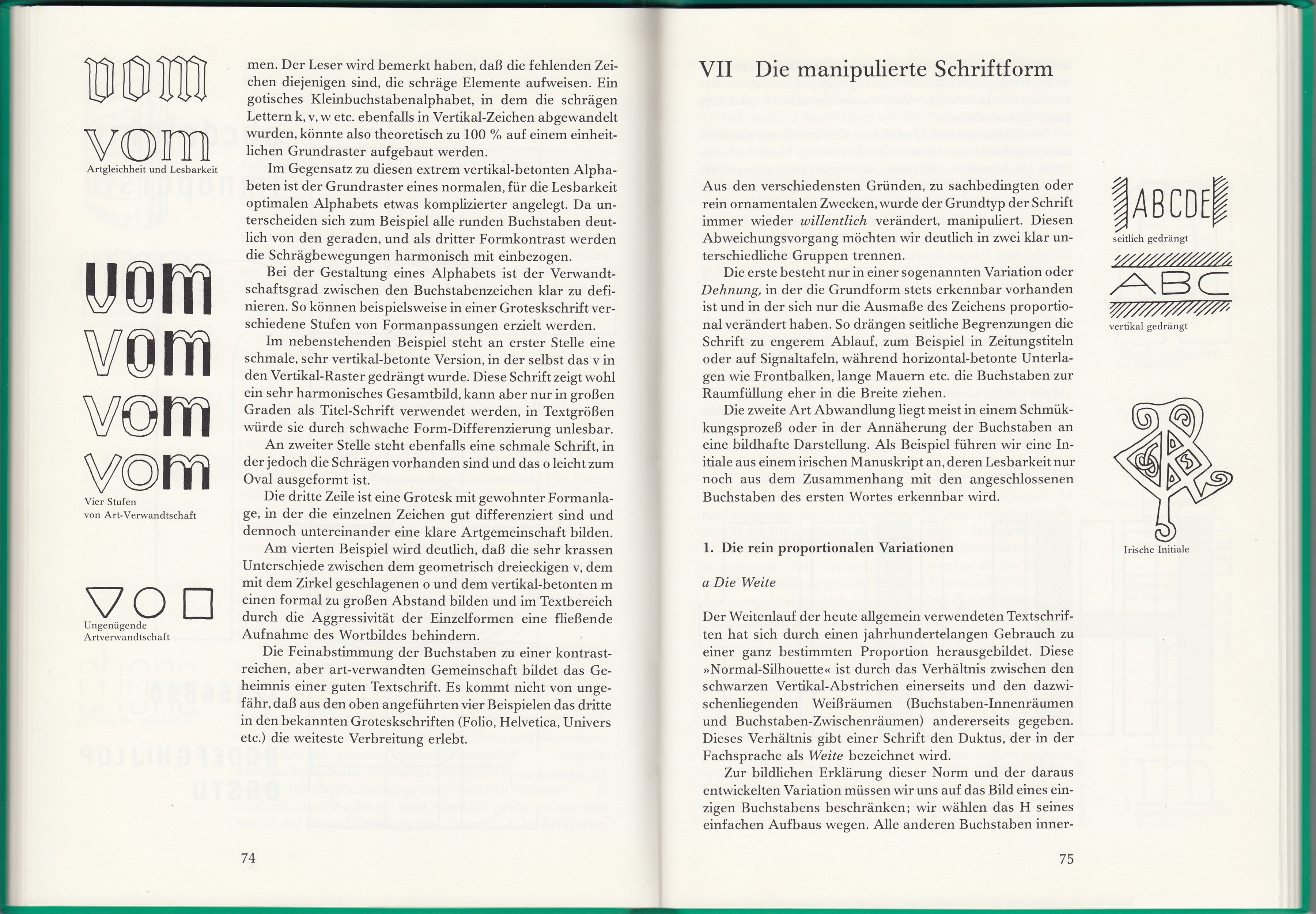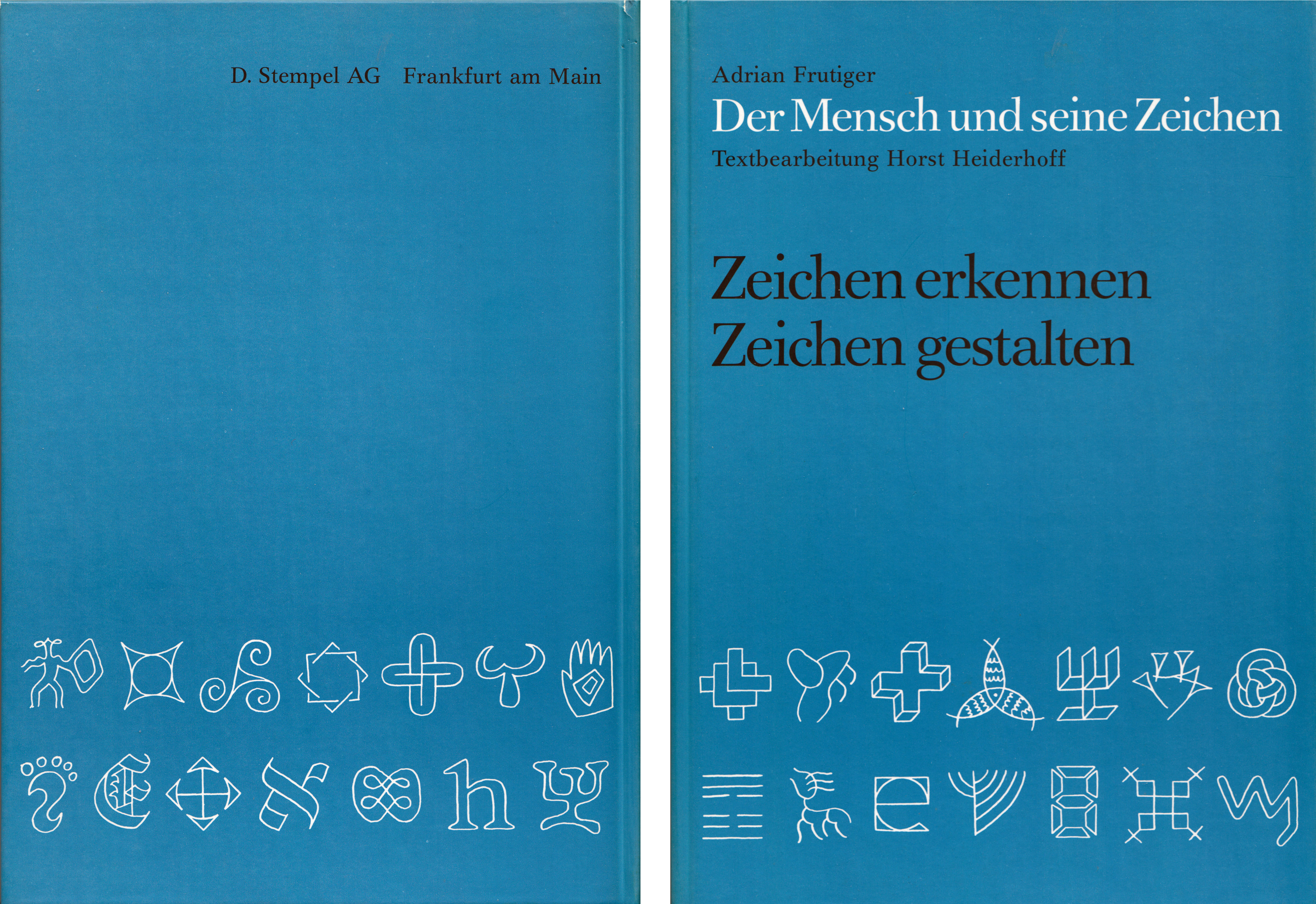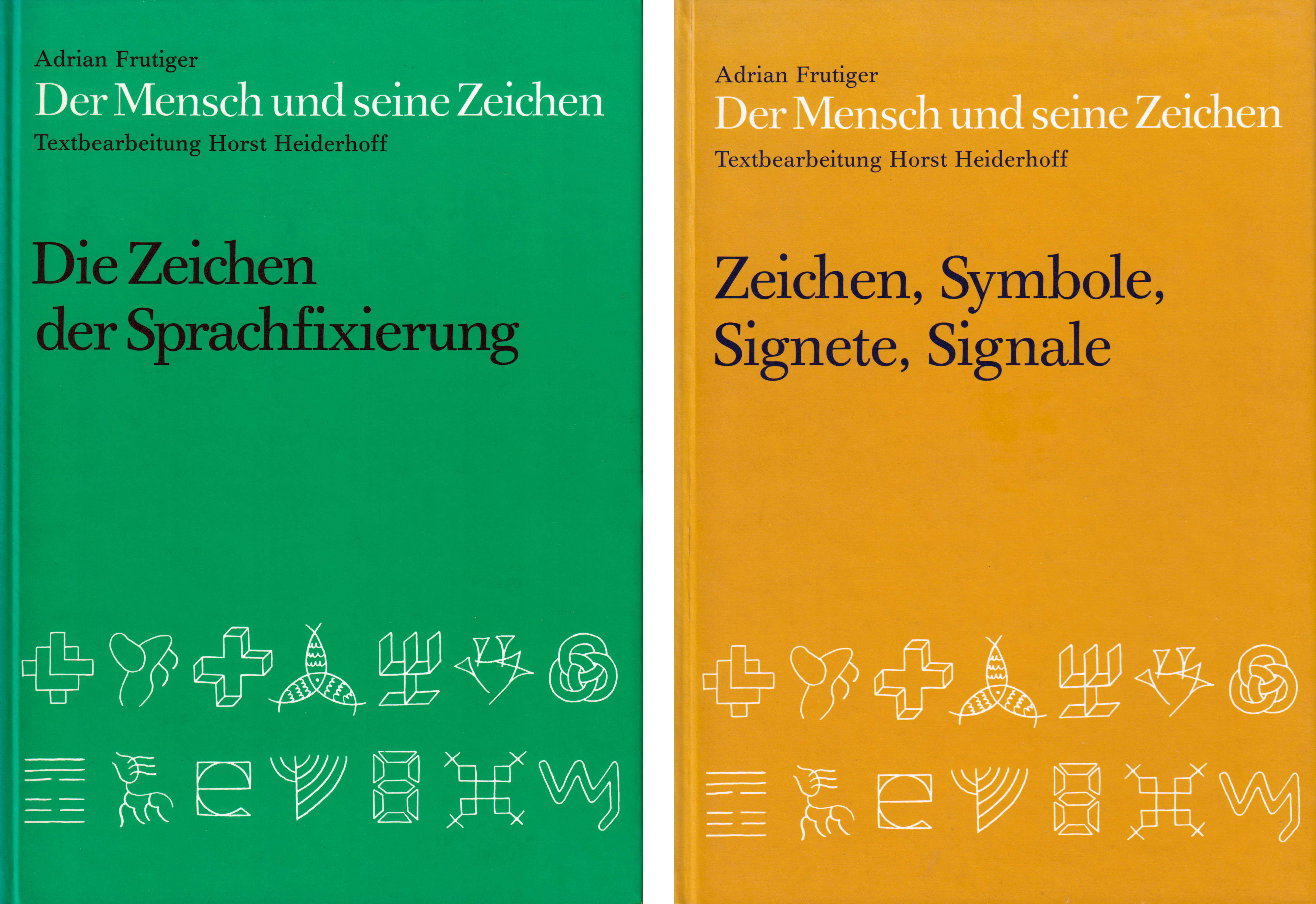 “Man and his signs” is a series of books written and illustrated by Adrian Frutiger. The content is based on the teaching materials as used in his classes at École Estienne (1952–1960) and ESAD (1954–1966)¹ and comprise his thoughts on signs and symbols. Volume 1 is generally about recognizing and designing signs, while volume 2 more specifically deals with the characters that are used to record language. The third volume is concerned with pictograms, non-alphabetic symbols, and signets.