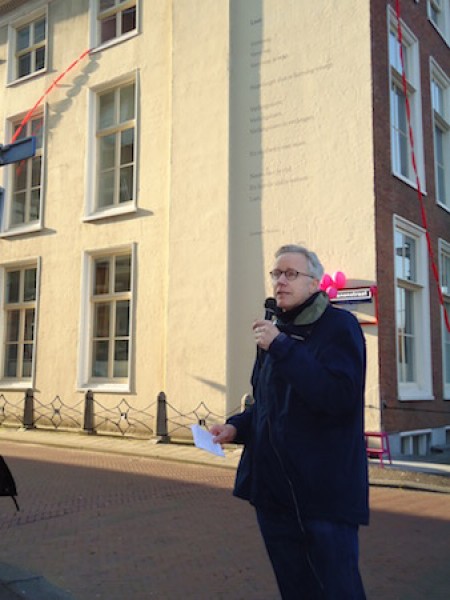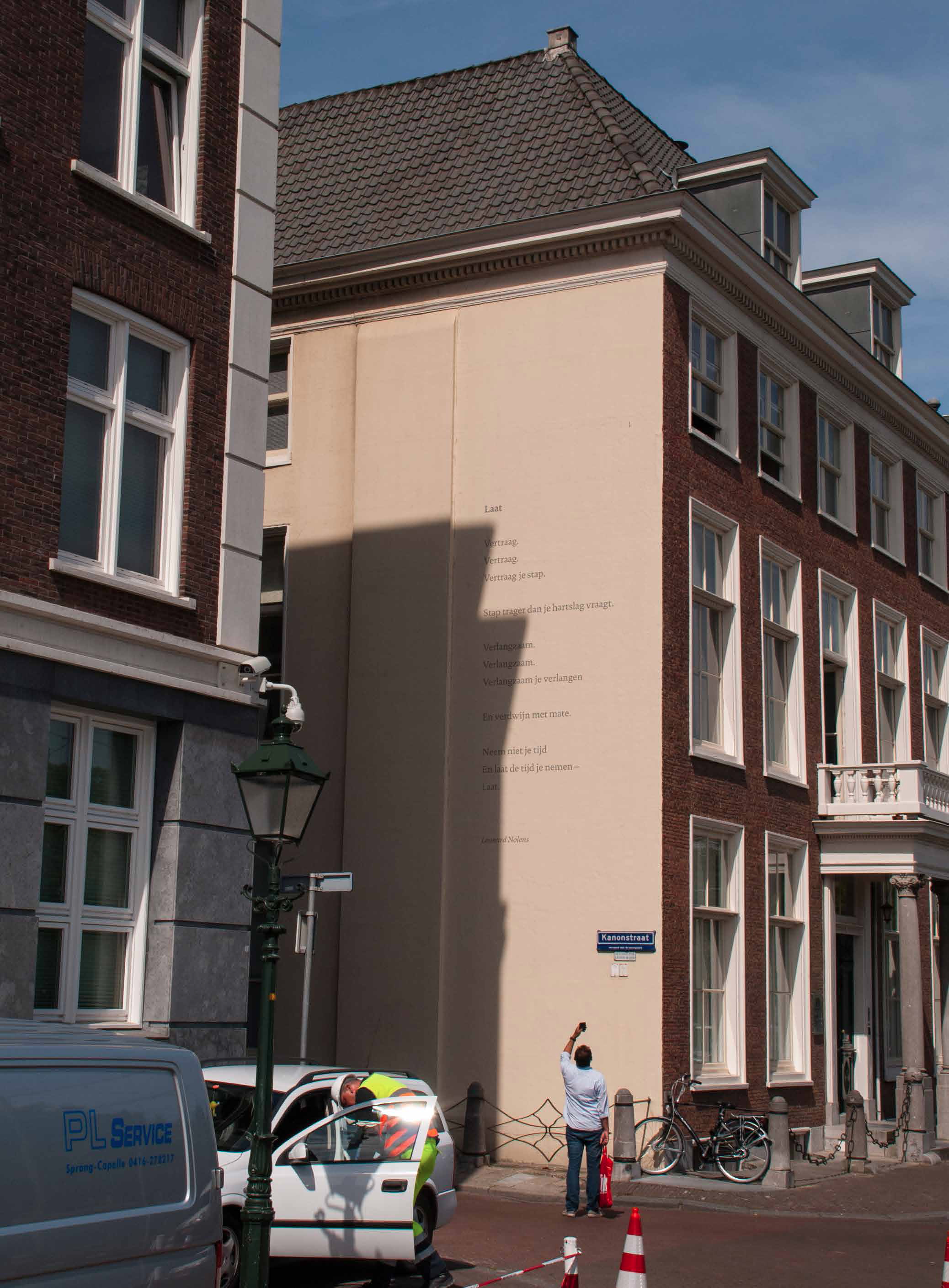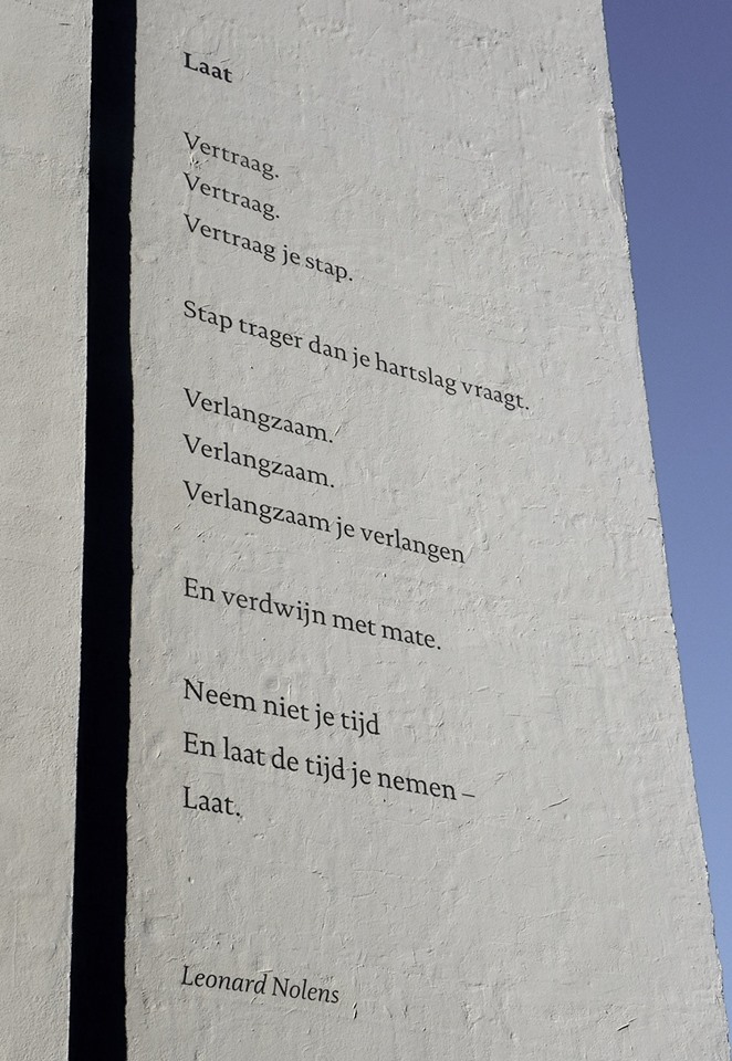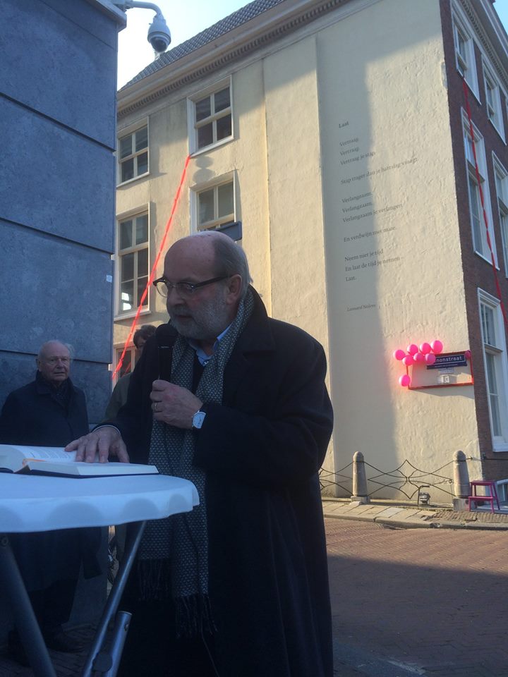 On the 10th of October 2015 the ArchipelpoëZie foundation celebrated its tenth ‘poetry wall’ by revealing a poem from the Belgian poet and diary writer Leonard Nolens, typeset in DTL Documenta on the wall of a historic building located in between the Royal Academy of Art (KABK) and Museum Meermanno in The Hague.