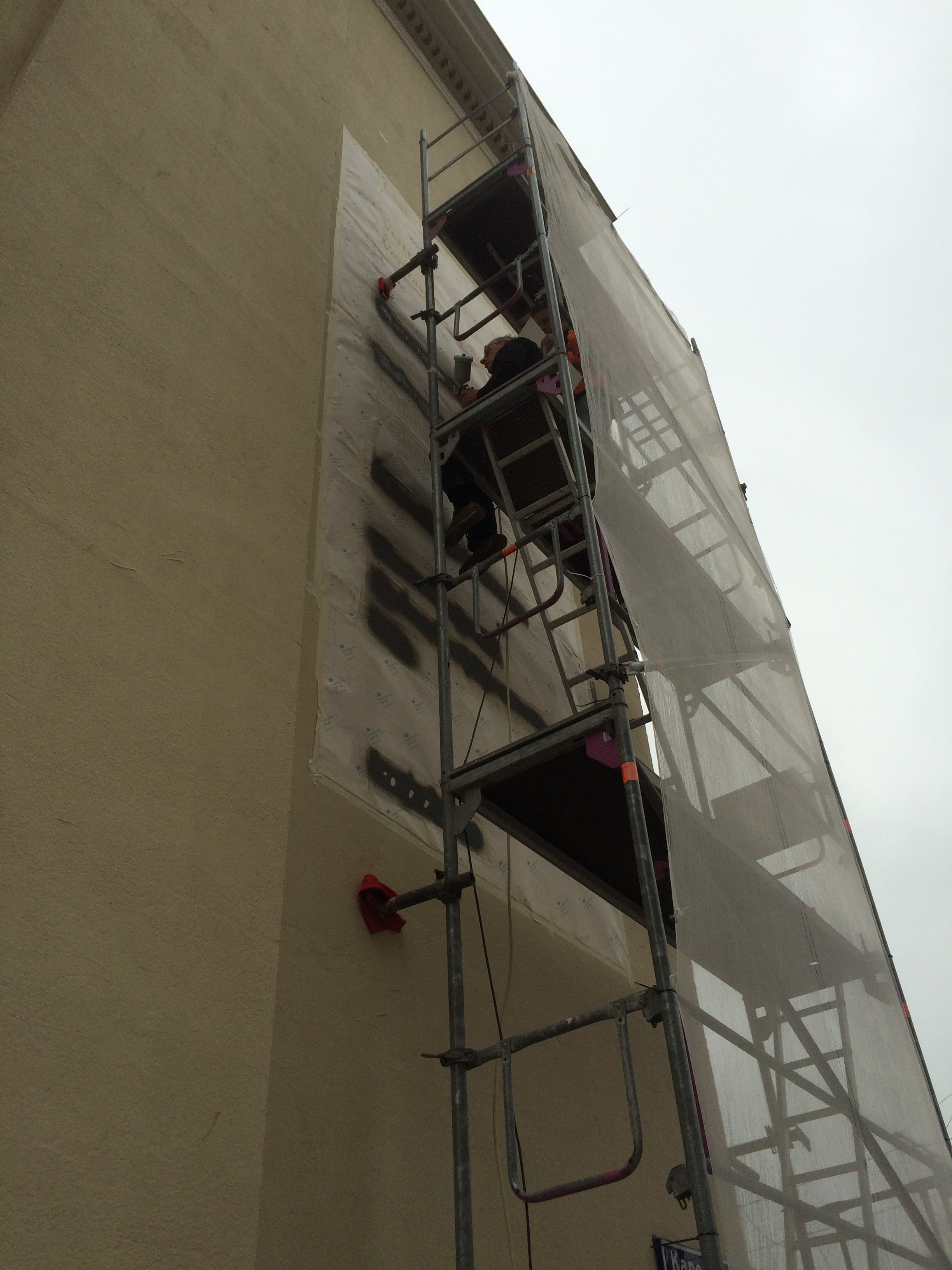 The foundation has as goal to embellish blank walls with poems typeset in typefaces designed by laureates from the KABK. The lettering is applied via laser-cut sheets and airbrush.