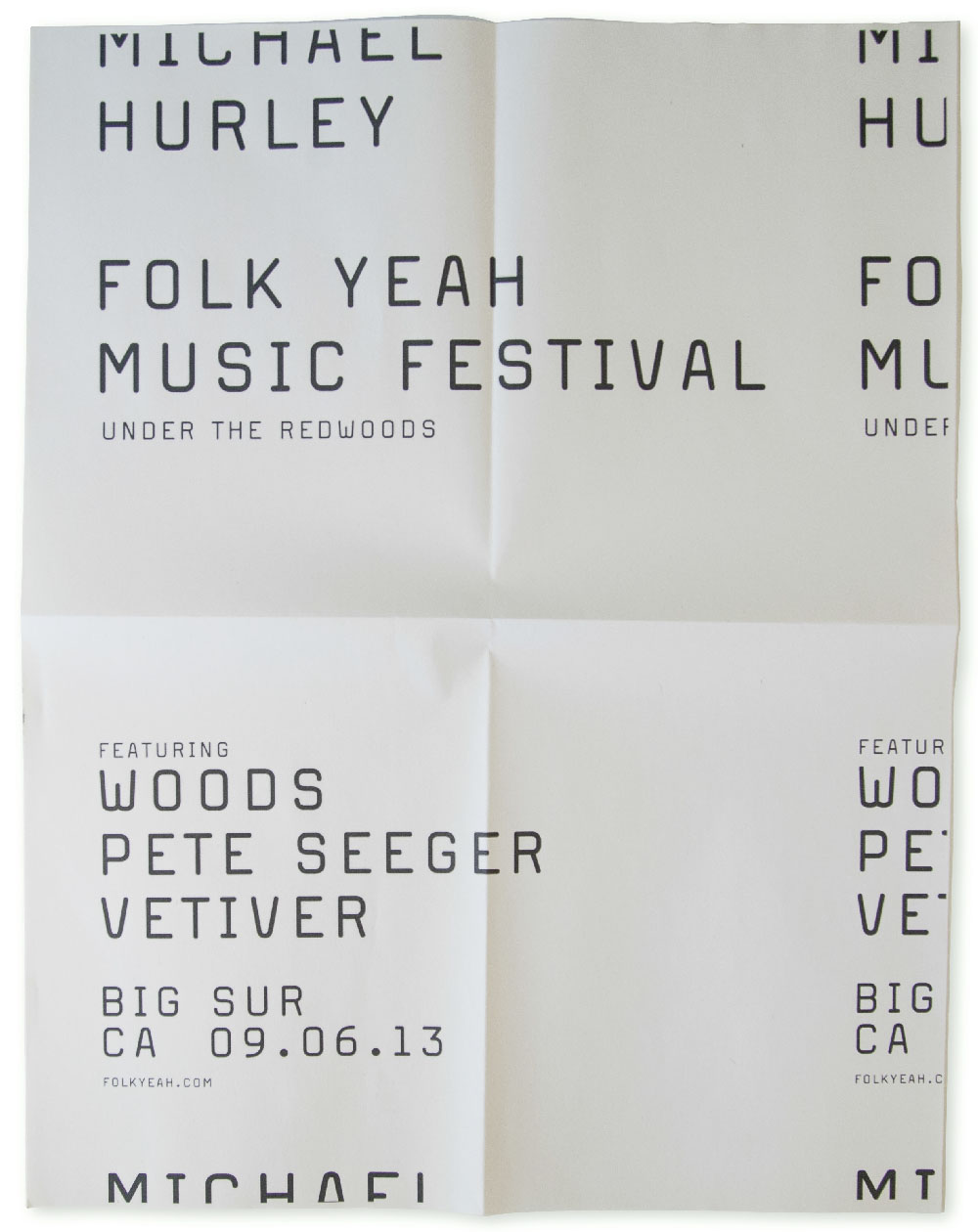 Concept / This conceptual identity project consists of a postcard set and poster series for underground folk artist Michael Hurley, promoted by Folk Yeah.