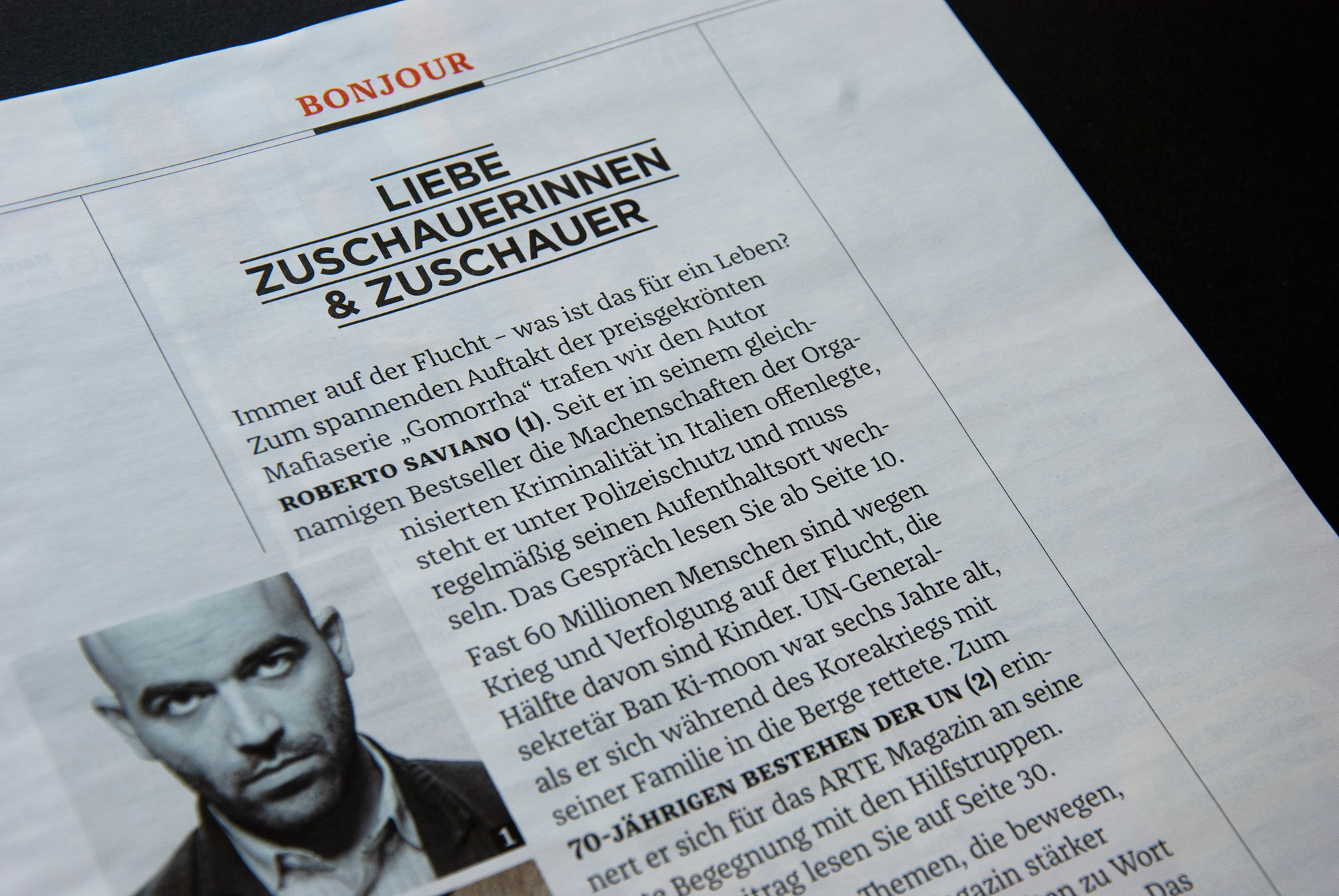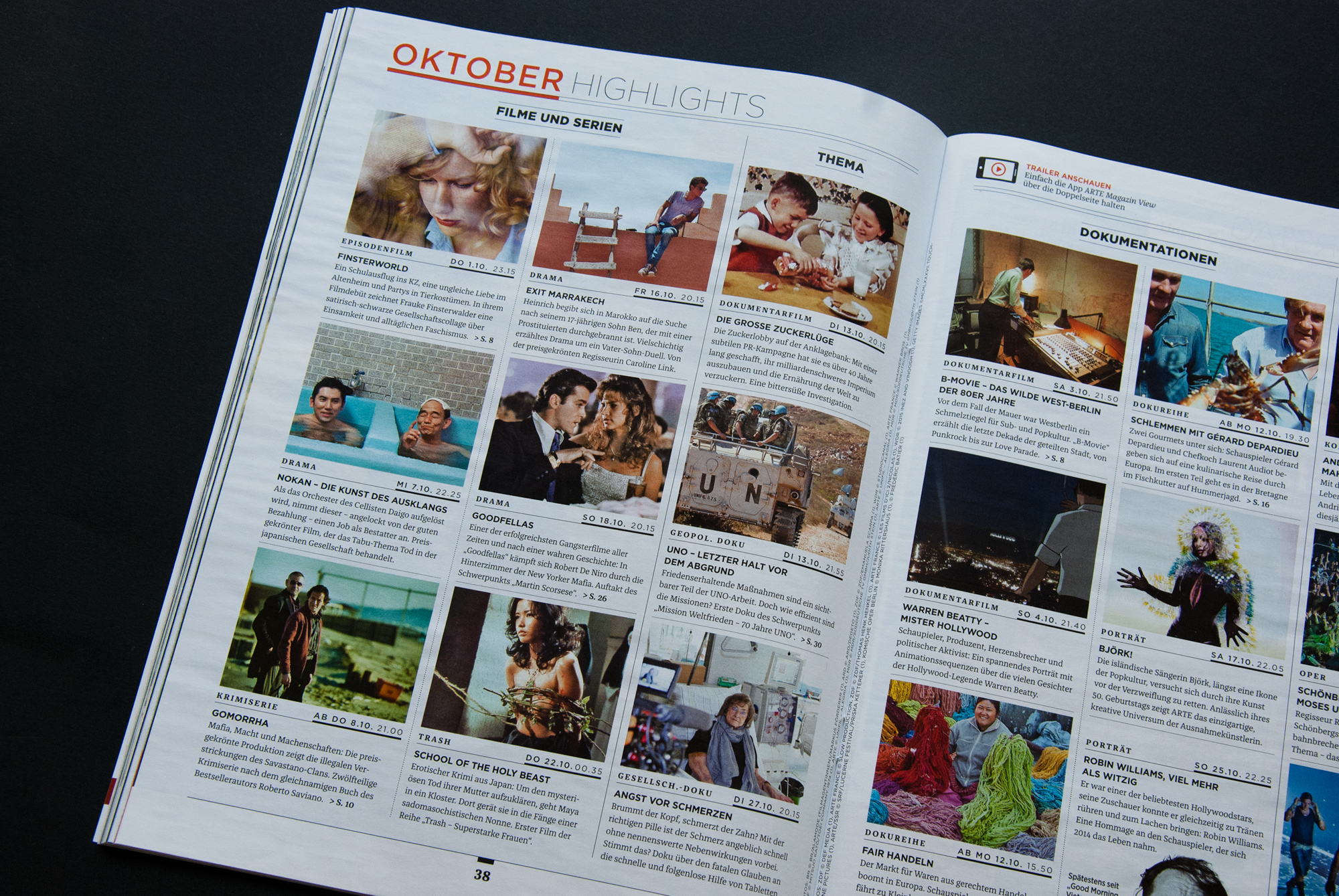 Hamburg based Agency twotype did a redesign of arte Magazin, the monthly magazine of the Franco-German TV network that is dedicated to culture and the arts. The new issues, published by Axel-Springer Corporate Solutions, are using arte’s coporate typeface Gotham together with FF Franziska for text.