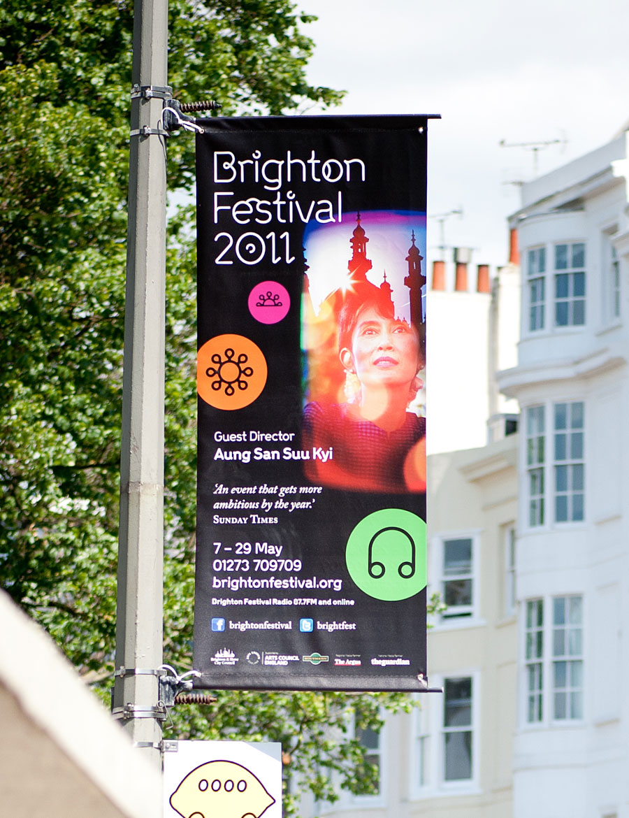 Harrison Agency used Progress Two for their graphics for the Brighton Festival in 2011 and 2012. However, there is clearly something about the typeface they don’t like as in both cases they adapted it quite extensively. For 2011 as Aung San Suu Kyi was Guest Director they referenced Burmese script, and for 2012 they referenced the work of Charles Rennie Mackintosh.