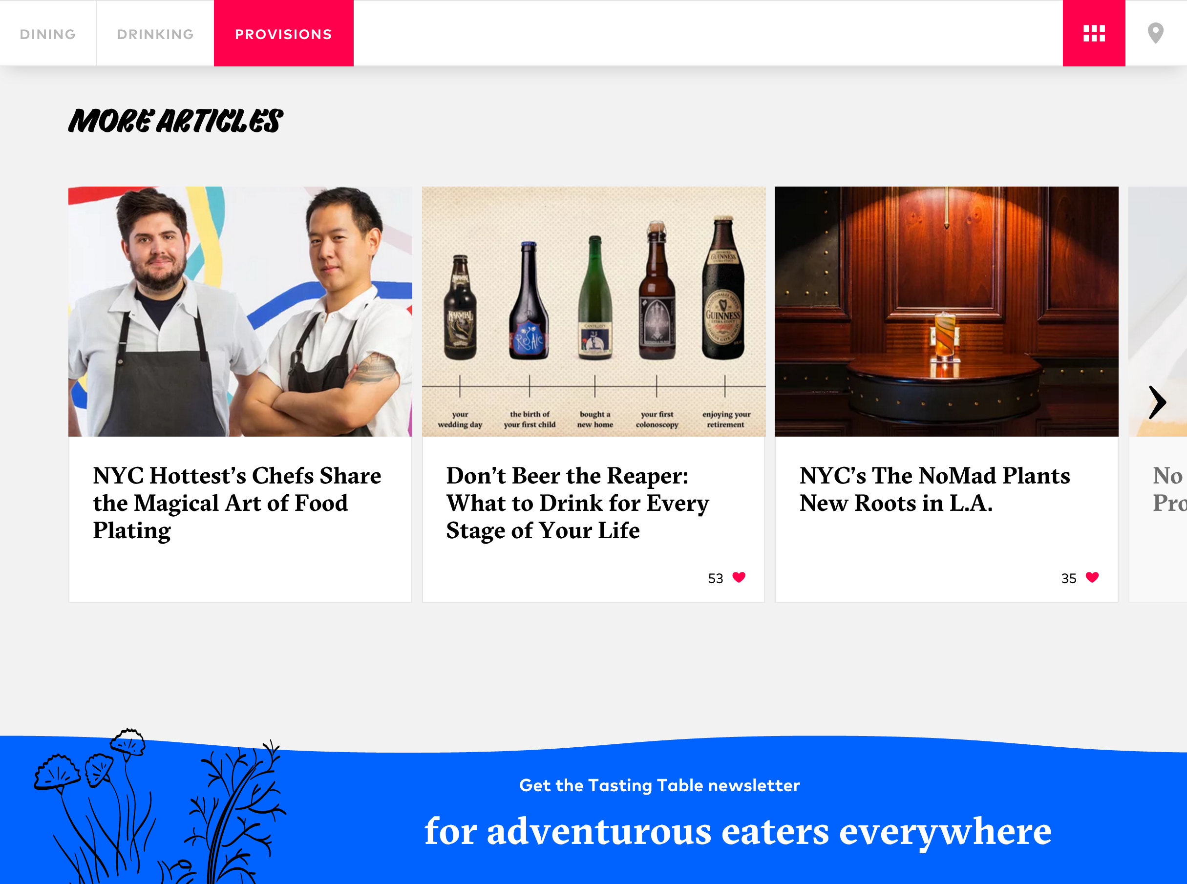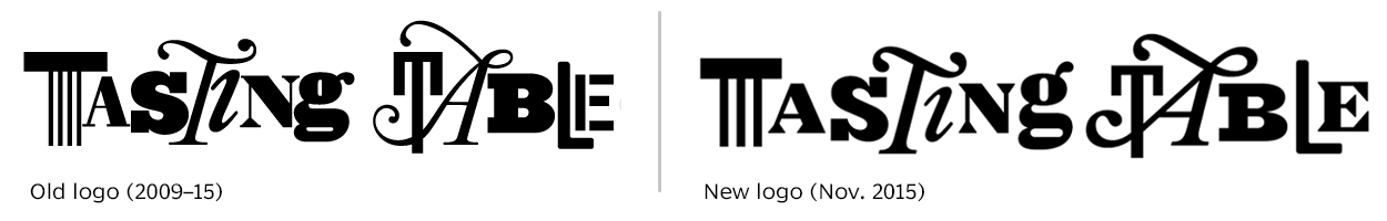 The cooking and dining resource Tasting Table has been around since 2008, but previous designs were not so sophisticated typographically. The new website launched in November 2015 feels very fresh, with recent type from Grilli Type (GT Sectra), FontFont (FF Mark), and Fontseek (Quick Brush). The look now properly reflects Tasting Table’s status as a major enterprise in the food world.