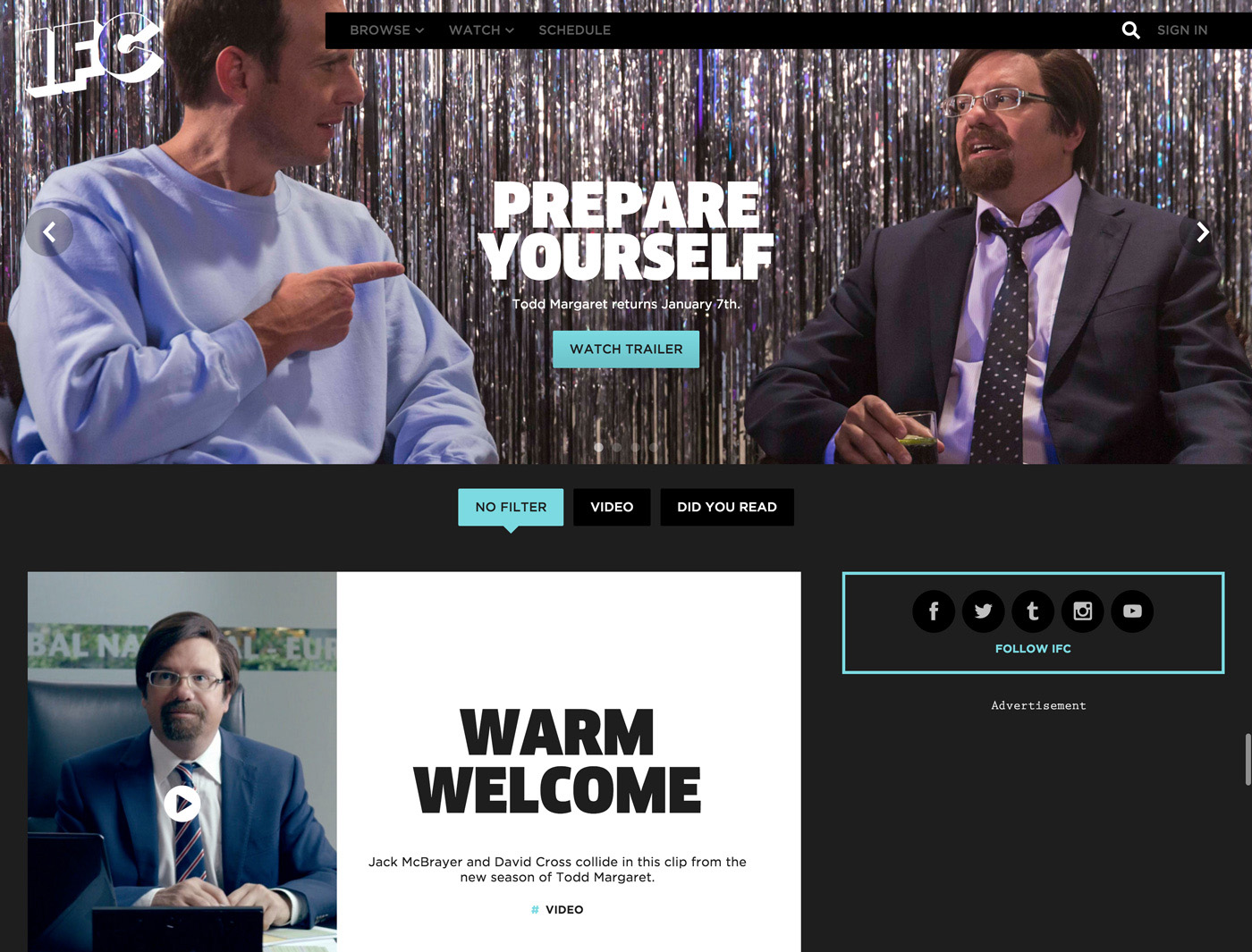 IFC website Contributed by Stephen Coles on Dec 17th, 2015. Artwork published in 2014. Source: www.ifc.com License: All Rights Reserved. Homepage (wide viewport). Source: www.ifc.com License: All Rights Reserved. Homepage (narrow viewport). Source: www.ifc.com License: All Rights Reserved. Homepage and Browse menu. Source: www.ifc.com License: All Rights Reserved. Show page. Source: www.ifc.com License: All Rights Reserved. Blog. Source: www.ifc.com License: All Rights Reserved. Schedule. Typefaces More about FF ClanGet FF ClanMore about GothamGet GothamMore about Prestige EliteGet Prestige Elite Formats Web (5679) Topics Film/TV (2040) Designers/Agencies unknown (4228) Tagged withIFC (1)comedy (207)TV stations/networks (62)television (144)websites (3622)all caps (7707)center-aligned text (1939) Artwork location United States (10000) In Setsstazione (Paolo Piccinini) (6) Post a comment Name Email – will not be published Website Your response Submit Comment More FF Clan in use High-Rise movie poster2016Empire DesignContributed by Martin LAVIELLE RBMA Radio Berlin posters2013David und PaulPaul SteinmannDavid EckesContributed by Florian Hardwig Staff Pick Newsweek covers, Mar–May 2014 (return to print)2014Priest + GraceContributed by Stephen Coles Sponsor More in Film/TV Dogma (1999) movie poster1999unknownContributed by Jayce Wheeled The Return (2003) Russian movie posterc. 2003unknownContributed by Steve McNuggs The Hit titles1984unknownContributed by David Smith Family Ties opening titles1982UBU ProductionsContributed by B.J. Winzer More in Web Yung Lean — Stranger website and short film2017Suzie and LeoContributed by Mikołaj Połonowicz Railway website2021RailwayContributed by Railway AS Robert Marcillasc. 2024Revel StudioContributed by CLAUDE TYPE Staff Pick Population Foundation of Indiac. 2020Lopez DesignContributed by Sharp Type More Fonts In Use Art Blakey and The Jazz Messengers – Soul Finger album art1965Jim SchubertContributed by Rob Hudson Staff Pick Théâtre de Belleville, Season 2018–2019c. 2019Pierre JeanneauContributed by Maria Doreuli Staff Pick Finnegans Wake, Viking Press first edition1939M.B. GlickContributed by Stephen Coles Staff Pick The Trestle Leg Series2012Catherine GriffithsContributed by Matthijs Sluiter Staff Pick