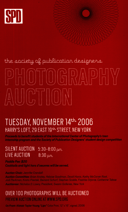 2006 SPD Photography Auction Contributed by Font Bureau on Dec 9th, 2012. Artwork published in 2006. License: All Rights Reserved. License: All Rights Reserved. Typefaces More about ScoutGet ScoutMore about FIG ScriptGet FIG Script Topics Education/Academia (2167) Activism (1103) Art (4627) Designers/Agencies SPD (1) Tagged withSociety of Publication Designers (1)pre-release uses (696) Artwork location United States (9836) In SetsWatchList (Kelly Garis) (35) Post a comment Name Email – will not be published Website Your response Submit Comment More Scout in use Ben Koski websitec. 2014Ben KoskiContributed by Webtype Entre parágrafos by Cyrus Highsmith2017André MayaRafael DietzschEstereográficaContributed by Estereográfica Editorial Staff Pick Future Classic DJs & Friends at the Bad Room poster2016Bráulio AmadoContributed by Nick Sherman Sponsor More in Activism Vote.orgc. 2018unknownContributed by LaKeisha B. Kenyan runners occupy athletics HQ2015unknownContributed by Matthijs Sluiter Collection Frictions by Éditions Loreleic. 2023Huz & BosshardContributed by 205TF Whole Earth Field Guide2016unknownContributed by Florian Hardwig More Fonts In Use Tcho2007EdenspiekermannCarrois Type DesignSusanna DulkinysContributed by Stephen Coles Staff Pick Westerly magazine (2016 redesign)c. 2016Chil3Becky Chilcott (AUS)Contributed by Ramiro Espinoza Staff Pick What is Music? festival 20252025Clara Briones VediaMabel EstebanContributed by Alex Slobzheninov Staff Pick Stephen King’s The Dead Zone1979One Plus One StudioContributed by Brian Phillips Staff Pick City Sightseeing Bus Tours logo (1998–)1998unknownContributed by Jayce Wheeled Staff Pick Yearbook 2015–2016, Design Department, Sandberg Instituut Amsterdam2016Andrea KarchDaniel SeemayerContributed by Axel Pelletanche Staff Pick Poster Journal poster series2021Poster JournalContributed by Jamie Otelsberg (OH no Type Co.) Staff Pick Soirée de Solidarité pour le Liban2024Richard KahwagiContributed by Richard Kahwagi Staff Pick