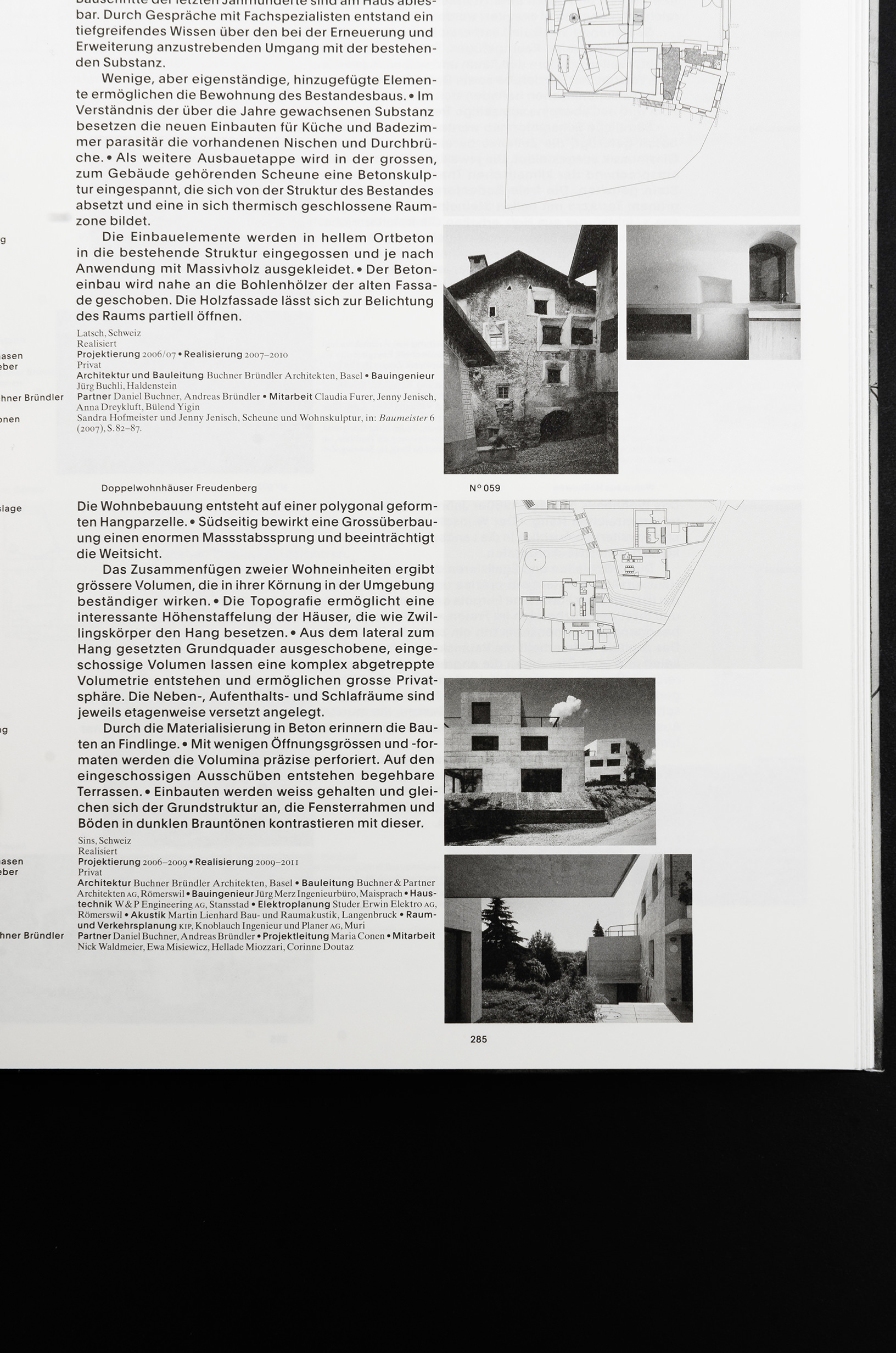 Monograph of Basel architects Buchner Bründler. Awarded in “Most Beautiful German Books 2013” and a Gold prize in “Schönste Bücher aus aller Welt 2014” (Best Book Design from all over the World). Plain is used on the cover. It’s not apparent in these interior images, but Deutsche Nationalbibliothek also credits Times Ten.