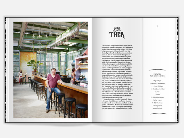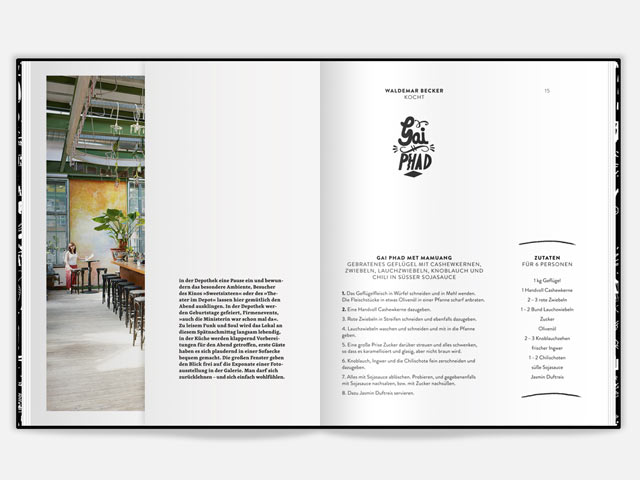 A restaurant guide, recipe book and an affectionate study of a unique location of North Dortmund – all rolled into one. The book shows the inhabitants of Nordstadt in their own four walls, and introduces restaurant owners and proprietors amidst the atmosphere of cafés, bistros, pubs and bars. The book, designed by JAC design studio, using Skolar by David Březina and Brandon Grotesque by Hannes von Döhren, won the prestigious Red Dot design award.
