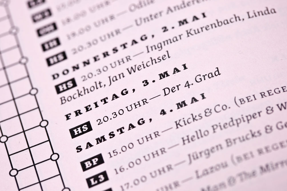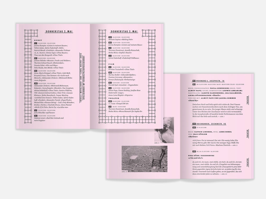 “You are not disturbing at all. It’s nice when something happens around here.” The inspiration for the campaign of the Rundlauf Bochum 2013 art and culture festival originates from an elderly lady living in the Bochum suburb. The successful connection between art and the population was incorporated by JAC design studio into the design which uses lively pink and black combination together with Futura by Paul Renner and Skolar by David Březina.