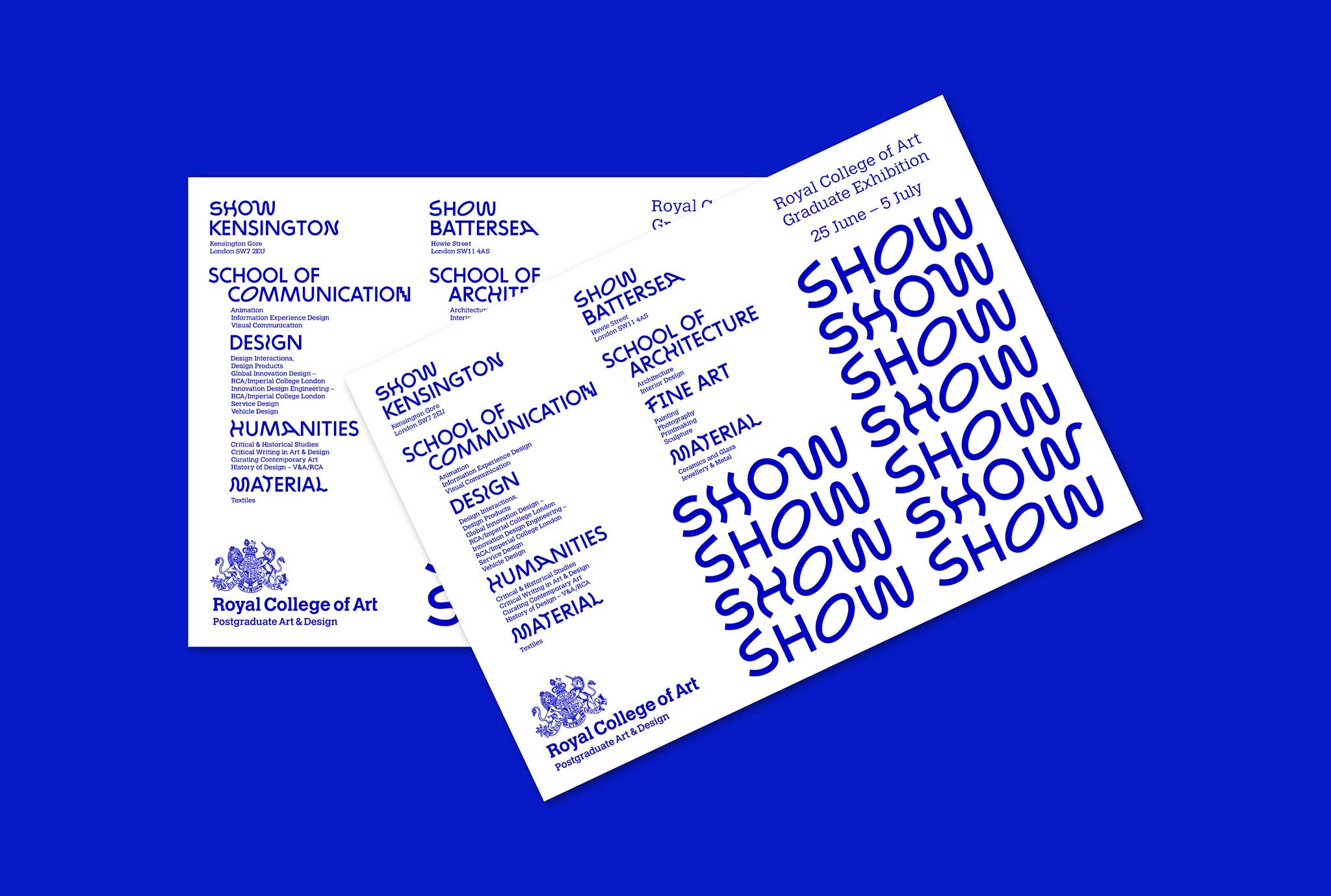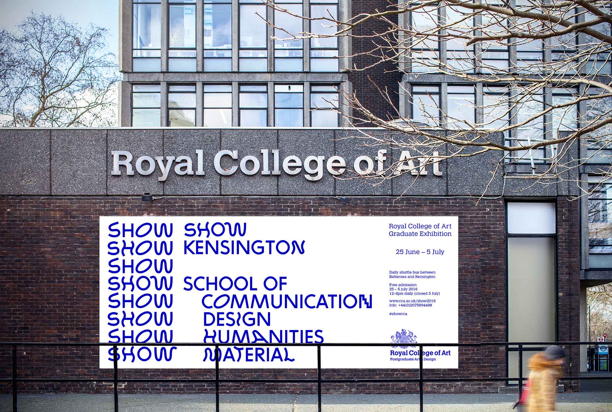 The Royal College of Art SHOW is a big event taking place in the college galleries in Kensington and Battersea each year around June. 600 graduating students within art, design and humanities exhibit their best work to date. Summer Studio was invited to pitch with a proposal for the visual identity for the RCA SHOW 2016.