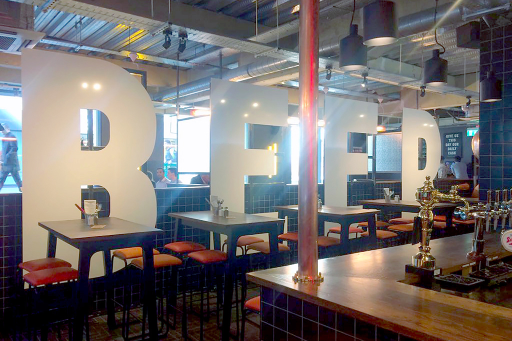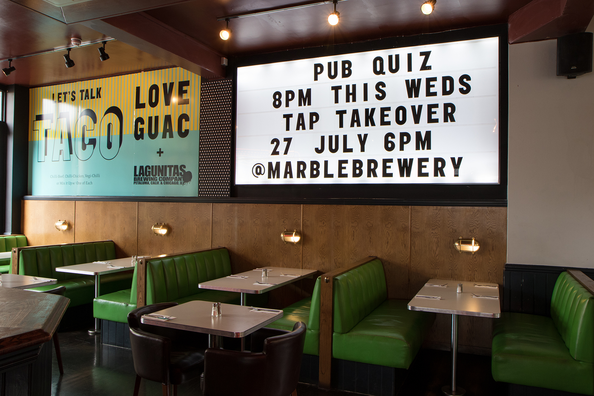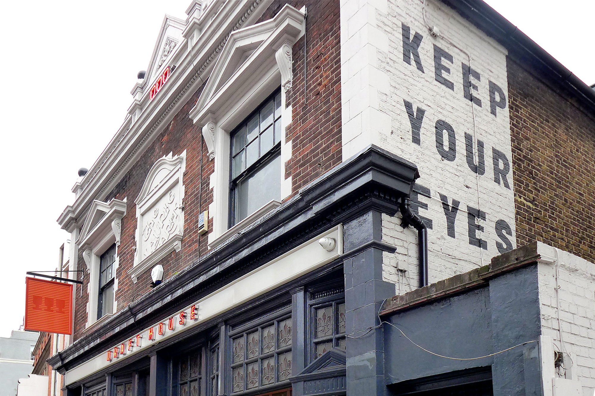Elephant Black is used in a bold, witty and eclectic way throughout, most notably as slogans in interior and exterior signage where it is vinyl, handpainted or rendered in neon. A different typographic approach is applied to each pub, both inside and out.