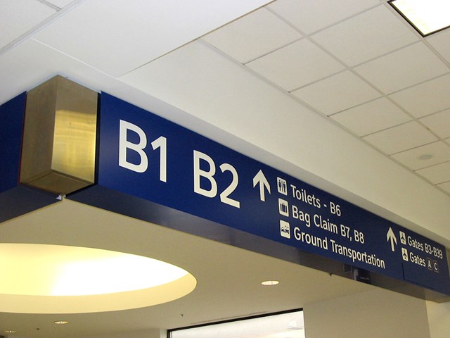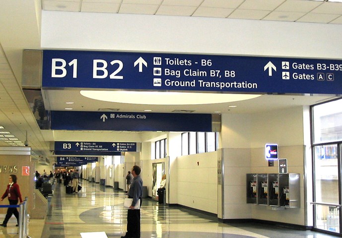 “A unique aspect of our signage is that we use a reverse hierarchy for sign messaging. While typically you would put the most important information on the top, we work from the bottom up. This is because our terminals have concrete structural beams that hang down from the ceiling three feet or so every 50 feet. You can see all the messaging on the sign that’s immediately in front of you, but your sight line down the terminal is obstructed by the fur-downs, so you can only see the bottom message on the next sign, until you get 20 or 30 feet from it. We want to make sure we put the most important information at the bottom, where people can see it as they move through the terminal. It seems to work.