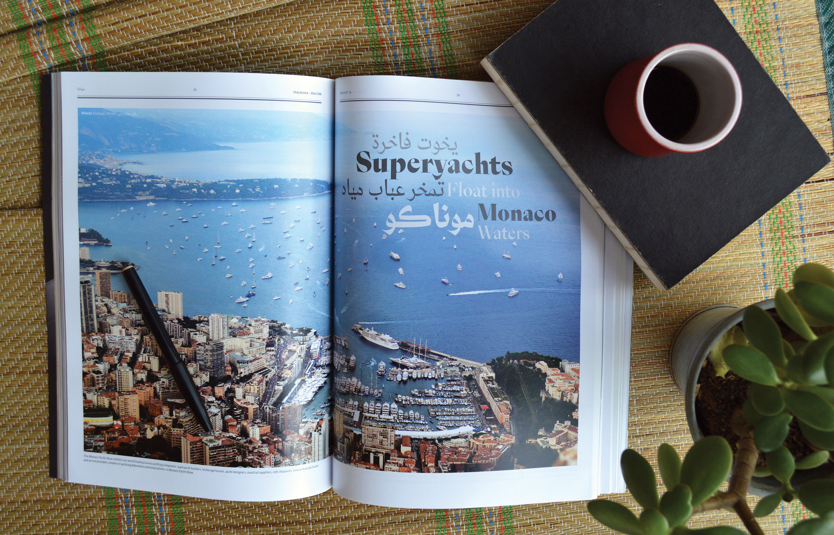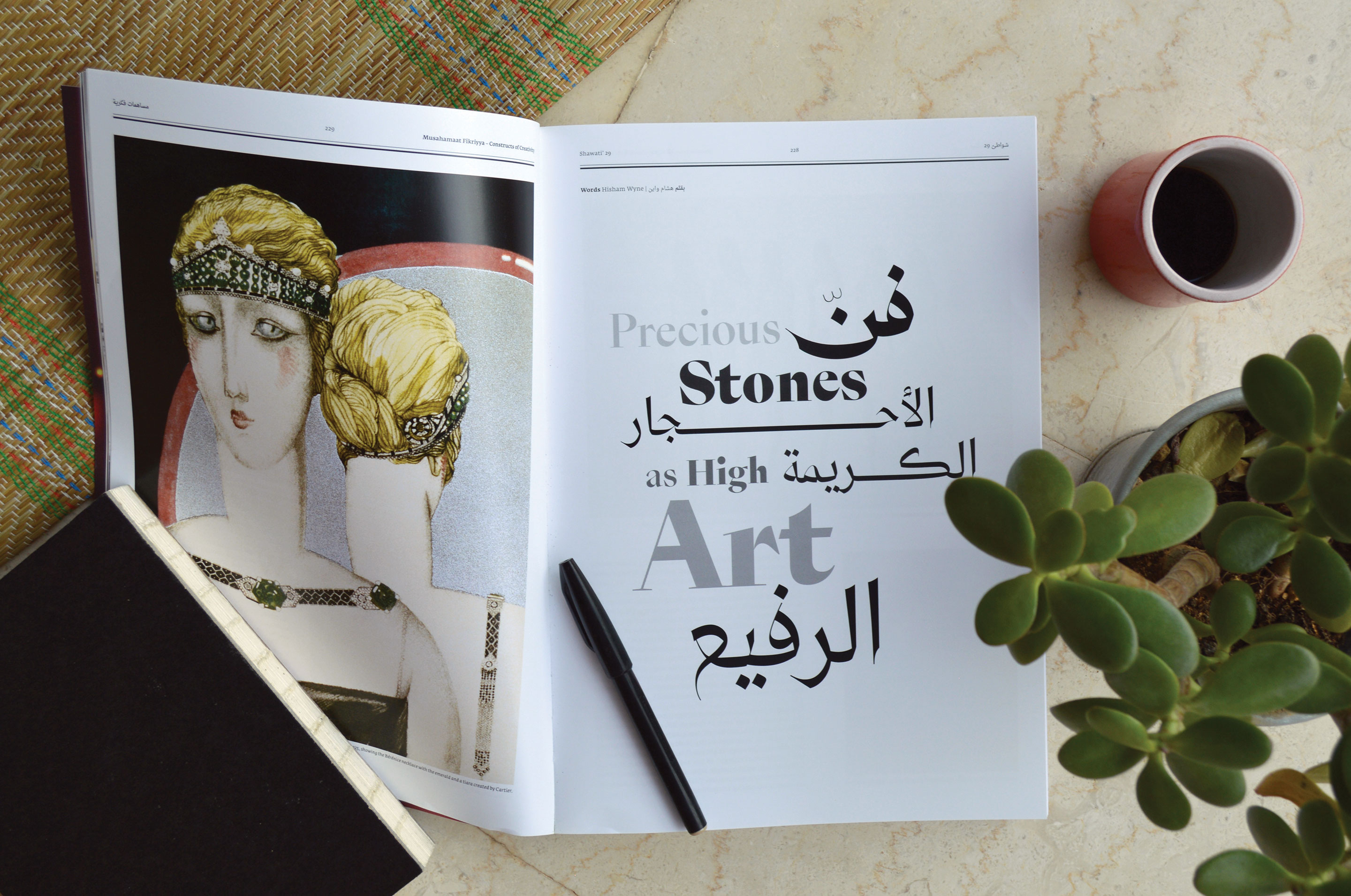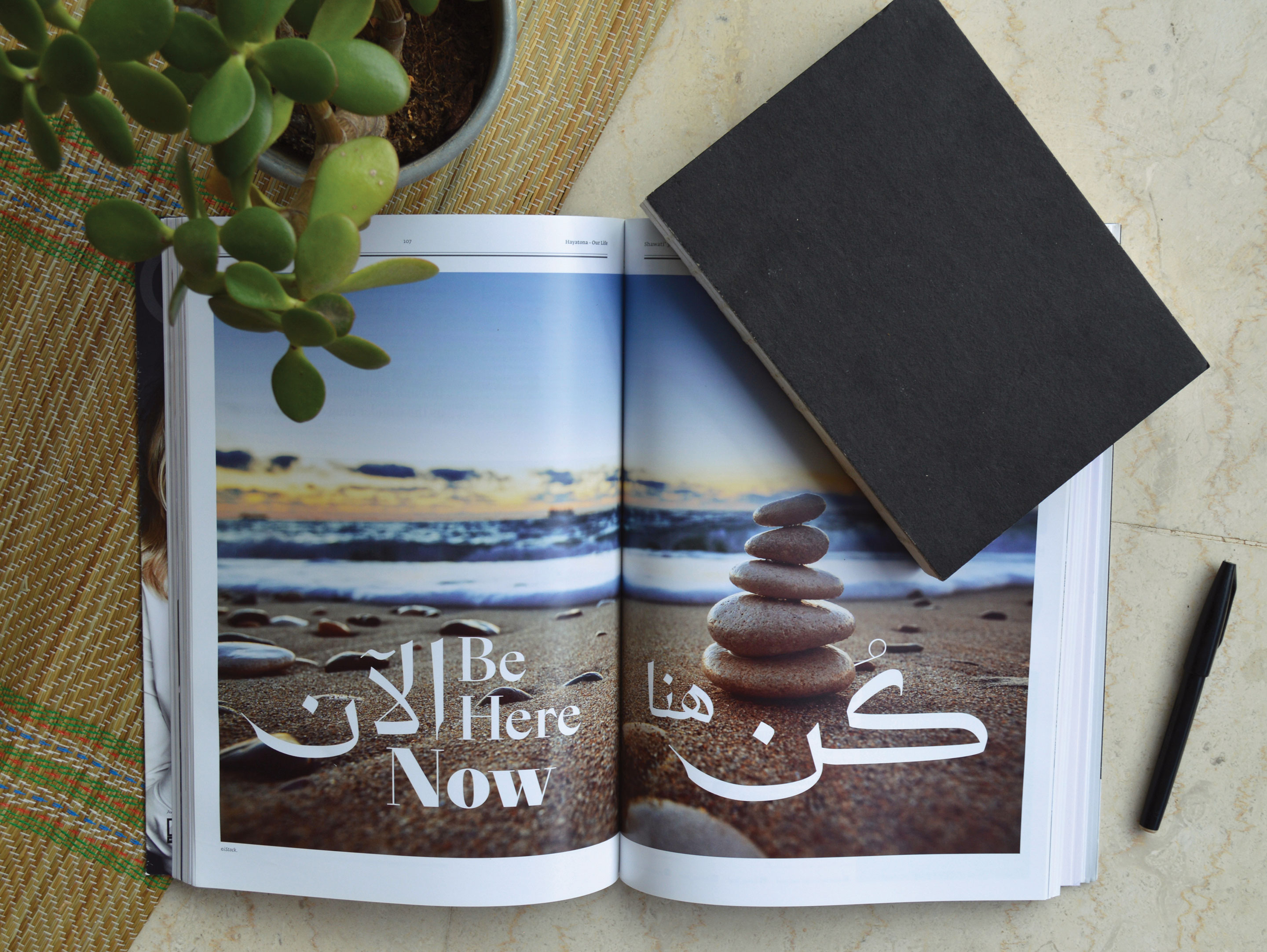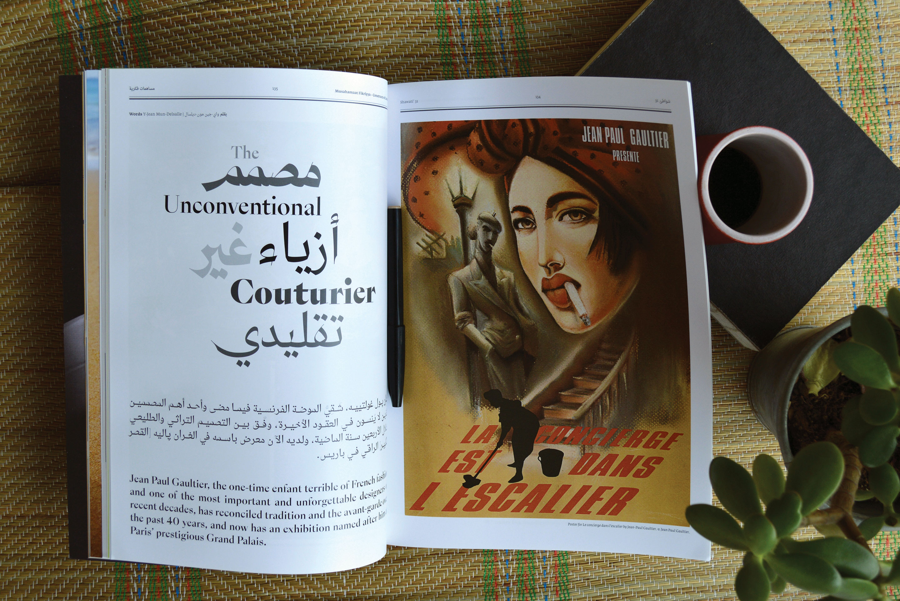 The design and layout of the magazine demanded the creation of a unique Arabic and Latin display typeface. The Arabic is inspired from both Naskh and Thuluth calligraphic styles while the Latin is drawn based on the Modern Serif Roman style.
