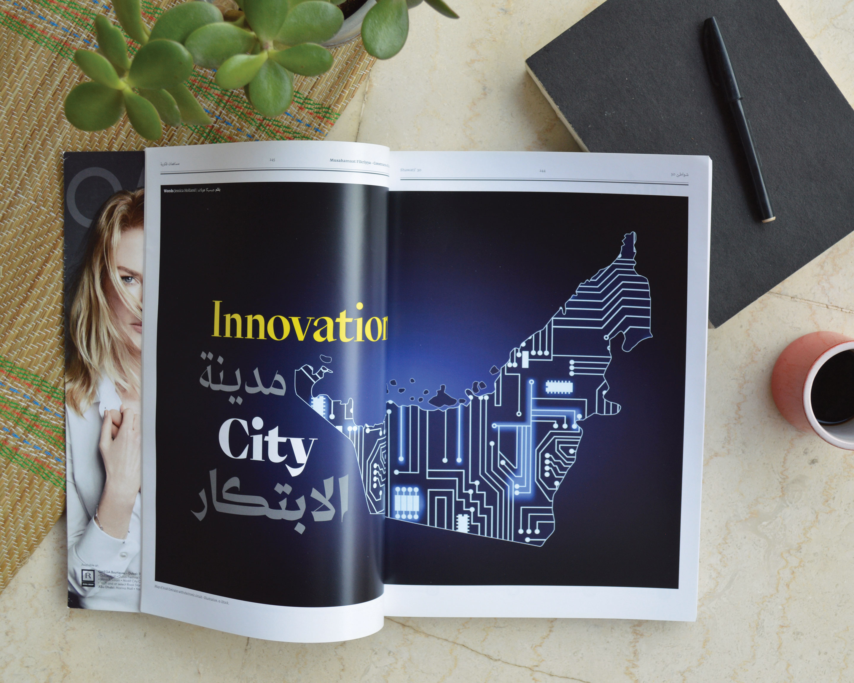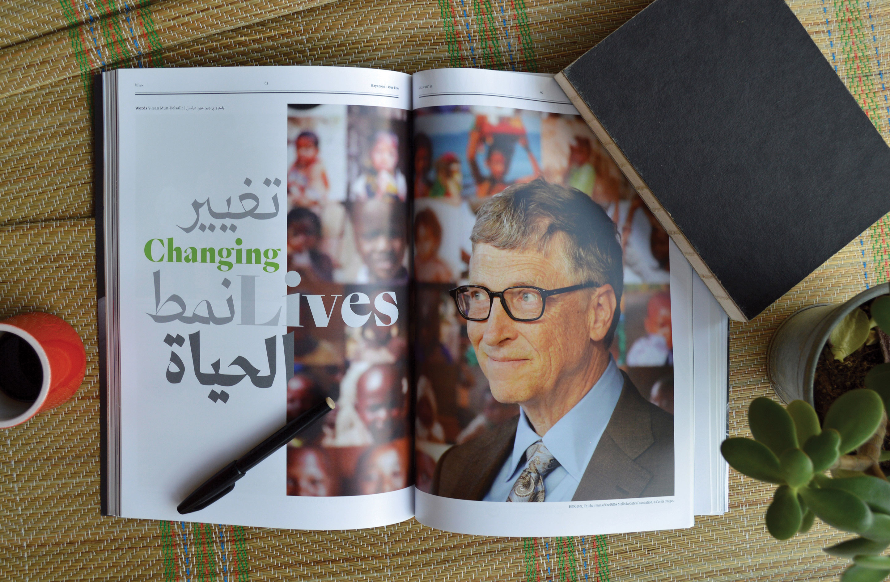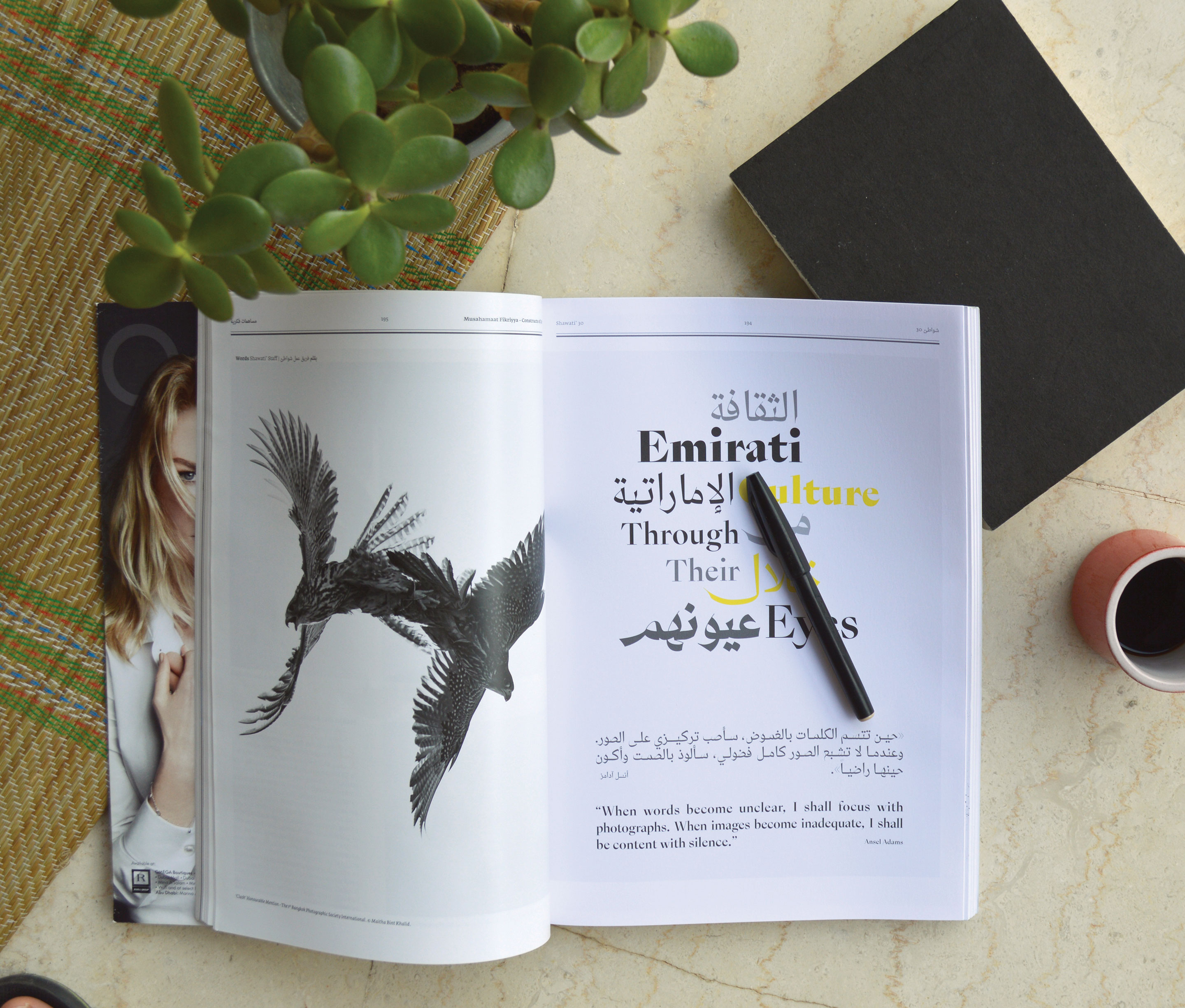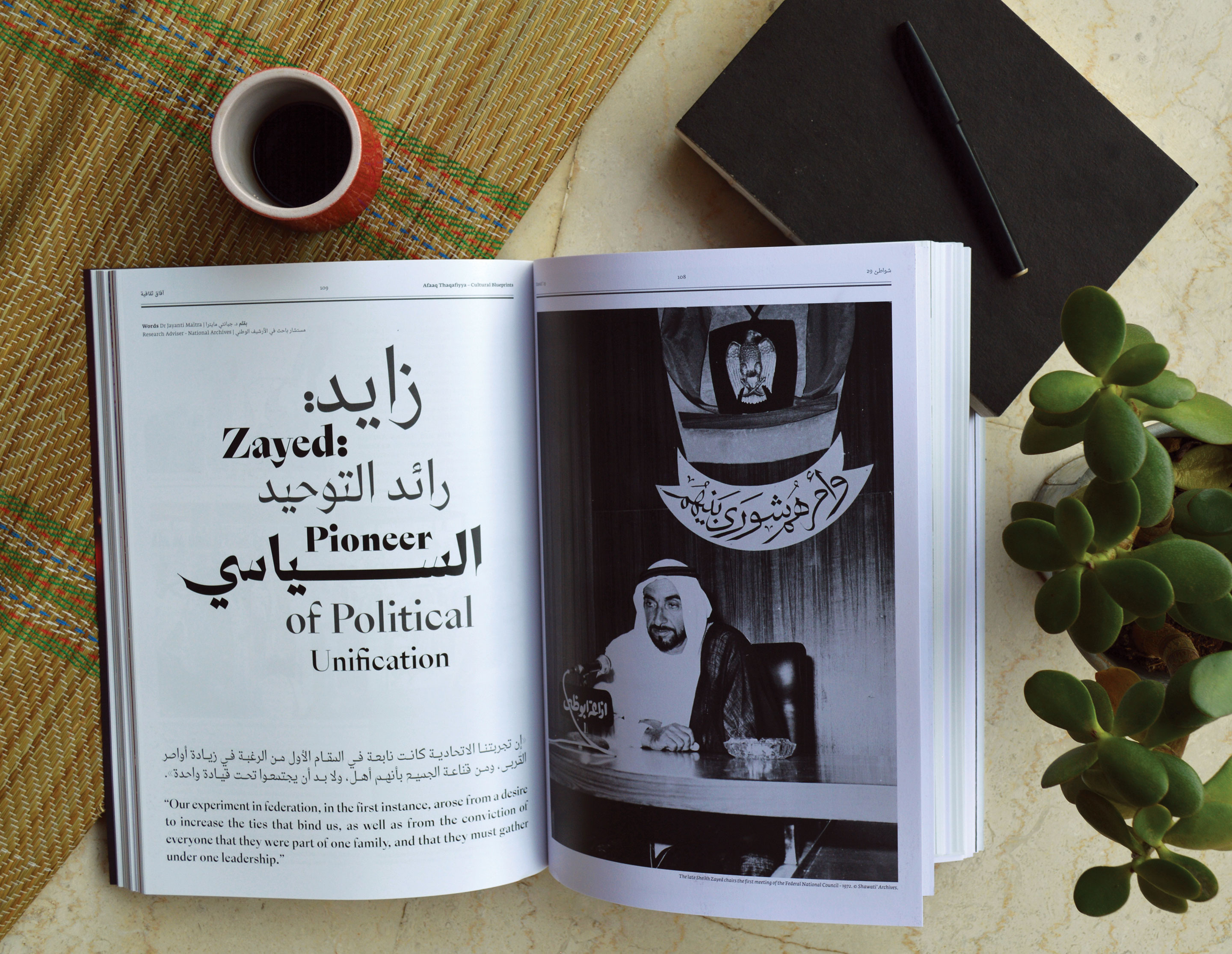 The design and layout of the magazine demanded the creation of a unique Arabic and Latin display typeface. The Arabic is inspired from both Naskh and Thuluth calligraphic styles while the Latin is drawn based on the Modern Serif Roman style.
