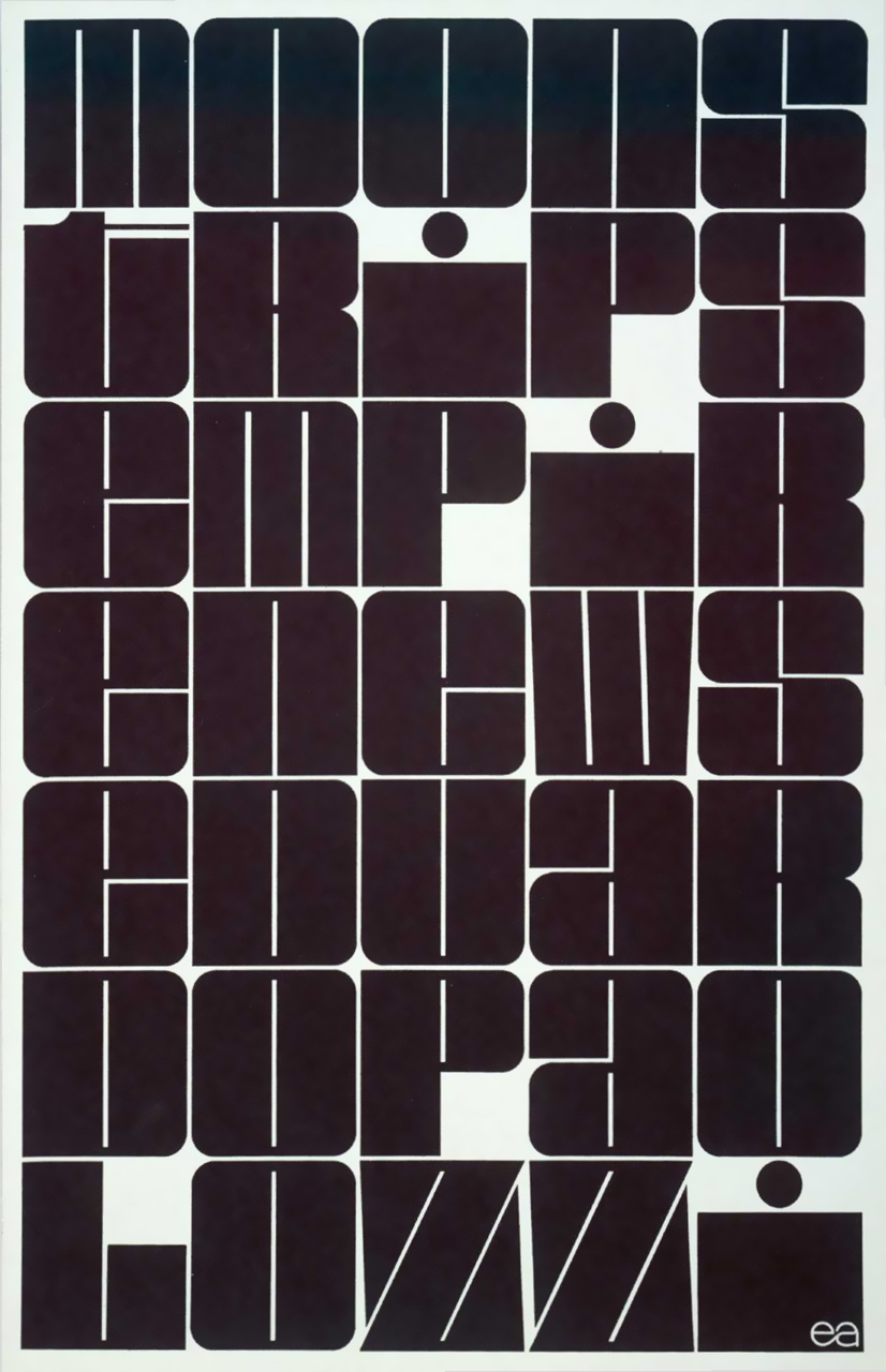 I am the designer of the font “Deutsch Black”. The design was a winner of the 2nd World Typeface Competion in 1965 – by the International Typeface Corporation (ITC) which was run by Aaron Burns. The face portrayed here has been altered from my “original” design… which was not influenced by Sir Palolozzi… but by the classic, Futura Black font and some design work by Herb Lubalin. Just setting the record straight.