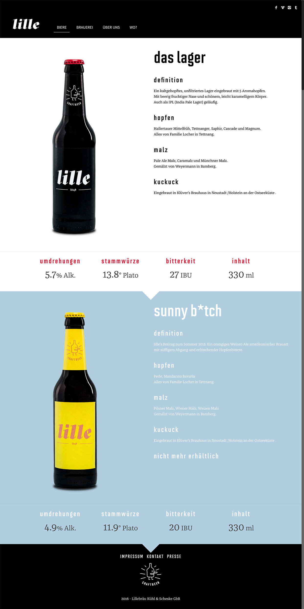 Lille Bräu Contributed by Grilli Type on Apr 11th, 2016. Artwork published in circa 2015. Source: lillebraeu.de License: All Rights Reserved. Started while studying for their Masters Degree in Design, Lille Bräu is a German craft beer that has a focus on design as well. Using GT Sectra as a basis, the packaging is as well crafted as the recipe. Source: lillebraeu.de License: All Rights Reserved. Source: lillebraeu.de License: All Rights Reserved. Source: lillebraeu.de License: All Rights Reserved. Source: lillebraeu.de Lille Bräu. License: All Rights Reserved. Source: lillebraeu.de License: All Rights Reserved. Source: lillebraeu.de License: All Rights Reserved. Source: lillebraeu.de License: All Rights Reserved. Source: lillebraeu.de License: All Rights Reserved. Typefaces More about GT SectraGet GT SectraMore about MVB Solano GothicGet MVB Solano GothicMore about FranziskaGet FranziskaMore about Source SansGet Source Sans Formats Web (5633) Packaging (2446) Branding/Identity (8468) Topics Food/Beverage (3065) Designers/Agencies Max Kühl (1) Florian Scheske (1) Tagged withbeer (203)logos (5008)beer labels (122)beer bottles (61)all lowercase (887)italics (711)reversed type (3386)crates (6) Artwork location Germany (3880) Kiel (11) In SetsInspiration (Ethan Waind) (47)Labeled bottles (Matthijs Sluiter) (124) Post a comment Name Email – will not be published Website Your response Submit Comment More GT Sectra in use Backbone BeerPlauGabriel MesomaAna Laura FerrazContributed by Carlos Mignot Jaune de Chrome c. 2017Pierre NguyenContributed by Michelle Parmar Caminhos literários2022United byContributed by United by Staff Pick Sponsor More in Food/Beverage Terpene Dream, Hops & Grain2018DeRouen & Co.Photo(s) by Label Craft on Flickr. Pasticceria Adamic. 2019Tomas BaruffaldiET StudioElettra ZuanazziContributed by Tomas Baruffaldi Pizzería Rosa2018Martin AzambujaContributed by Laïc: Type Foundry To Øl × Ārpus – Collaboration Curse beer cansc. 2022Kasper LedetContributed by Kasper Pyndt More in Web Fonts Ninjac. 2020Fonts NinjaContributed by TypeType Creative Industries Festival 2023, “HumAIn Language”2023ArtcorVeronica BelousContributed by Victor Bartis The Factory of Electric Dreams exhibition website2021Babak VandadContributed by Alain Papazian Printworks London brand identityc. 2017OnlyContributed by Only Staff Pick More Fonts In Use Macao Design Week 20202020Untitled MacaoContributed by VJ-Type Staff Pick Dictionary Stories by Jez Burrows2018CactuslabDan CassaroJez BurrowsContributed by Matthijs Sluiter Staff Pick Tony Allen & Hugh Masekela – Rejoice album art2020Florence de la FournièreNeel PanchalContributed by Soimadou Ibrahim-Aliamane Staff Pick Si Zentner – The Swinging’ Eye!!!!!!!! album art1960Bill PlateGene HowardContributed by Stephen Coles Staff Pick