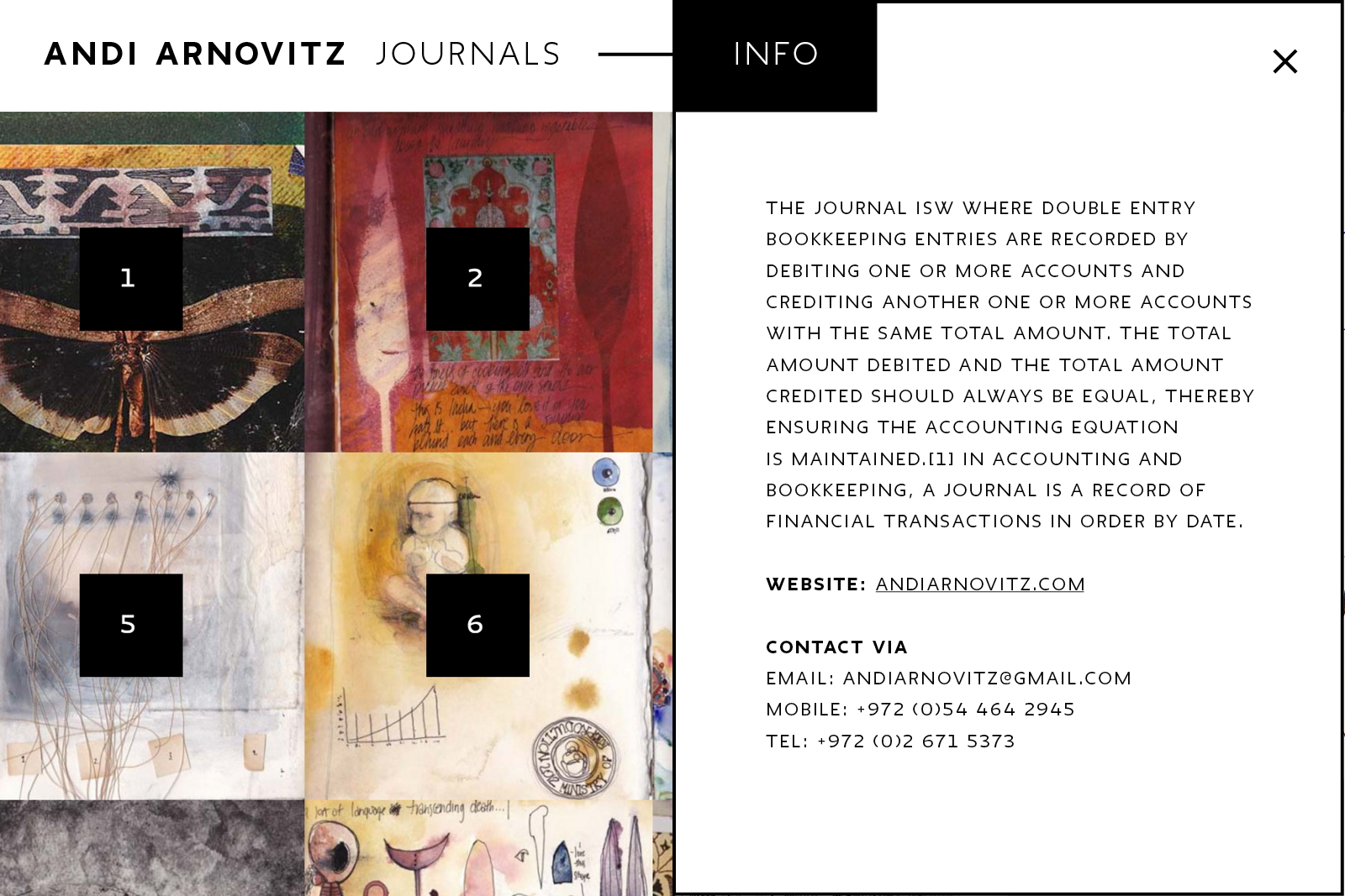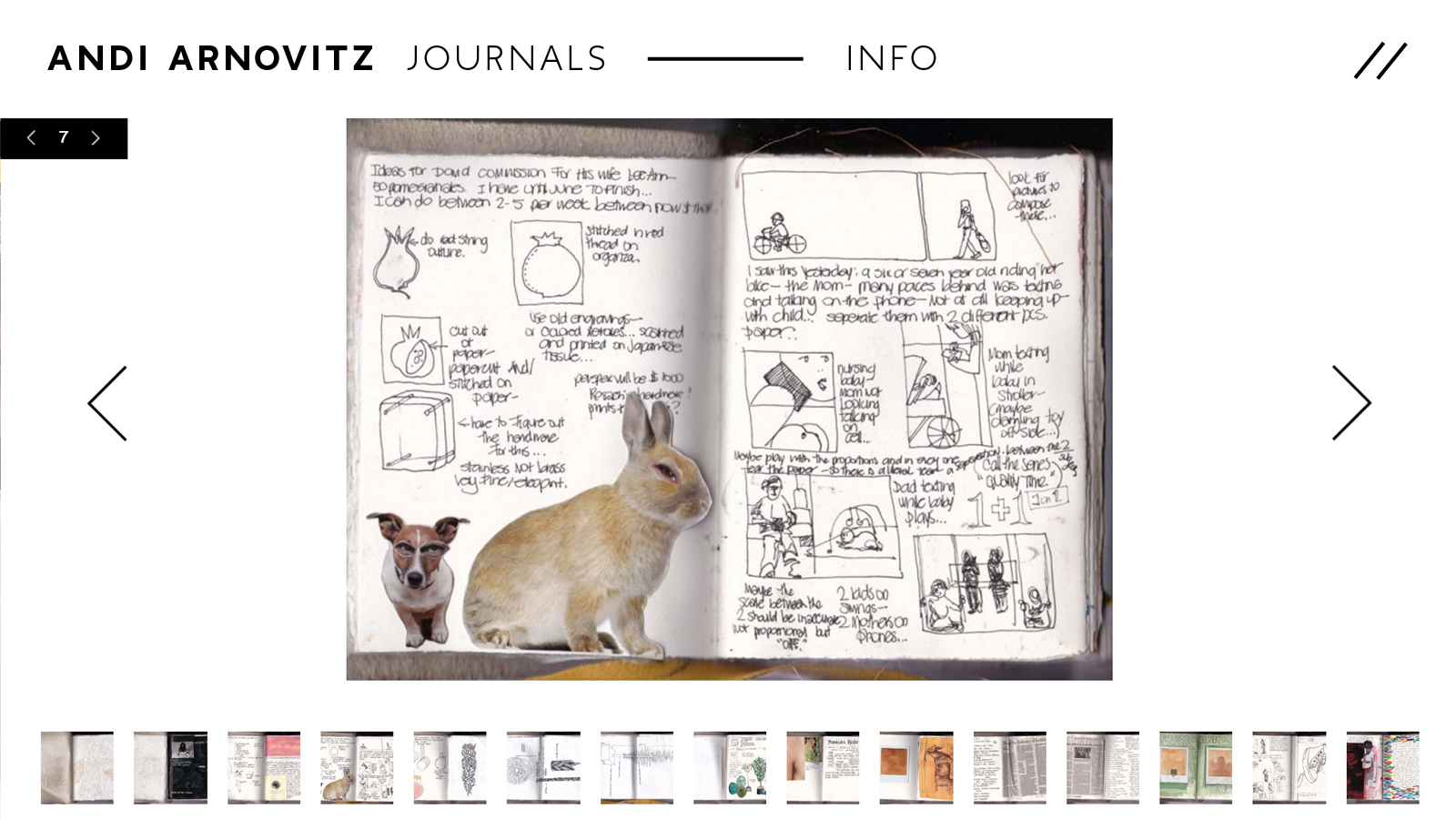 Andi Arnovitz Journals Contributed by Maya Marom on May 4th, 2016. Artwork published in 2016. Source: journals.andiarnovitz.com License: All Rights Reserved. Andi Arnovitz is a feminist Jewish artist living and working in Jerusalem. The “Journals” site is dedicated to her sketchbooks. Source: journals.andiarnovitz.com License: All Rights Reserved. Source: journals.andiarnovitz.com License: All Rights Reserved. Typefaces More about IrmaGet Irma Formats Web (5676) Topics Art (4741) Designers/Agencies Maya Marom (1) Tagged withsketchbooks (10)artist’s website (1)Andi Arnovitz (1) Artwork location Israel (55) Post a comment Name Email – will not be published Website Your response Submit Comment More Irma in use What is the Good of Work?2009Project ProjectsContributed by Shiva Nallaperumal New School University Center wayfinding systemc. 2015Intégral Ruedi BaurContributed by Caren Litherland Staff Pick Signs for Peace. An Impossible Visual Encyclopedia2013Megan HallContributed by Florian Hardwig Sponsor More in Art Desierto. Fin y Principio by Pablo Cabado2019Ricardo BáezContributed by Ricardo Baez The Art of Ian Bow: “Portrait of a Painter”1954Photo(s) by Ben Mitchell on Flickr. “Lorem ipsum” plaque, AmsterdamunknownContributed by Florian Hardwig Staff Pick How to See the World by Nicholas Mirzoeff, Russian edition2019unknownContributed by Maria Doreuli More in Web Sebastian Q2012Contributed by Indra Kupferschmid Staff Pick Droga5 website2014Droga5Contributed by Webtype “Last Year You Said Next Year” campaign2023LinearContributed by Kenneth Ormandy Semihandmade logo and websitec. 2022unknownContributed by Pri V More Fonts In Use Comprendre son temps magazine, n° 12024Atelier AAAAAContributed by NaN Staff Pick Top Manta (2025 rebrand)2025Aleix FontContributed by Gerard Sierra Staff Pick Let The Fire Fall by Kate Wilhelm (Doubleday, Lancer)1969Milton GlaserContributed by Mathieu Triay Staff Pick Bevésett nevek (Carved Names), vol. 22015Lead82Dániel L. NémethPéter Salát ZalánContributed by Lead82 Budapest Staff Pick