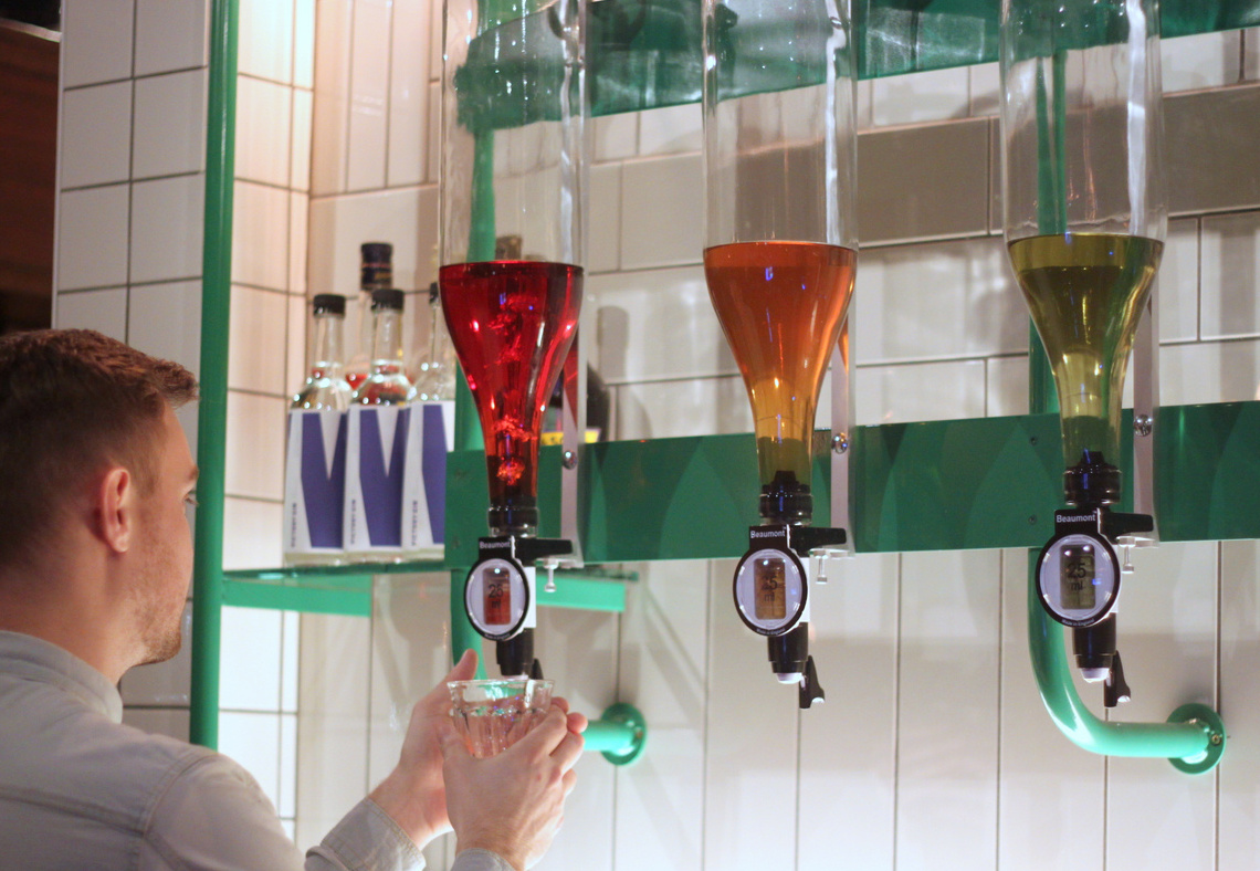 Elephant is used for sign and headline typography, applied to walls, placards and table-tops. Elephant is also used as large initial letters on their own-label spirits bottles, making a striking impression behind the bar.