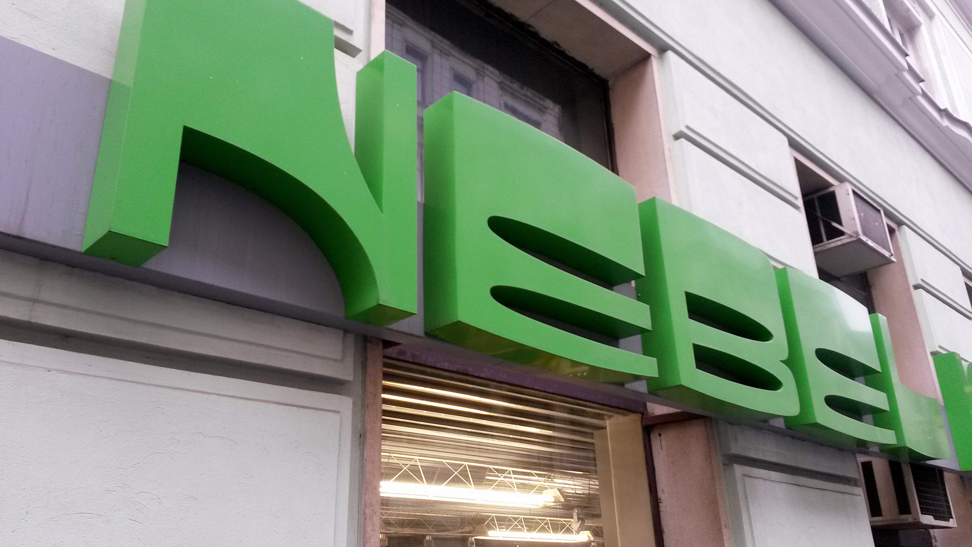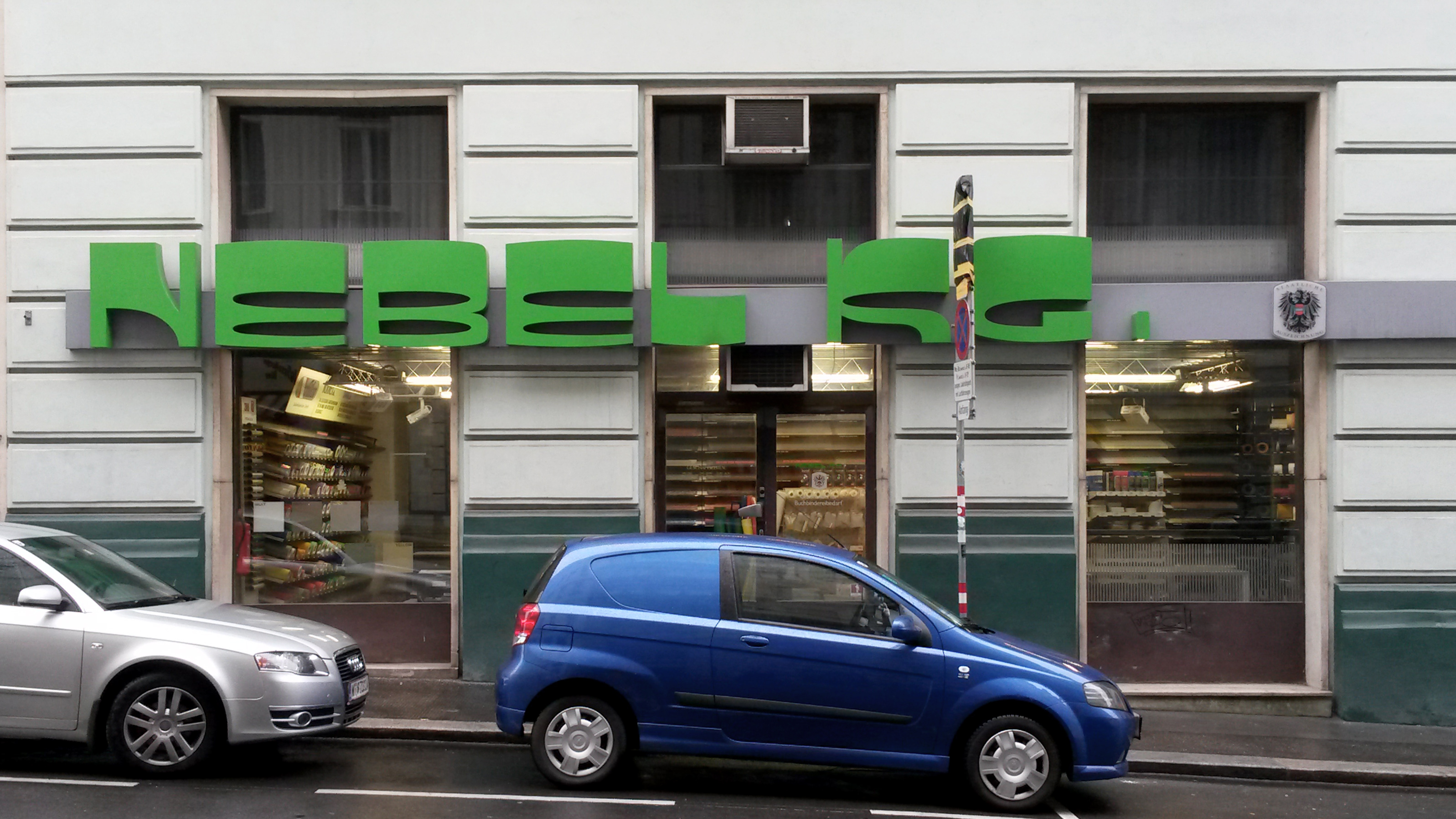 Jackson used on the storefront of Vienna’s long-established bookbindery supplier Nebel, founded in 1906. In order demonstrate the amenities of hot foil stamping – one of the main branches of business – they had changed their logotype to Jackson’s bulky letters in the 1970s. A few years back, the originally orange painted signage was replaced by the same type of construction.