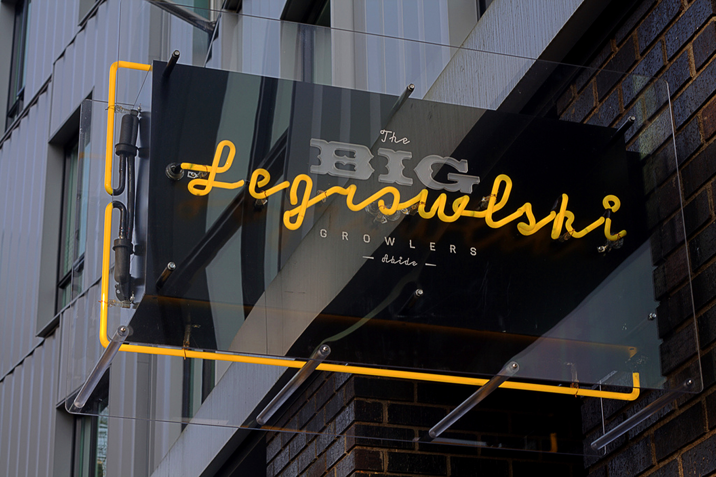 The Big Legrowlski Growlers Contributed by Stephen Coles on May 20th, 2016. Artwork published in 2014. Source: neutura.me License: All Rights Reserved. Obviously based on the main title from the film The Big Lebowski, replacing Magneto with Easyscript which is better suited for translation into neon. Source: neutura.me License: All Rights Reserved. Source: neutura.me License: All Rights Reserved. Source: neutura.me License: All Rights Reserved. Source: neutura.me License: All Rights Reserved. Typefaces More about ThunderbirdGet ThunderbirdMore about LL EasyscriptMore about HaymakerGet Haymaker Formats Signs (2182) Branding/Identity (8606) Topics Food/Beverage (3111) Retail/Shopping (1130) Designers/Agencies Neutura (1) Tagged withneon (156)alcohol (317)logos (5114)beer (207)bars (154) Artwork location United States (10061) San Francisco (343) Portland (117) In Setsvintage (Julia Karelina) (15) Post a comment Name Email – will not be published Website Your response Submit Comment More Thunderbird in use South Park postersc. 1997unknownContributed by Sunny Schultz Medical Mutual: Official Health Insurer of the Indians2012Wyse AdvertisingContributed by Fonts In Use Staff Core77 logoContributed by Florian Hardwig Sponsor More in Retail/Shopping Southside Wandsworth wayfinding2014Momentum WayshowingContributed by JAF La Cave du Collier2021FakepaperContributed by Fakepaper Staff Pick Maria SköldPhoto(s) by Stephen Coles on Flickr. AERONc. 2024Petra ZajáczContributed by Laura CsocsánYuptown(Sample unavailable) More in Branding/Identity ZB MED identityc. 2015Sabina SieghartContributed by TypeTogether CCEBA – Centro Cultural de España En Buenos Airesc. 2004Bernado + CelisContributed by Gareth Hague Staff Pick Medium.com (2015)2015MediumMarcin WicharyContributed by Matt Grey NanoAvionics2018AndstudioContributed by TypeType More Fonts In Use Palm Springs International Film Festival (fictional rebrand)2018Emilie HahnContributed by Emilie Hahn Staff Pick Free Your Funk: La Nuit Prince2019République StudioContributed by Altiplano Typefaces Staff Pick UAW CAP 74 poster1974unknownContributed by Elizabeth Goodspeed Staff Pick Absolvent:innen 2022/2023 catalog, AdBK Nürnberg2023Hannah GebauerPhilipp StöckleinContributed by Philipp Stöcklein Staff Pick