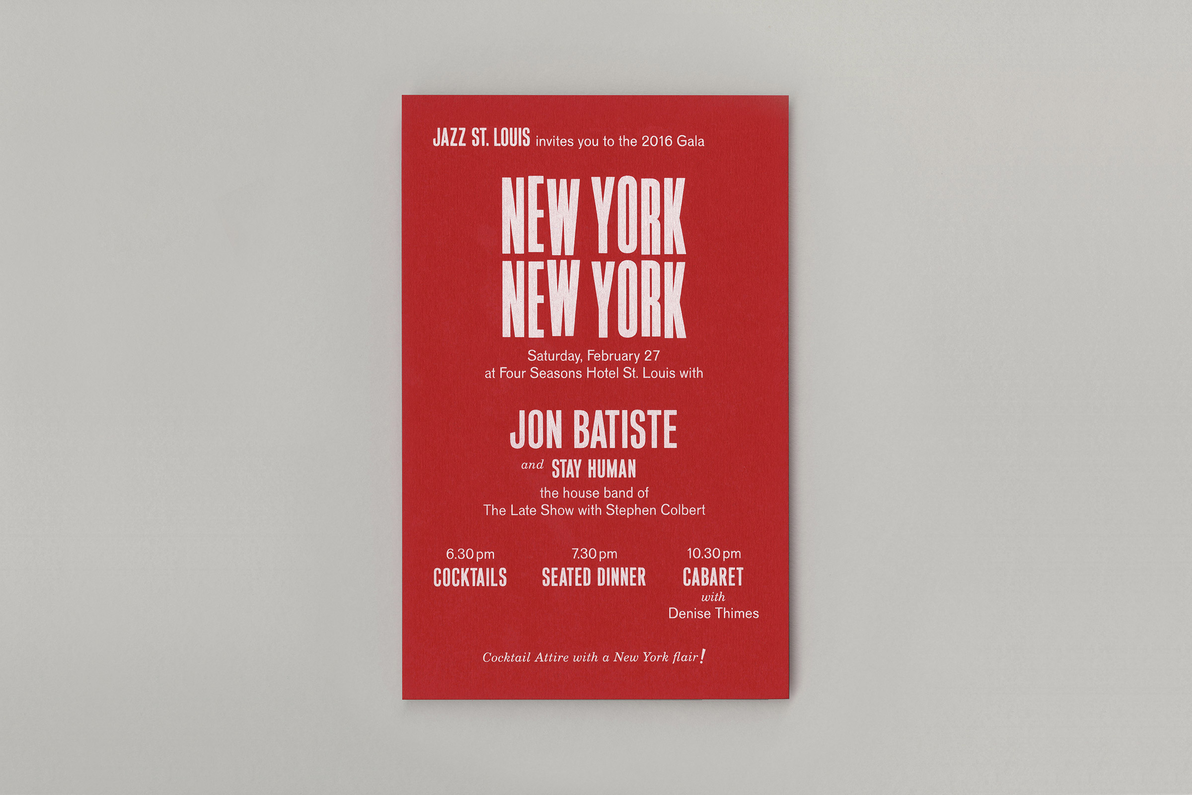 Multiple typefaces have been used for Jazz St. Louis’ invitation and program to its annual fundraising gala. Jazz St. Louis is an organization whose mission is to advance the art of jazz through live performance, education and outreach.