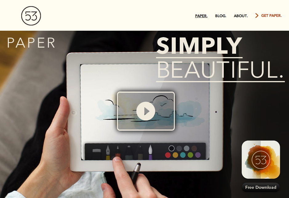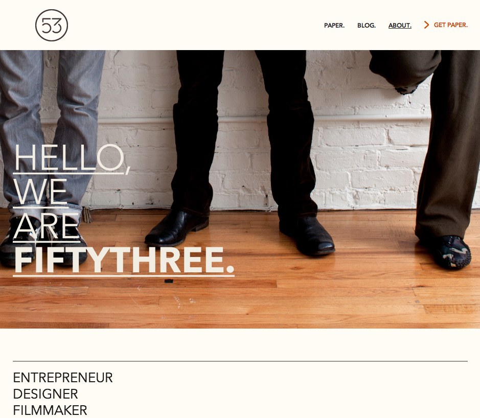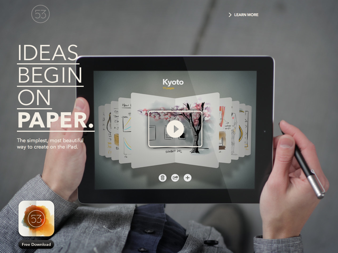 The website for design and development firm FiftyThree and their product pages for the Paper iPad app.