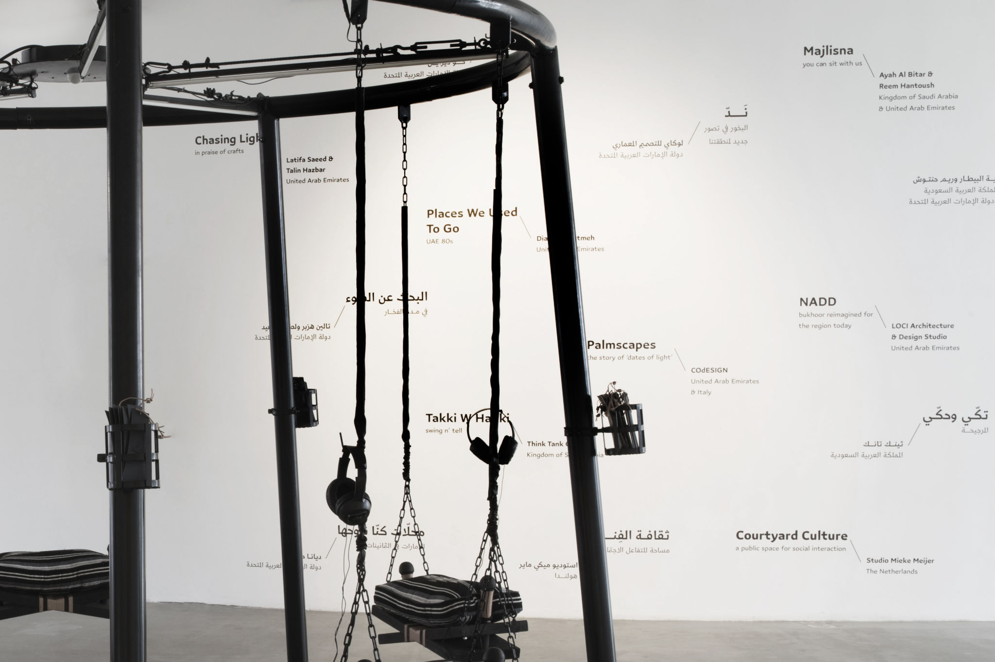 معـــرض “مكان في جديد الزمان: طرق حديثة لتصمــيم تراث الجزيرة العربية” للقيمة والمشرفة نور الدباغ، بسبعة أعمال فنية جديدة تم تكليف سبعة مصممين بإنجازها محلياً تسلط الضوء على عناصر مختارة من تراث الجزيرة العربية، وتوضح طــرق جديدة لأعراف وموروثــات قديمـــة، من خلال تحسينها أو تعديلها أو ربما قلبها رأساً على عقب.