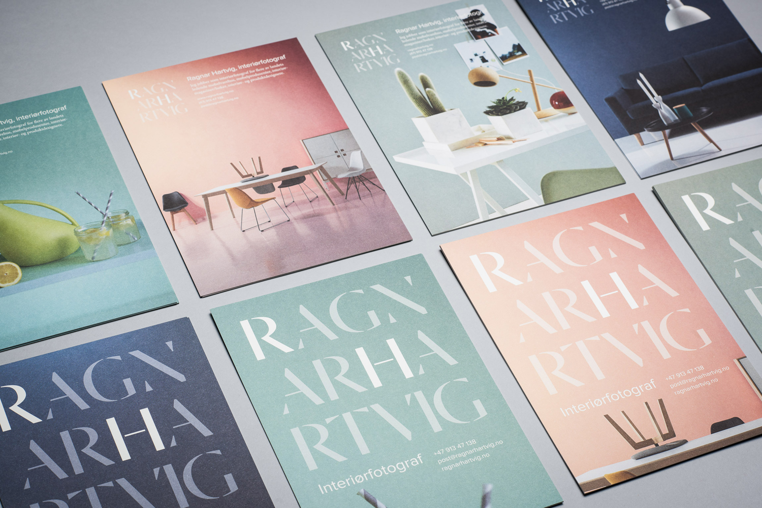 Ragnar Hartvig is a renowned Norwegian photographer with over 20 years experience and a strong network of collaborators. Clients have included leading furniture manufacturers, magazines and books, as well as interior and product designers. Ragnar Hartvig worked with Oslo based graphic design studio Commando Group to develop a new brand identity that would convey some of his personality, skillset and experience and link a variety of assets. These included flyers, business cards, stationery and website, linked by a bold use of Dala Moa.