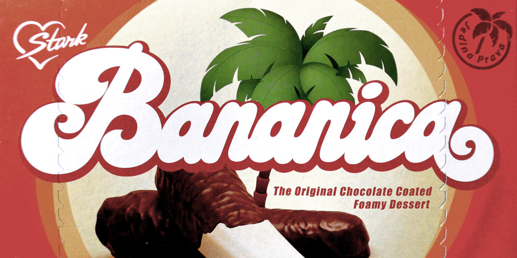 Bananica Contributed by Dav on Jun 24th, 2016. Artwork published in circa 1975. Source: www.atlantic.hr Štark. License: All Rights Reserved. Bananica — “The Original Chocolate Coated Foamy Dessert”, from Serbia. The product originated in 1938, but this logo design likely debuted in the 1970s–80s. Photo: Dav. Štark. License: All Rights Reserved. Typefaces More about CharadeGet CharadeMore about ImpactGet Impact Formats Packaging (2399) Branding/Identity (8298) Topics Food/Beverage (3012) Tagged withpackaging (904)sweets/candy (91)chocolate (89)swashes (746)outlined type (1244)logos (4896)bananas (13)shadow effects (1191)lettering derived from typeface (728) Artwork location Serbia (19) In SetsTypography (C. Redmon) (8)Tipos (Fernanda Soto) (52) Post a comment Name Email – will not be published Website Your response Submit Comment More Charade in use Pussycat – “Same Old Song” German single cover1978unknownPhoto(s) by Buro Destruct on Flickr. Kleding Maken – De makkelijke handleiding voor Zelfmaakmode1978Henriëtte BeukersHenk BeukersHaico BeukersContributed by Matthijs Sluiter Blog Elokuun Ruokavinkit1980unknownContributed by Florian Hardwig Sponsor More in Food/Beverage McDonald’s “Choosey Cheese Choosers” stickerc. 1975Contributed by Nick Sherman Staff Pick L’Art du Quotidien branding2024French Bre(a)d StudioContributed by Sarah Bourge Sosh.com2013offline labsContributed by Webtype Staff Pick “ILIT 100” – ILIT magazine special edition with Winsor & Newtonc. 2017Filippo La DucaMOM StudioContributed by Filippo La Duca More in Packaging Grizzly Beerc. 2017Jörg PetriContributed by Stefan Claudius Helvetica The Perfume2013Guts & GloryMeg ParadiseFaun ChapinContributed by Stephen Coles Trader Joe’s Broccoli & Kale Slaw and Riced Cauliflowerc. 2023unknownContributed by Callie W Leipurin weight control bread2019Agency of Visual Communications (AVC)Contributed by Andrij Shevchenko More Fonts In Use In the Heat of the Night movie posters1967unknownGráficas BobesContributed by Florian Hardwig Staff Pick A Clockwork Orange – Anthony Burgess (Penguin SF)1972David PelhamContributed by Stephen Coles Staff Pick Sagmeister & Walsh website2013Stefan SagmeisterJessica WalshSagmeister & WalshContributed by Stephen Coles Staff Pick Good Dogs2024VictionaryContributed by Benoît Bodhuin Staff Pick
