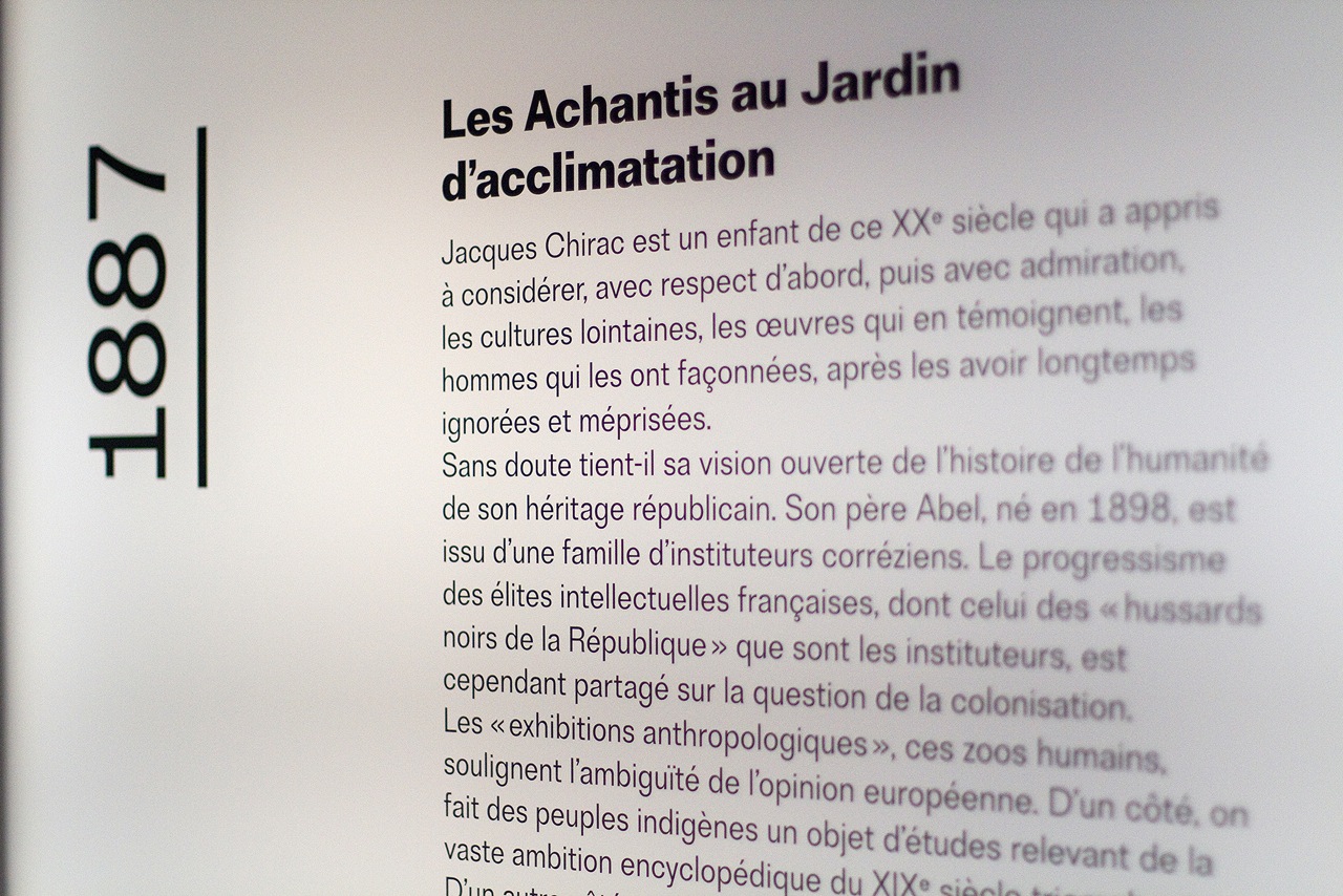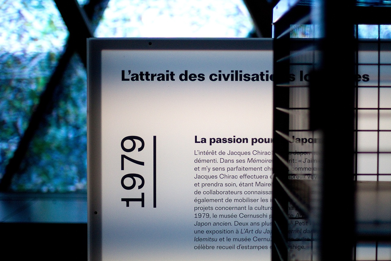 Jacques Chirac at Musée du Quai Branly Contributed by Bureau Brut on Jul 4th, 2016. Artwork published in June 2016. Source: Emmanuel Labard Emmanuel Labard. License: All Rights Reserved. Brut Grotesque can currently been seen in the exhibition on Jacques Chirac at the Musée du Quai Branly. Graphic design: Emmanuel Labard Typeface: Brut Grotesque, Bureau Brut Exhibition design: David Lebreton & Benjamin Tovo Curation: Jean-Jacques Aillagon Lighting concept: Sarah Scouarnec Printing: LD Pub Agency: Barem Photography © Emmanuel Labard License: All Rights Reserved. License: All Rights Reserved. Typefaces More about Brut GrotesqueGet Brut Grotesque Formats Exhibition/Installation (1165) Topics Institutional (1390) Event (3171) Politics (847) Designers/Agencies Emmanuel Labard (4) Tagged withMusée du Quai Branly (5)exhibitions (341)reversed type on an image (1203)rotated type (2203)Jacques Chirac (1)early uses (2204)French (language) (2496)numerals (1072) Artwork location France (2802) Paris (1302) In SetsExhibition (Lucas Bevilaqua) (374)1 Font (Lucas Bevilaqua) (285)project (M F) (8) Post a comment Name Email – will not be published Website Your response Submit Comment More Brut Grotesque in use ARTE Junior program2015Spassky FischerContributed by Bureau Brut Rencontres de Lure 2016: Chercher l’erreur2016Bureau BrutContributed by Bureau BrutTurb Grotesque(Sample unavailable) Sarah Sze, De nuit en jour / Artavazd Pelechian, La Nature, Les Saisons exhibition2020Super TerrainBaptiste ChaulouxContributed by Bureau Brut Sponsor More in Politics Ramones presidential seal logo1977Arturo VegaContributed by Nick Sherman Blog Entity of Decolonization / Ente di Decolonizzazione plaque2024Marginal StudioFrancesca GattellloContributed by Herman Berge “______ is voting for Biden” posters2020Jason CryerContributed by Gor Jihanian Staff Pick The Dunlap Broadside1776John DunlapContributed by Nick Sherman Blog More in Exhibition/Installation Way Out West Festival 20192019Leon&ChrisContributed by Gareth Hague Staff Pick Scènes antiques2018Arthur CalameContributed by 205TF The Distance From Here exhibition at Jameel Arts Centre2021Sarah Chehabwaiwai designContributed by Sarah Chehab Utah Jazz All Star 2024 campaign2024Utah Jazz MarketingContributed by Michele Galluzzo Staff Pick More Fonts In Use Instapaper iOS app2012Marco ArmentContributed by Stephen Coles Staff Pick Unboxing Bauhaus2025Ossian OsborneAnnemarie GrundLilli SörriesContributed by Moritz Appich Staff Pick W magazine, October 2012 (40th Anniversary Issue)2012Contributed by Stephen Coles Staff Pick The Story of Waylon Jennings box set2023Clay ConderContributed by Mark Butchko Staff Pick