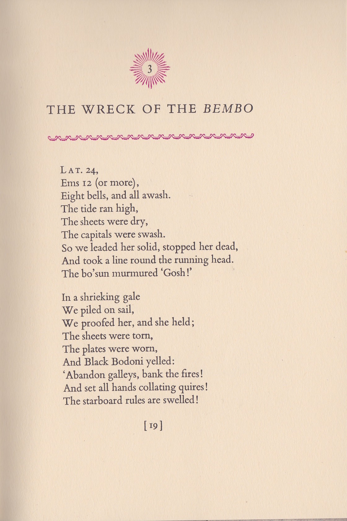 This slender stapled volume inside a wonderfully minimal cover is the brainchild of John Bell (1922–2008), a senior editor at Oxford University Press, who wrote comic verse in his spare time. The text is a set of comic verse on the trials and tribulations of publishing and of the hot metal typesetting machines of the time in particular, somewhat similar to the Guardian’s San Seriffe. It speaks of a time when the physical, technical work of publishing a book and the conceptual side were done in adjacent buildings, rather than on different continents.