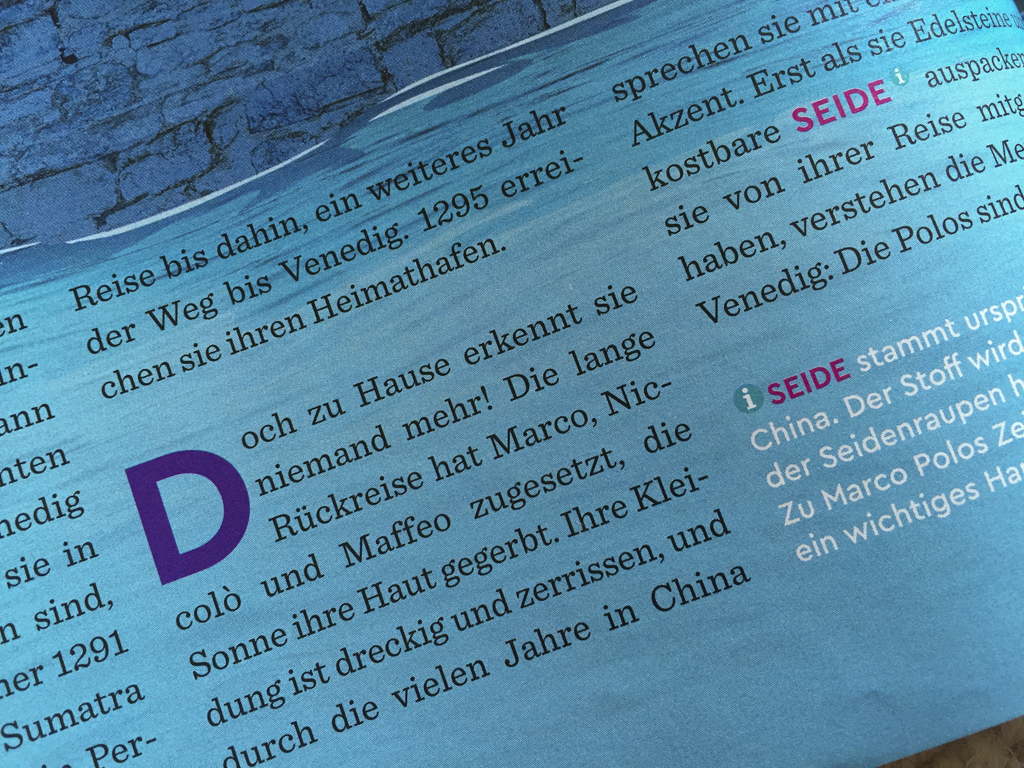 Geolino features a mix of various typefaces for playful headlines. Returning typographical constants are Chronicle for text and Cera for text and headlines.
