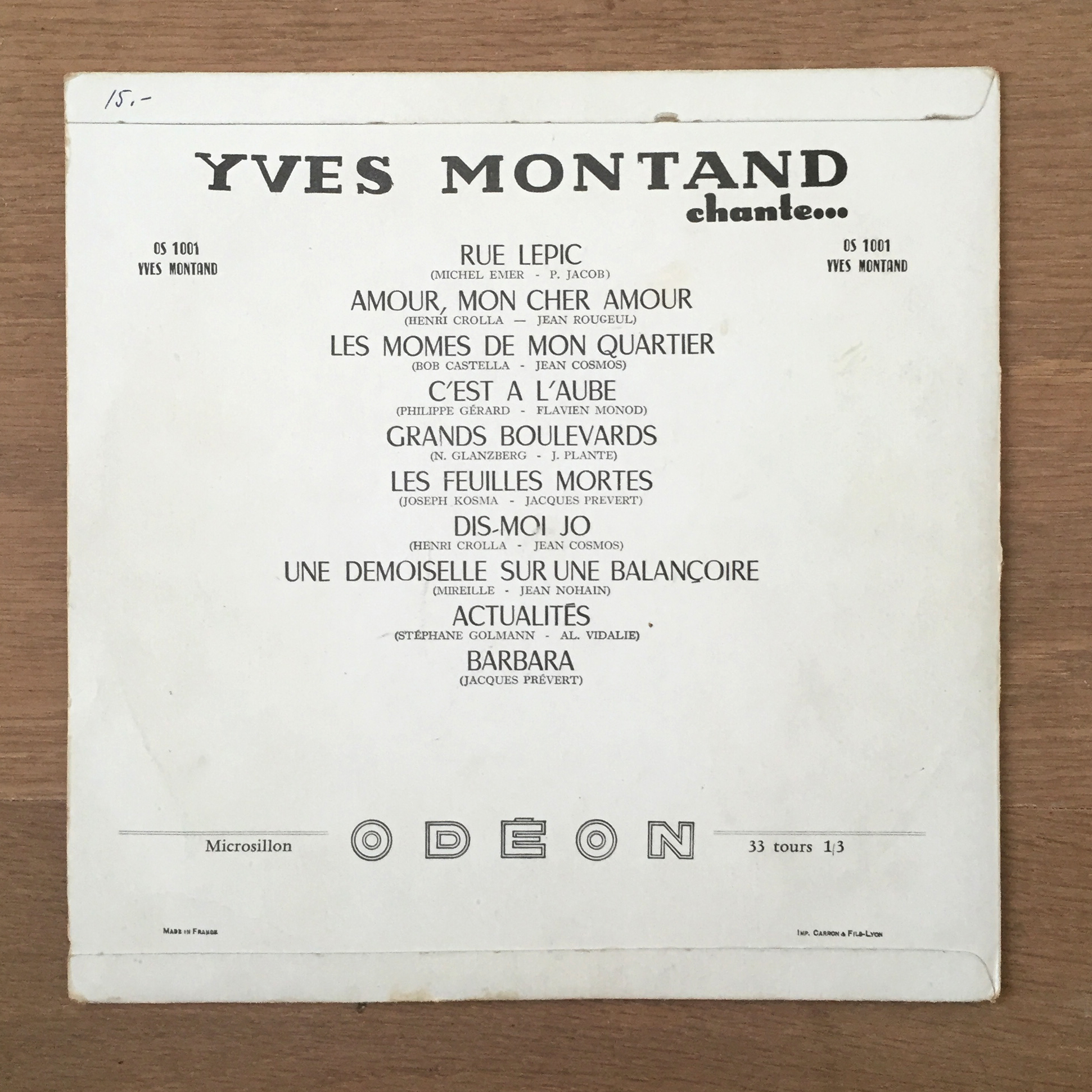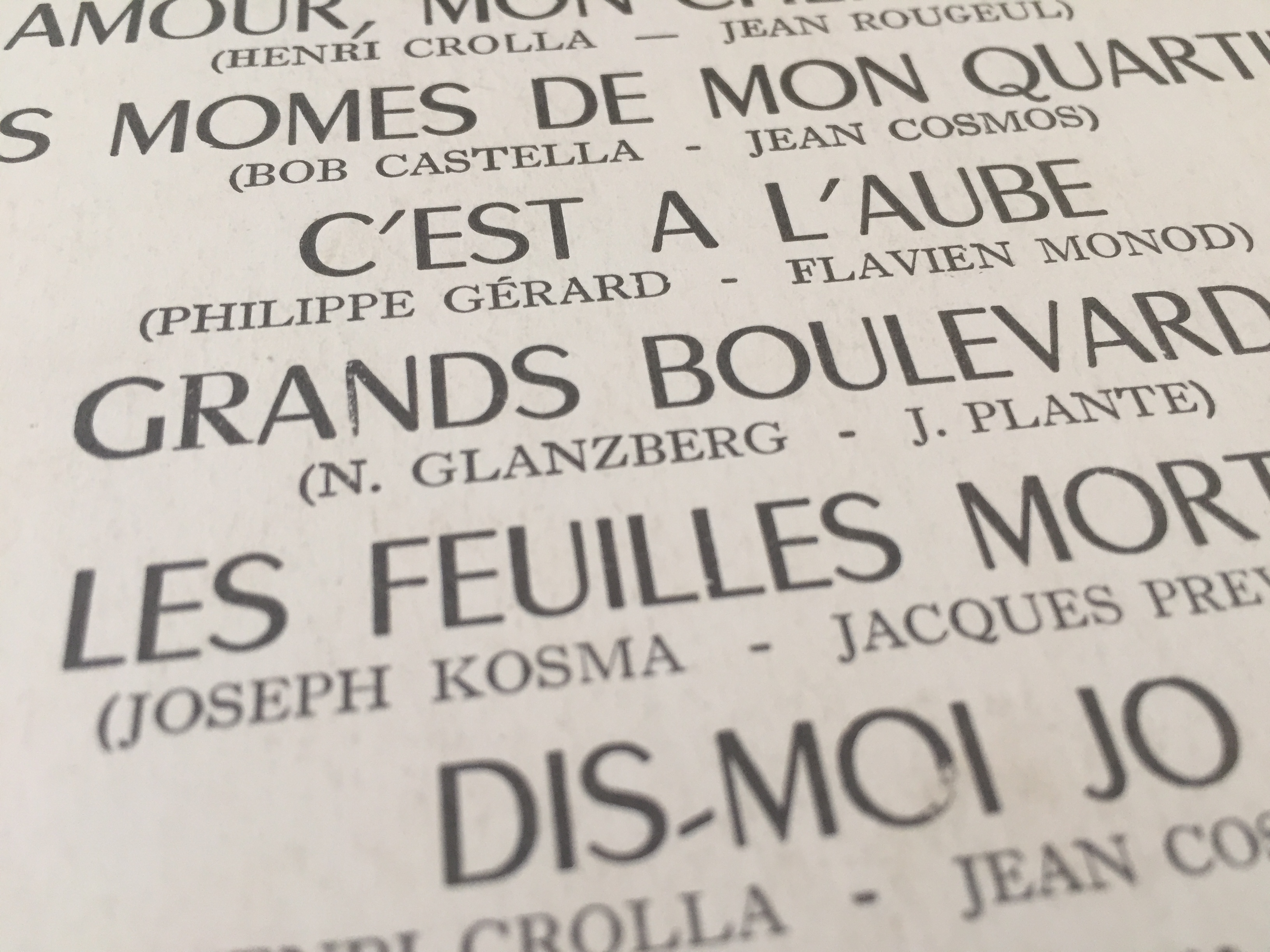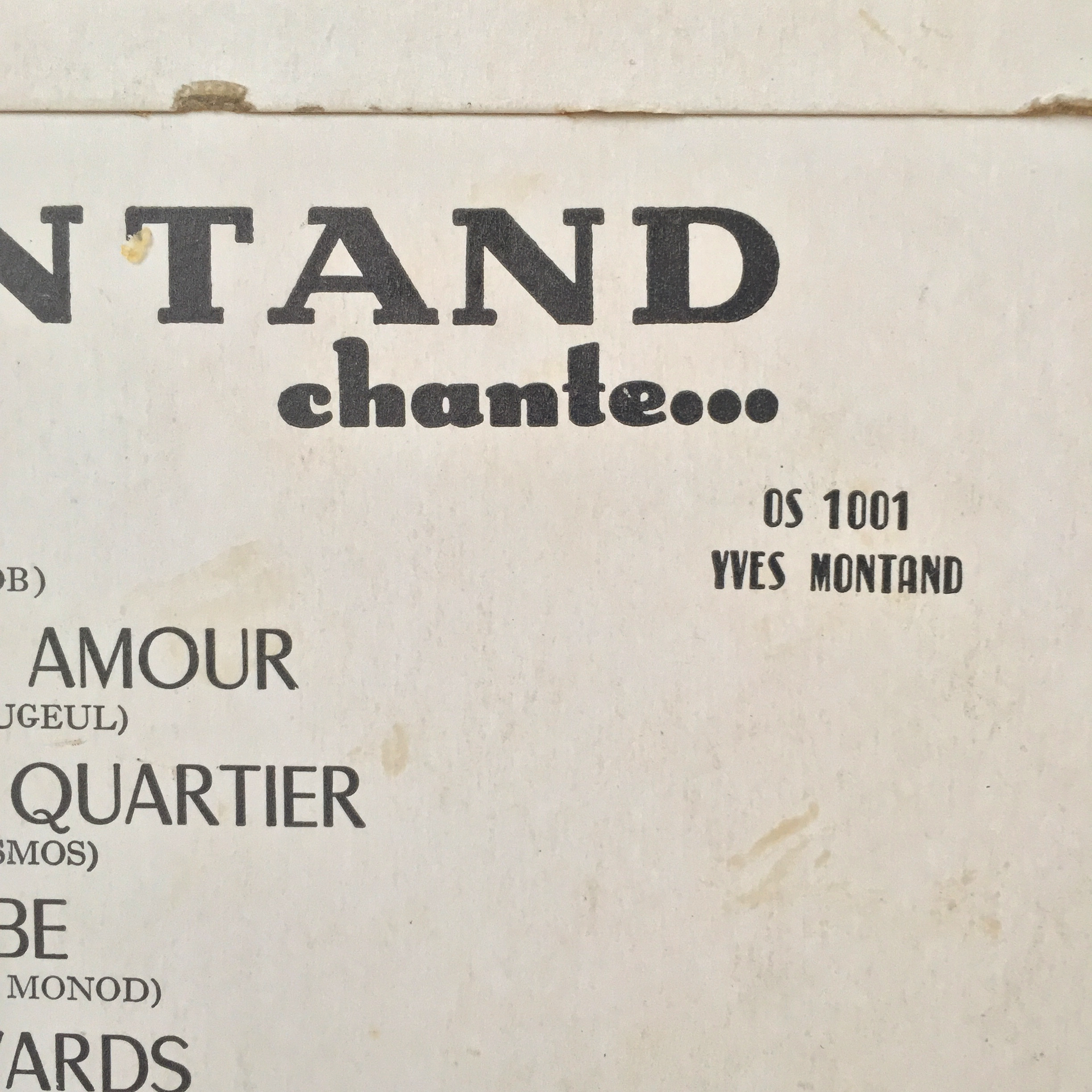 Yves Montand Chante… Contributed by Matthijs Sluiter on Jul 26th, 2016. Artwork published in 1953. Photo: Matthijs Sluiter. License: All Rights Reserved. License: All Rights Reserved. License: All Rights Reserved. Titanic AKA Hercule(s) is used for “chante…”. License: All Rights Reserved. Song titles set in Chambord, with an accidental serif R in “Grands”. Names of authors/composers in Caslon? License: All Rights Reserved. Vendôme playing a modest part in lower left and right corner. License: All Rights Reserved. Record label with song titles / authors set in Gill Sans and a compressed gothic typeface. Typefaces More about ChambordMore about TitanicGet TitanicMore about VendômeGet VendômeMore about Gill SansGet Gill Sans Formats Album Art (4292) Topics Music (6439) Designers/Agencies unknown (4265) Tagged withyellow and black (481)metal type (135)French (language) (2593)1950s (319)Yves Montand (1)Odéon Records (12)early uses (2284)album records (2860)back covers (2315)track listings (1276)vinyl records (3401) Artwork location France (2903) In SetsLogo (Vince Barile) (5)1950s (Roque Strew) (7)Ready for revival (Roque Strew) (27)SD TYPE (Pink Quarters) (10)Typefaces (Maude Paquette-Boulva) (4)RADIOGIAPPANESE (Leonardo de la Fuente) (2878) Post a comment Name Email – will not be published Website Your response Submit Comment More Chambord in use Abdelkrim Raïs – Moroccan Andalusian Music 1 album art1973unknownContributed by Owen Gardner The Otis Redding Story (1968–1970)c. 1968unknownContributed by Garrison Martin Staff Pick French tourism posters (1950s/1960s)c. 1960unknownContributed by Florian Hardwig Staff Pick Sponsor More in Music Ashbury Heights – Three Cheers for the Newlydeads album art2007Toni ThörnqvistContributed by Jack Griffin Smash Hits magazine logos (1978, 1980, 1982, 1985)c. 1978Steve BushContributed by Giles Booth Staff Pick Bordeaux Open Air, Édition 20232023Éma PerretIma StudioCulture CapucinsContributed by Éma Perret Paul Weller – Find El Dorado album art and campaign2025Richard AndrewsMiriam JacobiContributed by Robert O'Driscoll Staff Pick More in Album Art The Torero Band – Tijuana Christmas (Australia) album art1968unknownContributed by Florian Hardwig Gardens & Villa logo2011unknownContributed by Stephen Coles Roberto López – Kaleido Strópico album art2019Véronique LafortuneEmile Lord AyotteBillyclubContributed by Florian Hardwig Staff Pick Gazpacho – Missa Atropos album art2010Antonio Seijas CruzContributed by Jerry van Kooten More Fonts In Use The Opéra, Vol. XIII, “Mythos”2025Studio Tillack KnöllContributed by WELTKERN® Typefaces Staff Pick The Devil’s Dictionary of Ambrose Bierce1958Joseph LowContributed by Chris Purcell Staff Pick Valiz’s PLURAL book series2020Lotte Lara SchröderContributed by Stephen Coles Staff Pick Sight by Jessie Greengrass2018Elena GiavaldiContributed by Production Type Staff Pick