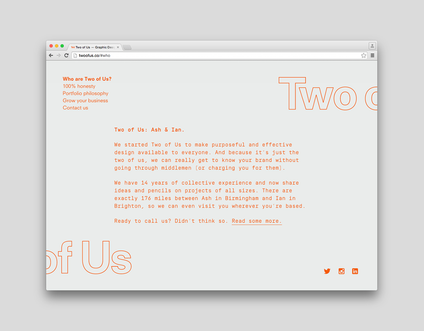 Two of Us is a brand focused design partnership formed by Ash O’Brien and Ian Caulkett, working from Birmingham and Brighton.