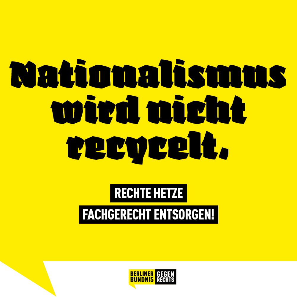 “Nationalism won’t be recycled. Professionally dispose of right-wing agitation!”