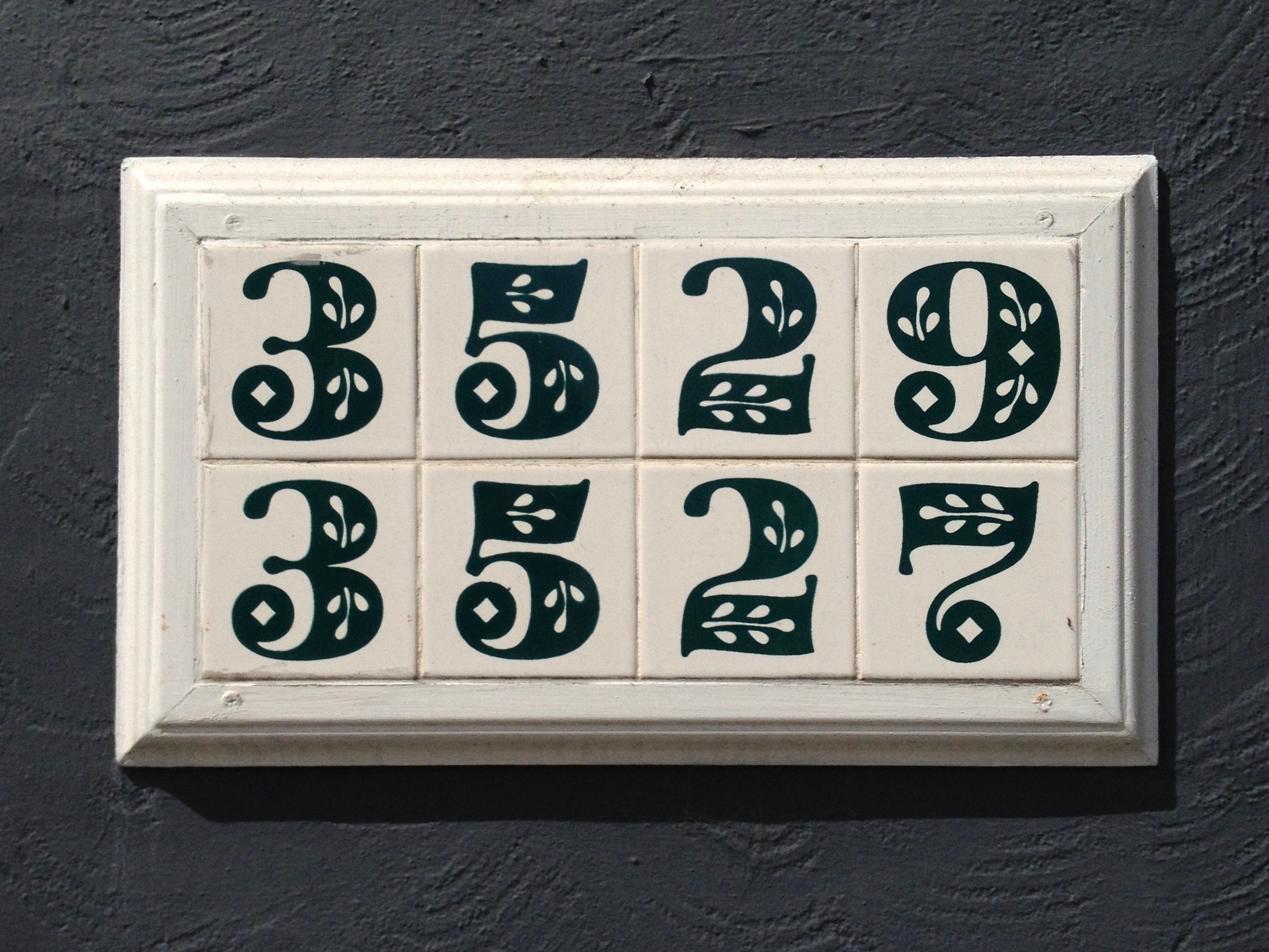 House number tiles with Hermann Zapf’s Saphir, spotted in San Francisco’s Marina District in 2013. According to Google Street View, the sign was installed already in 2008.