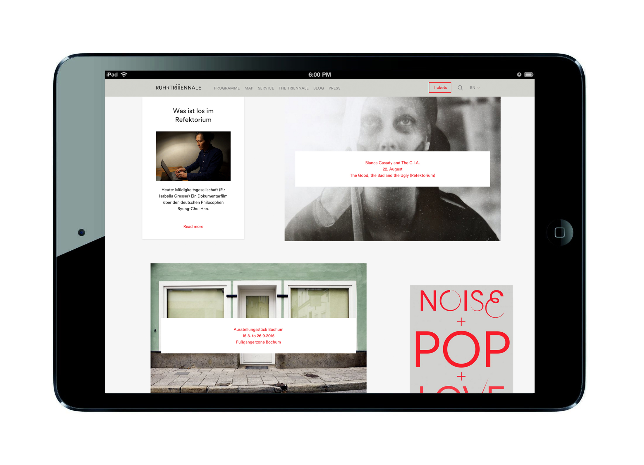 Music, dance, theatre, performance and fine arts in the former industrial buildings of the Ruhr Area: that’s the Ruhrtriennale. The venues of the Ruhrtriennale are the region’s outstanding industrial monuments, transformed each year into spectacular sites for impressive arts productions. At the center of all this are contemporary artists seeking a dialog with industrial spaces and between the disciplines. World premieres and new works are the essence of the program which makes visiting to the Ruhrtriennale an incomparable event. Every season, festival productions from the Ruhr region go on tour around the world.