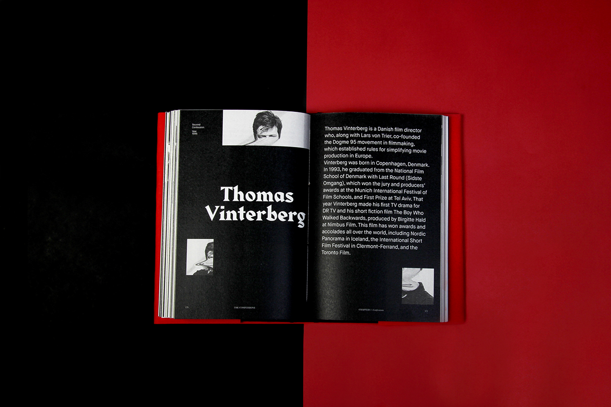 The Confessions is an exposé on how the directors and supporters of the filmmaking movement Dogme 95 broke their own rules. These confessions develop throughout the traditional steps of a Catholic Confession, therefore revealing the paradox between rule making and rule breaking.