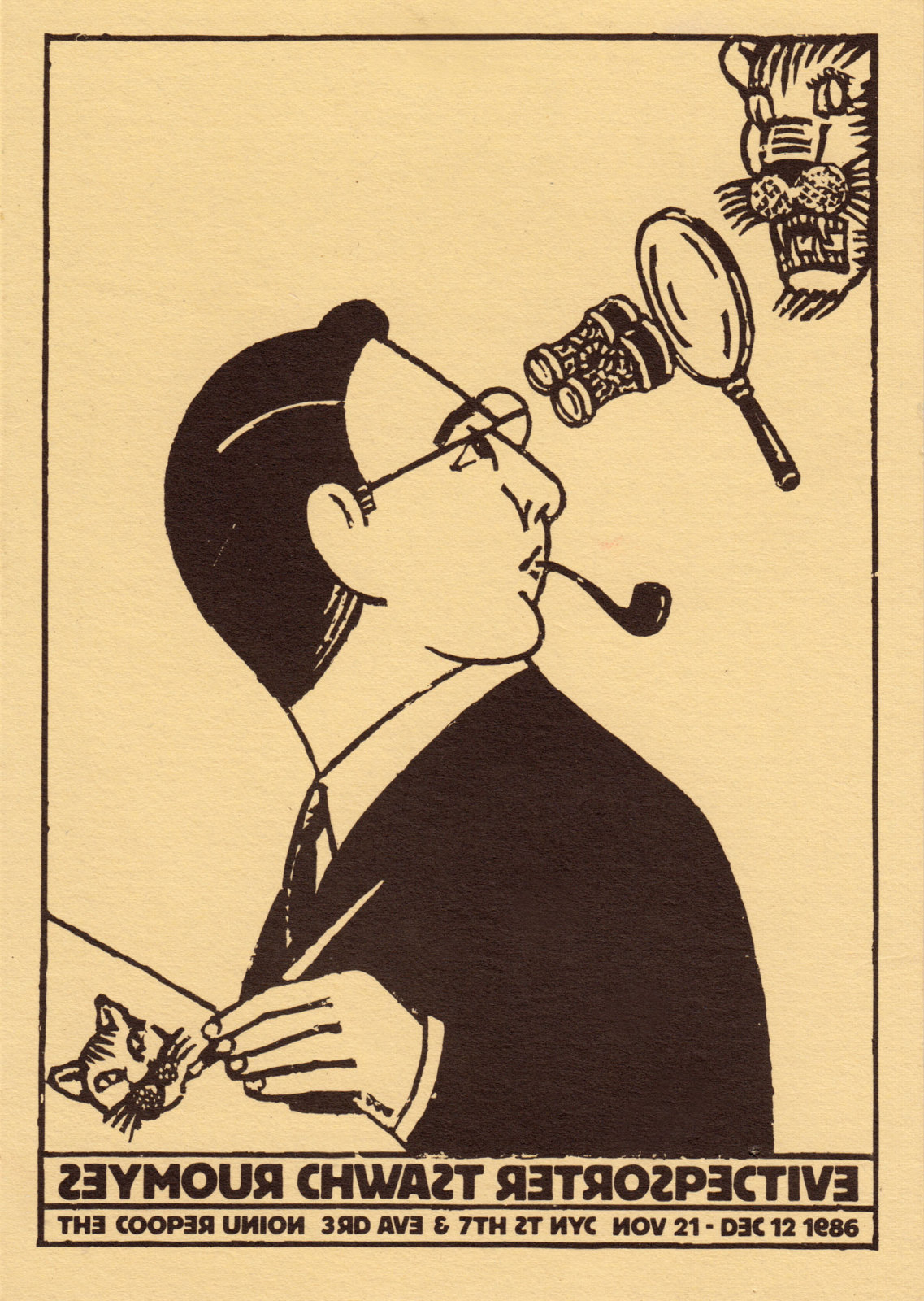 Seymour Chwast Retrospective posters Contributed by Stephen Coles on Sep 25th, 2016. Artwork published in 1986. Source: www.seymourchwastarchive.com © Seymour Chwast. License: All Rights Reserved. The Cooper Union, 3rd Ave. & 7th St. Nov 21 – Dec 12, 1986 Source: www.seymourchwastarchive.com © Seymour Chwast. License: All Rights Reserved. Typefaces More about Berthold BlockGet Berthold Block Formats Posters/Flyers (5756) Topics Event (3208) Graphic Design (3008) Art (4684) Designers/Agencies Seymour Chwast (9) Tagged withillustration (1581)mirrored type (137)exhibition posters (747)art exhibitions (864)all caps (7589)borders and rules (1125)retrospectives (102)Cooper Union (11)pipes (6)cats (94)tigers (25)stacked and justified (650) Artwork location United States (9908) New York City (2910) In SetsTYPO (Naomi Greenstein) (14)San Serif (Serena Ho) (4)PHANTA (Leonardo de la Fuente) (285) Post a comment Name Email – will not be published Website Your response Submit Comment More Berthold Block in use International Love Corporation contact card2011Eva GonçalvesContributed by Tânia Raposo re:publica posters, 1913–20132013WortfeldAlexander SvenssonContributed by Florian Hardwig Staff Pick Don’t Save Anything. The Uncollected Writings of James Salter2017Zoe NorvellContributed by Chris Purcell Sponsor More in Art Argo, issue 63/22020Ajdin BašićContributed by Alja Herlah Art Reoriented2019Eps51Contributed by Marcus Bpunkt Staff Pick Mémoire des moissons2023Hugo AmenoucheContributed by Hugo Amenouche Antanas Ingelevičius. Kūrėjas ir Miestas2022Rokas SutkaitisContributed by Yevgeniy Anfalov More in Posters/Flyers “Soldates, Suffragettes & Citoyennes” poster2018Sarah BorisContributed by Production Type Proto-Cinema No.2 poster, Spazio Supernova2024Arnoud VerhaegheContributed by ABC-ETC.COM Maison de la Culture d’Amiens, 2019/20 season2019Julien LelièvreContributed by Production Type Rencontres Cinématographiques de L’ARP 20222022Building ParisContributed by Électro Bibliothèque More Fonts In Use Royez Musik shop frontc. 1972unknownContributed by Roel Siebrand Staff Pick The Other Times Modernc. 1970C D MoorbyWilly FleckhausRolf StaudtContributed by Stephen Coles Blog Things Heard & Seen (2021) TV series titles2021Alphonse SwinehartFilmographContributed by Alphonse Swinehart Staff Pick Looping Grampsc. 2024Alejandro SánchezContributed by Alt Type Staff Pick