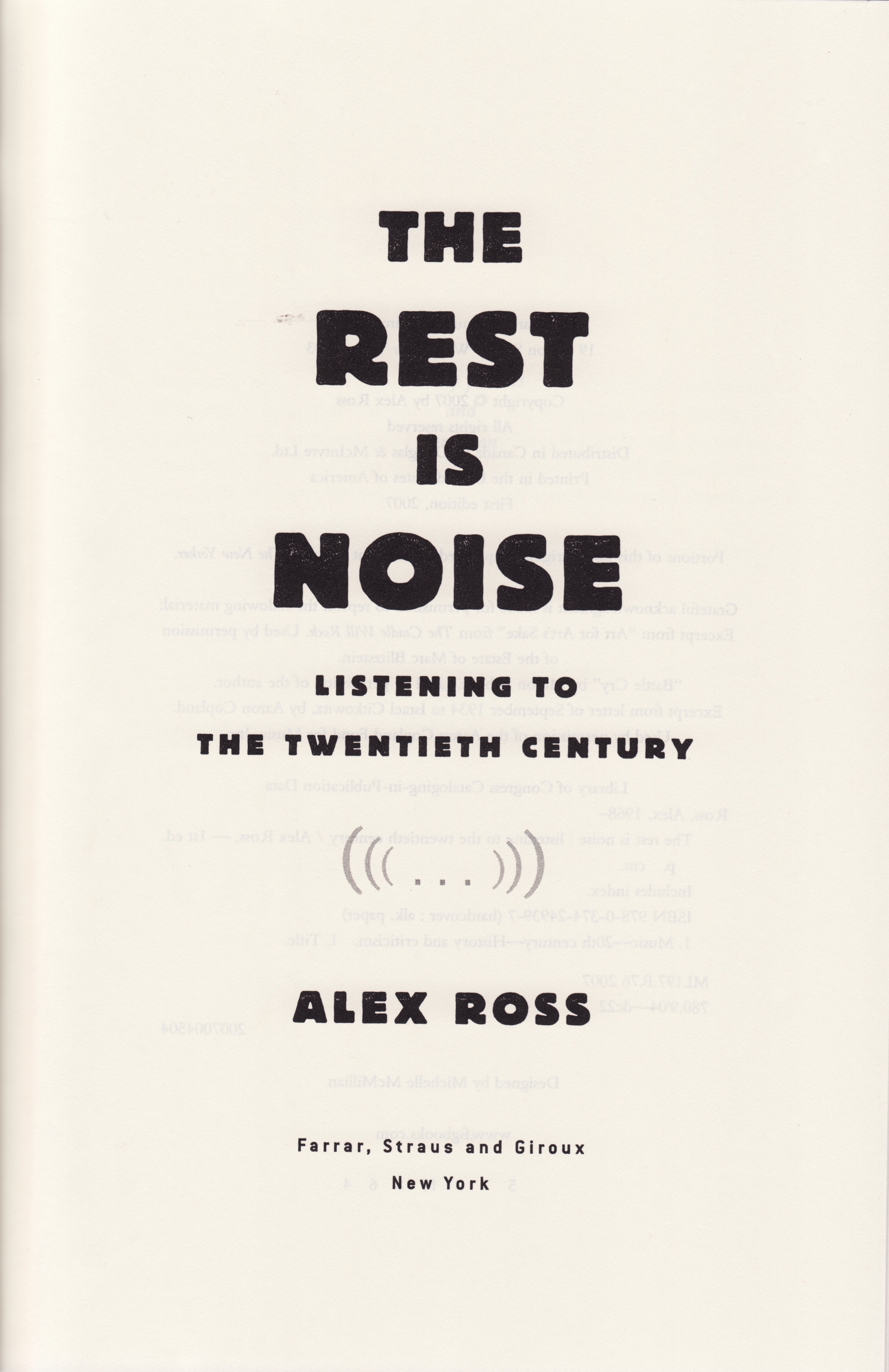 The Rest is Noise by Alex Ross Contributed by Chris Purcell on Sep 28th, 2016. Artwork published in 2007. Photo: Chris Purcell. © Farrar, Straus and Giroux. License: All Rights Reserved. It’s rare for the jacket and page design of most books to be coordinated this way. Charlotte Strick did the cover, and Michelle McMillian did the book. The type on the cover is slightly debossed. Photo: Chris Purcell. License: All Rights Reserved. Photo: Chris Purcell. License: All Rights Reserved. Typefaces More about Berthold BlockGet Berthold BlockMore about BemboGet BemboMore about ITC ConduitGet ITC Conduit Formats Books (6417) Topics Literature (2989) Music (6215) Designers/Agencies Charlotte Strick (3) Michelle McMillian (1) Tagged withbook jackets (889)stacked and justified (640)red and black (1124)embossed/debossed (610)loose letterspacing (415)title pages (1014)center-aligned text (1857)chapter openings (854)book interiors (3566)Alex Ross (1)Farrar, Straus and Giroux (36)bullet (•) (97)borders and rules (1085) Artwork location United States (9770) New York City (2868) In SetsFNSL (Dumitru Săcăreanu) (19)Designs by Women (Fonts In Use Staff) (3460)JACK'S MOM'S GRANOLA (Chad Schram) (8)PHANTA (Leonardo de la Fuente) (285) Post a comment Name Email – will not be published Website Your response Submit Comment More Berthold Block in use Monogramme zur Wäsche-Stickerei, Johann Merkenthaler catalogc. 1914Contributed by Riccardo Sartori Der Schatz der Sierra Madre / Das Totenschiff by B. Traven (Bertelsmann Club)c. 1980unknownPhoto(s) by Michael Studt on Flickr. Les nouveaux bâtisseurs2017Martin Lavielledeux degrésContributed by Martin LAVIELLE Sponsor More in Music Poëzie aan de waterkant2013Studio Het MesContributed by Matthijs Sluiter Staff Pick Amplified Opera – Amplify poster series2019Acme Art & DesignContributed by Michael Barker Iron & Wine 2014 Tour2014John ToschContributed by Shiva Nallaperumal Sea Sleepers poster2023David MatosShutupandanceContributed by David Matos More in Books Liberation Day by George Saundersc. 2022Greg HeinimannContributed by Alex Chavot The Lively Commerce by Charles Winick and Paul M. Kinsie1971Milton CharlesContributed by Amanda Weiss Incontri Editrice2012Nicola CaleffiContributed by TypeTogether Gerard & Kelly – RUG2025Three Star BooksContributed by Adrien Menard More Fonts In Use Walerian Wróbel. Zwei Blicke auf das Unrecht am jungen Zwangsarbeiter at Bremische Bürgerschaft2023oblik identity designContributed by Nguyen Gobber Staff Pick You Think It, I’ll Say It by Curtis Sittenfeld (Doubleday)2018Cabin LondonAmi SmithsonContributed by Florian Hardwig Staff Pick Francisco José de Goya. Richter und Gerichteter1970Hans-Rudolf LutzContributed by Philipp Messner Staff Pick Plastic postcards2018Ivana PalečkováContributed by Ivana Palečková Staff Pick