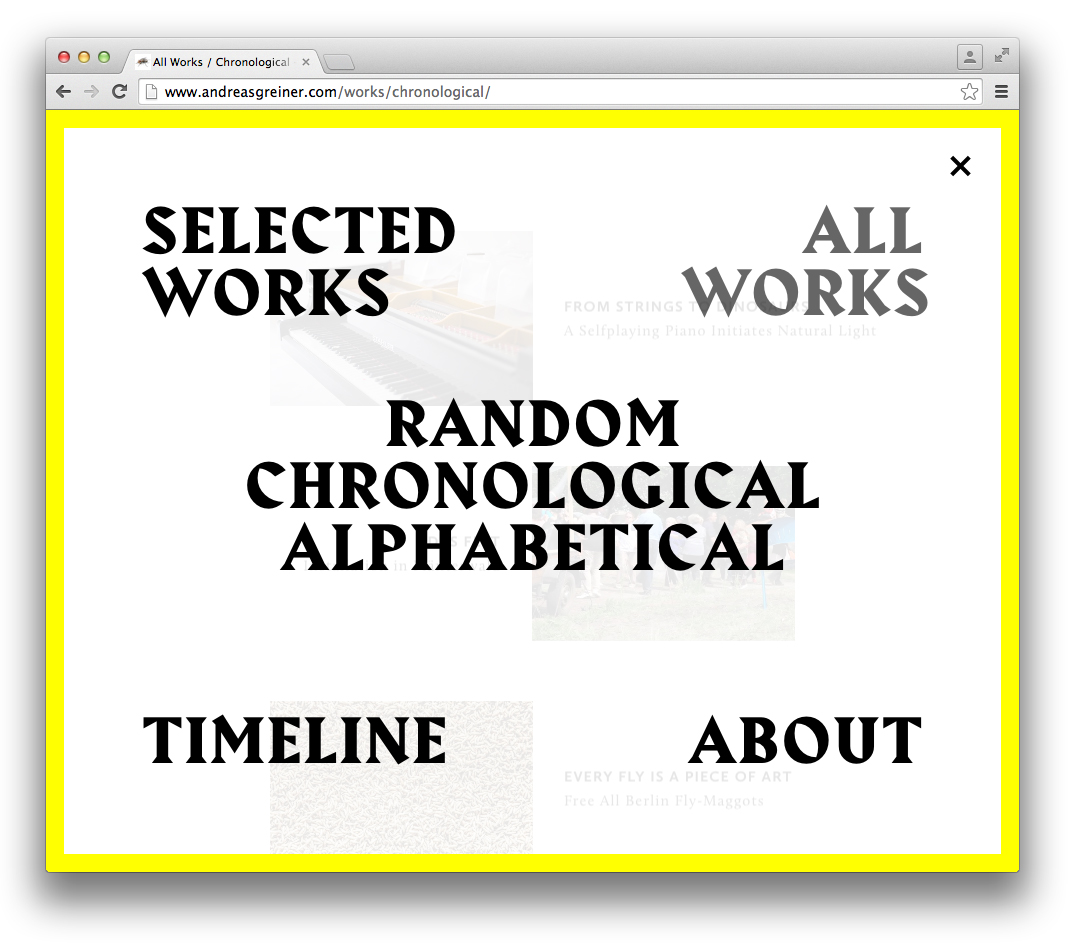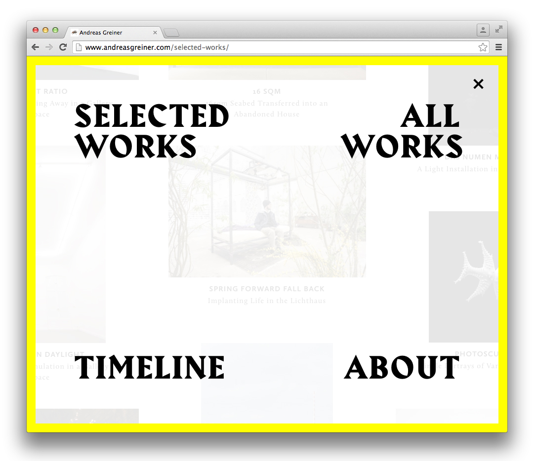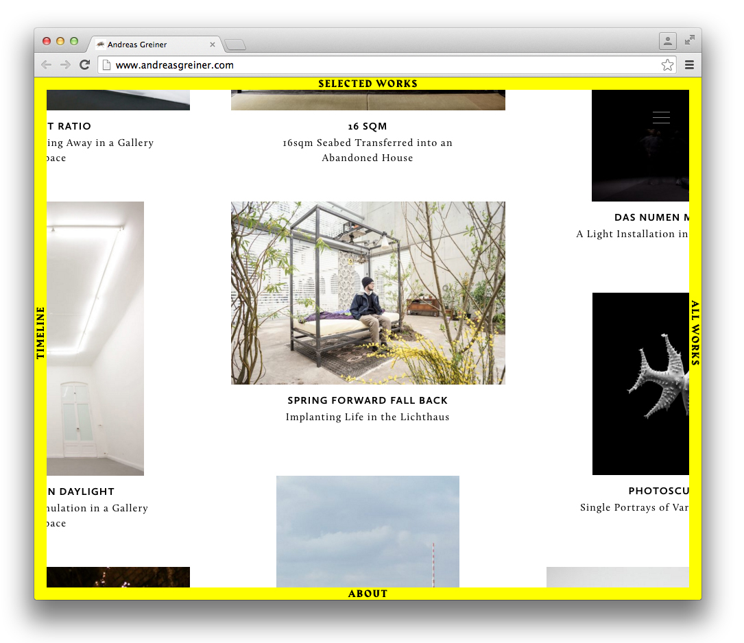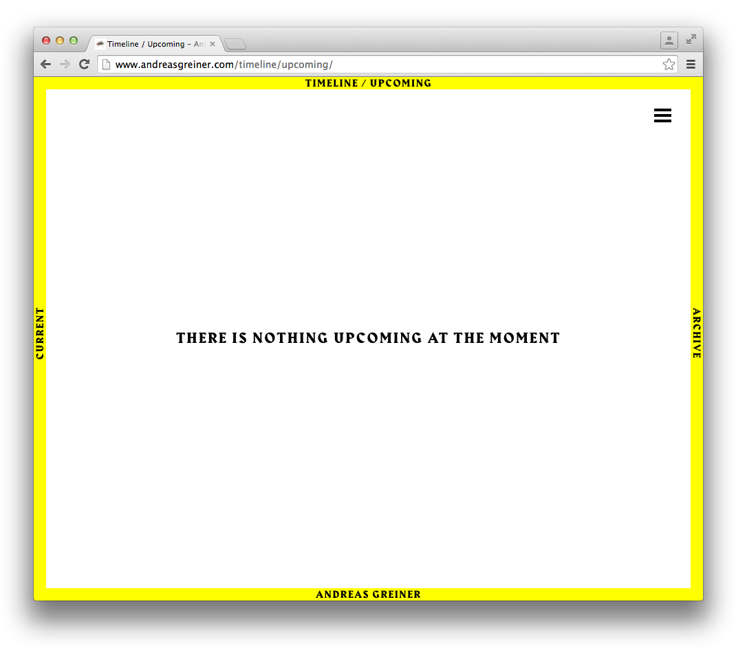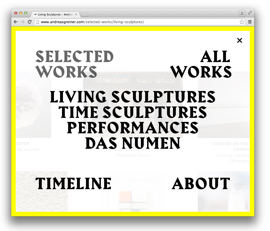 Andreas Greiner website Contributed by Gareth Hague on Oct 9th, 2016. Artwork published in 2016. Source: www.andreasgreiner.com Andreas Greiner. License: All Rights Reserved. Source: www.andreasgreiner.com Andreas Greiner. License: All Rights Reserved. Source: www.andreasgreiner.com Andreas Greiner. License: All Rights Reserved. Source: www.andreasgreiner.com Andreas Greiner. License: All Rights Reserved. Source: www.andreasgreiner.com Andreas Greiner. License: All Rights Reserved. Source: www.andreasgreiner.com Andreas Greiner. License: All Rights Reserved. Source: www.andreasgreiner.com Andreas Greiner. License: All Rights Reserved. Source: www.andreasgreiner.com Andreas Greiner. License: All Rights Reserved. Source: www.andreasgreiner.com Andreas Greiner. License: All Rights Reserved. Typefaces More about HarbourGet Harbour Formats Web (5659) Topics Art (4730) Designers/Agencies Sin-U Ko (1) Tagged withall caps (7676)left-and-right-aligned text (256)yellow and black (476)left, right, up, down (216)borders and rules (1137)trendlisty (118)artist websites (4) Artwork location Germany (3898) Berlin (1161) In SetsTYPO (Naomi Greenstein) (14)fashion (Hajnalka Illés) (20)Alias_Web (Gareth Hague) (29)Alias_Art (Gareth Hague) (40) Post a comment Name Email – will not be published Website Your response Submit Comment More Harbour in use Tertium Quid by Murray Moss2014Contributed by Gareth Hague Moving Hands (Helena Hauff Remix) by The Klinik, official video2016Katie ShannonMarianne WilsonContributed by Gareth Hague Popaganda Festival 20212021Saga BergeboContributed by Gareth Hague Sponsor More in Art Jari Genser – It Is about Time2023Theresa HattingerContributed by Theresa Hattinger Elastic magazine, no. 12025Chloe ScheffeNatalie ShieldsScheffe ShieldsContributed by Greg Gazdowicz Staff Pick Juergen Teller: Go-Sees1999Murray & Sorrell FUELContributed by Stephen Coles Staff Pick Sometimes2012James KapeContributed by Indra Kupferschmid More in Web Service List2018Moe AmayaContributed by Moe Amaya T_24c. 2015Alexander VasinContributed by Gayaneh Bagdasaryan Heidi Brand physiotherapy website2021Pamela RuheContributed by Julien Fincker Designhorse2010DesignhorseContributed by Webtype More Fonts In Use RUFA Annual Report 20222023Intorno DesignGuido LombardoDavide LucciniContributed by intornodesign Staff Pick Black Myth: Wukong video gamec. 2024Hanyi FontsContributed by Hanyi Fonts Staff Pick You Would (2012) and Was haben wir gesehen/ What we have seen (2016) by Robert Frankc. 2012Steidl DesignContributed by Florian Hardwig Staff Pick Brotherhood of Man – “Kiss Me, Kiss Your Baby” international single covers1975Contributed by Johannes Vandenheuvel Staff Pick