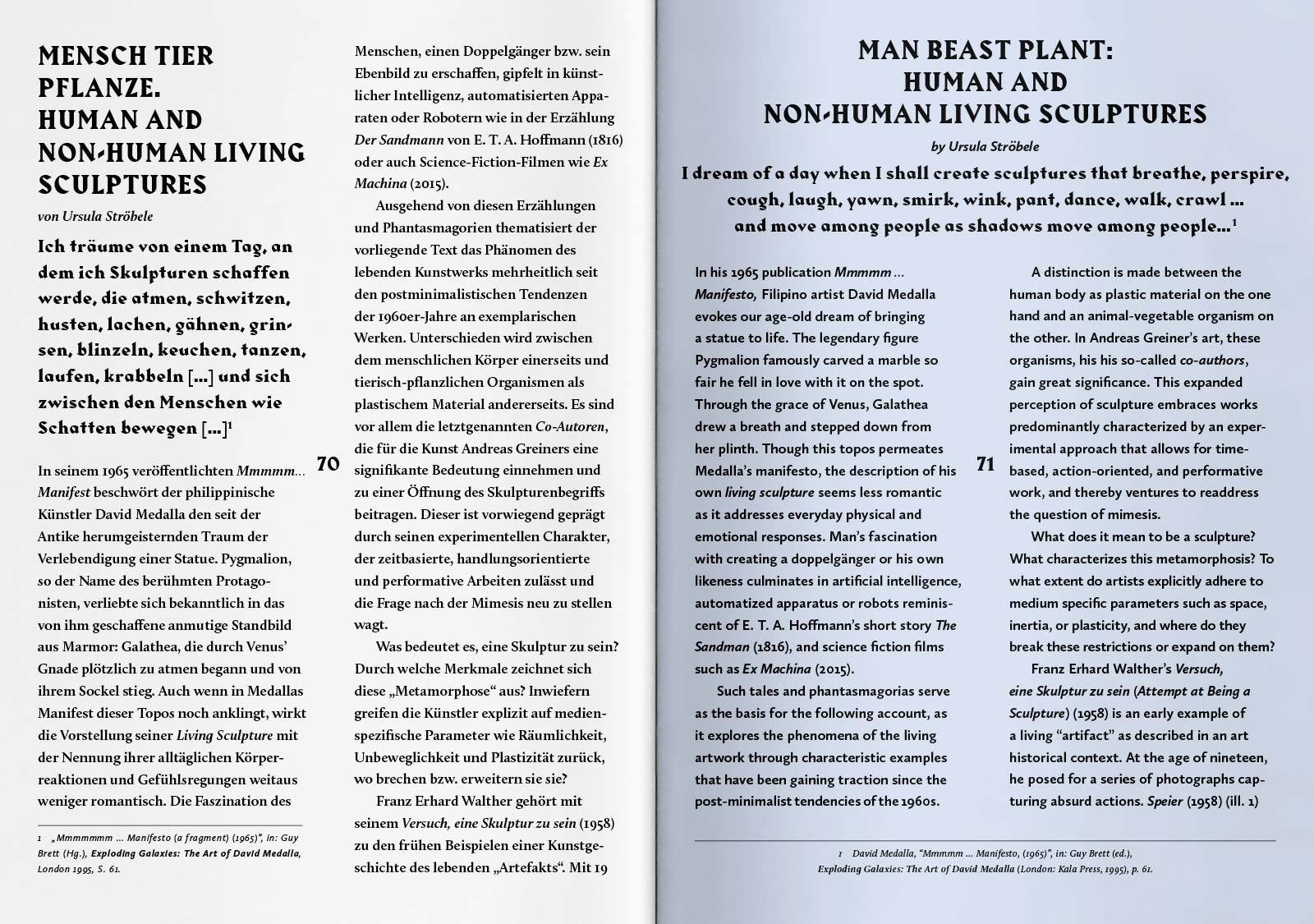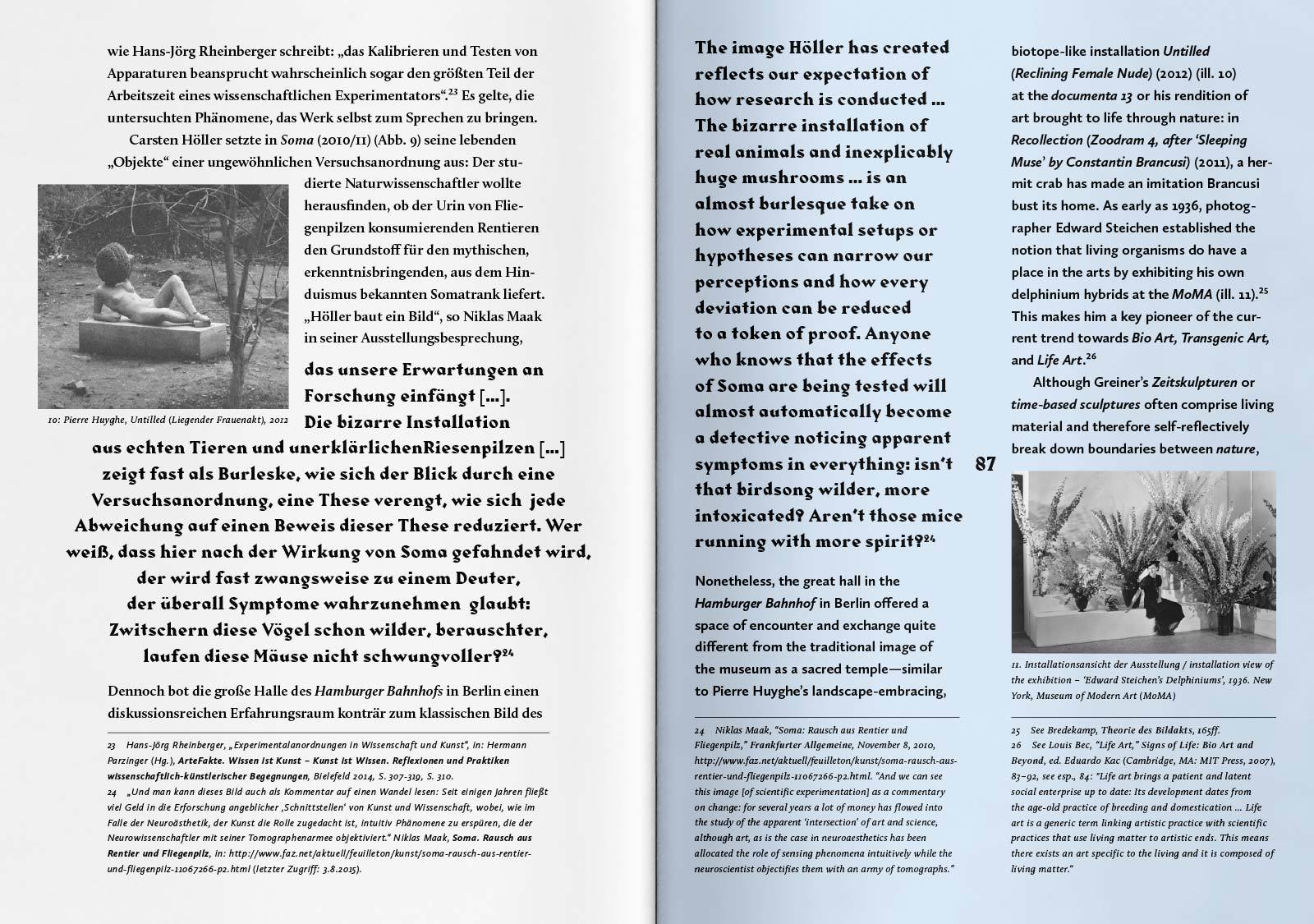 The monograph is published by Verlag für moderne Kunst and is presented in two versions: one for commercial sale and one special edition limited to 100 copies. The special edition features a textile cover, infused with micro-organisms to cultivate unique patterns co-designed by nature and Greiner’s experimental methods. Captured and suspended in time, abstract splashes of color in varying gradations have been fixed by a process of sterilization—preventing further transformation while producing an individualized record of the transitory structures of nature. — Berlin Art Link