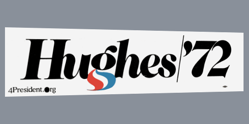 Harold Everett Hughes (1922–1996) was a Governor of Iowa (1963–1969) and a Democratic United States Senator (1969–1975). “In early 1970, Hughes began to get press recognition as a ‘dark horse candidate’ for the 1972 presidential election. He seemed to observers to be an almost reluctant candidate, though, and a bit too much of a ‘mystic’ for the Washington press corps.” — Wikipedia