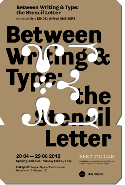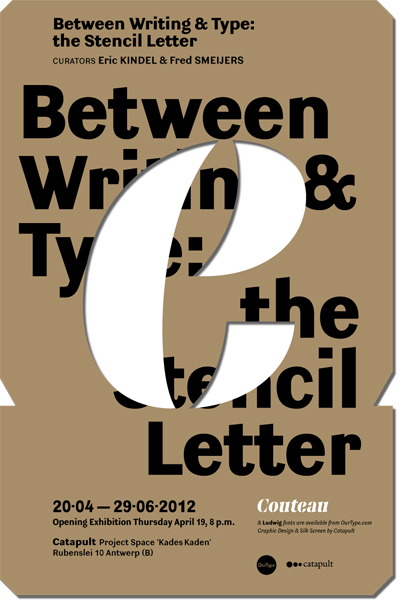 Between Writing & Type: the Stencil Letter is an exhibition of stencil letters from the 18th century to the present day. Assembled by Eric Kindel and Fred Smeijers, the exhibition will feature a rich selection of stencil letters in the context of artefacts, documents and ephemera, including stencil plates and stencilling devices, specimens and catalogues, patent inventions and much more. Accompaining the exhibition will be a series of new stencil fonts designed by Maurice Göldner, Pierre Pané-Farré and Fred Smeijers are published by OurType.