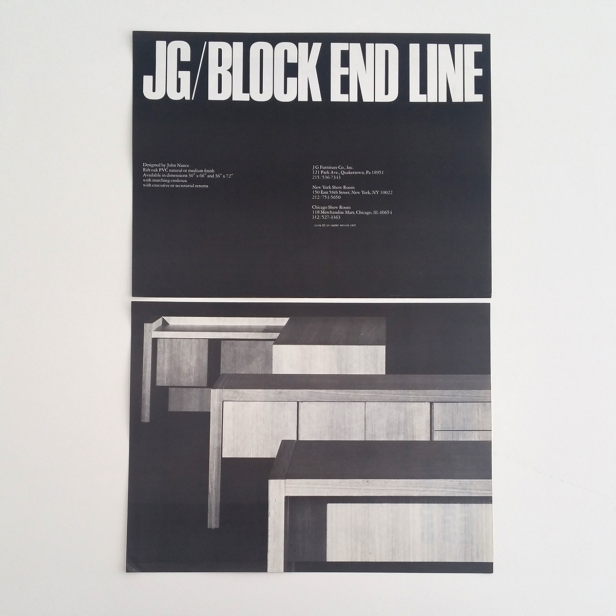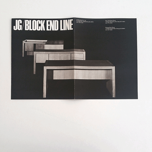 JG Furniture Co., Inc. was located in Quakertown, Pennsylvania and closed its doors in 1998 after nearly 70 years in business. Vignelli Associates designed these brochures for the company possibly around 1974.