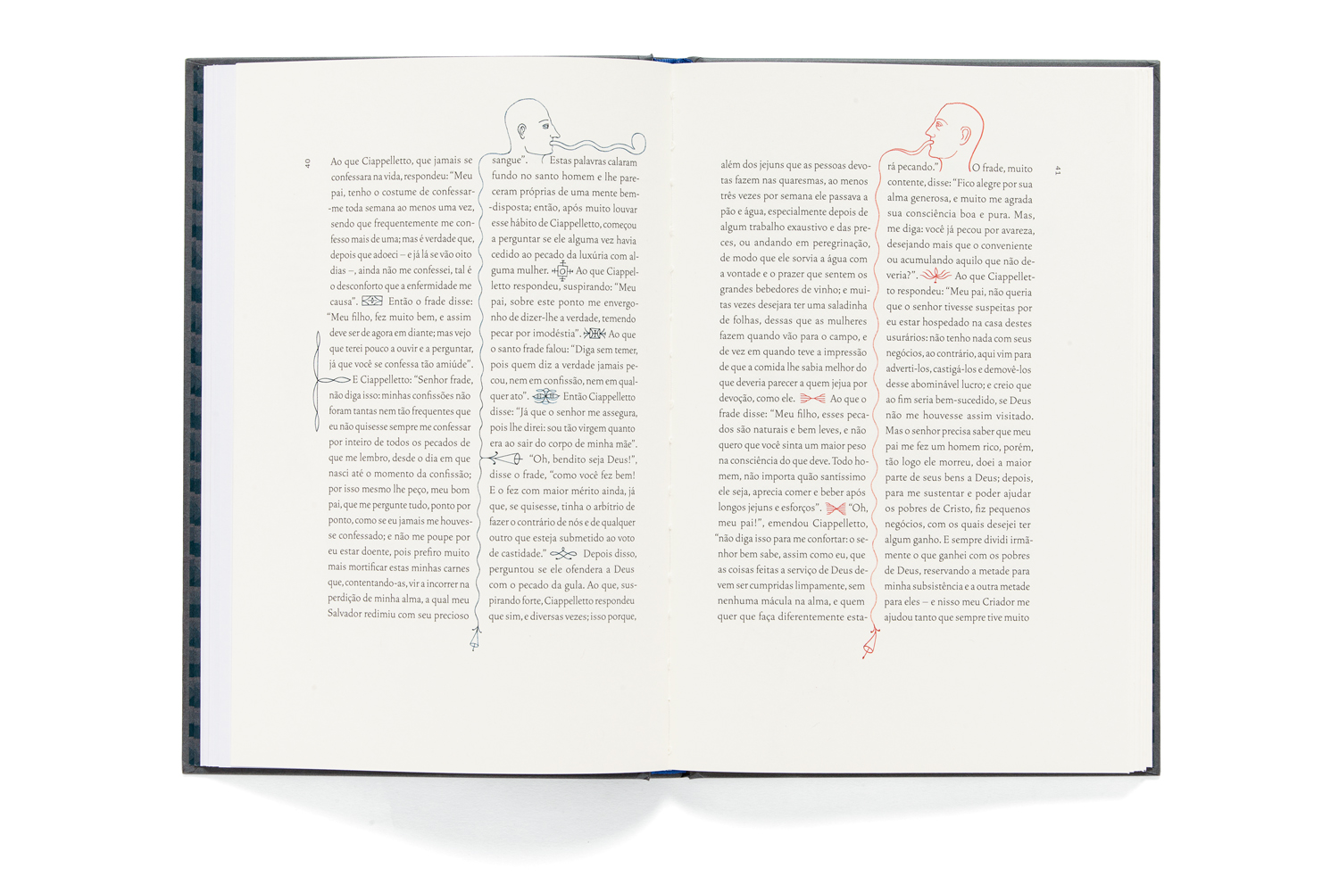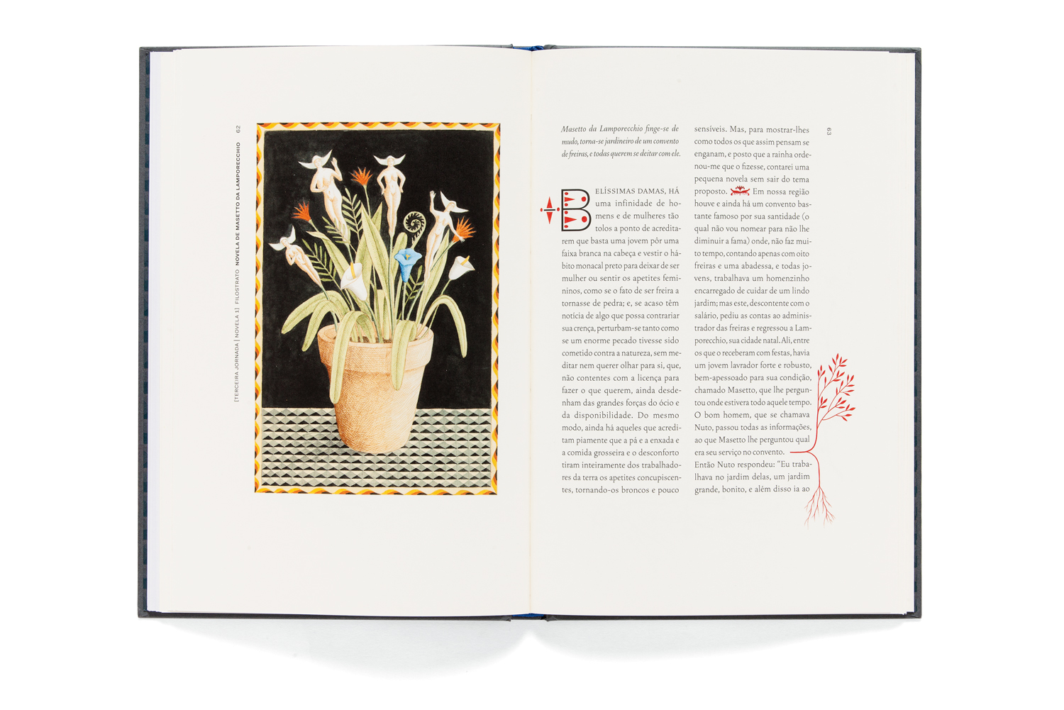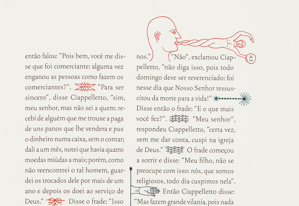 Decameron, Cosac Naify commemorative edition Contributed by Tereza Bettinardi on Oct 29th, 2016. Artwork published in 2013. License: All Rights Reserved. Commemorative editon of Boccaccio’s 700th birthday. The book contains 10 selected novellas richly illustrated by artist Alex Cerveny. Photo: Tereza Bettinardi. License: All Rights Reserved. Artwork by Tereza Bettinardi. License: All Rights Reserved. License: All Rights Reserved. License: All Rights Reserved. License: All Rights Reserved. Typefaces More about FaktGet FaktMore about VendettaGet Vendetta Formats Books (6404) Topics Literature (2983) Designers/Agencies Tereza Bettinardi (28) Elaine Ramos (2) Tagged withDecameron (2)Cosac Naify (6)book covers (5745)book interiors (3559)illustration (1544)inline images (114)initials (225)drop caps (425)Portuguese (language) (527) Artwork location Brazil (548) São Paulo (225) In SetsField Journal (Margaret Dixon) (12)Designs by Women (Fonts In Use Staff) (3454)Pairings (Sarah Brown) (45)Book Design (Lucas Bevilaqua) (1370)Beautiful Typesetting (Lucas Bevilaqua) (684)Illustration (Lucas Bevilaqua) (335)BR (Lucas Bevilaqua) (92)Book typography (Eva Silvertant) (5)Favourites (Lucas Bevilaqua) (1150)Inspo (Saman Deriss Sam) (106) Post a comment Name Email – will not be published Website Your response Submit Comment More Fakt in use Fraud, Fake and Fame2016Rimini BerlinContributed by Rimini Berlin Birthday card for Florian Hardwig2015Stephen ColesContributed by Stephen Coles Hew Locke: The Procession, ICA Boston2024Angela TorchioContributed by Angela Torchio Sponsor More in Literature Oder sind es Sterne by Eva Munz2021Middlecott DesignJudith BanhamContributed by Florian Hardwig Staff Pick Stanisław Lem fictional covers2017Marcin WicharyContributed by Mathieu Triay Staff Pick Leave Cancelled, Alfred Knopf edition1945Paul RandContributed by Tânia Raposo In the Flesh by Clive Barker (Poseidon)1987Fred MarcellinoContributed by Florian Hardwig More in Books Ad Interum … by V. Z. Stolanský, Edice Serpentina1931unknownContributed by Florian Hardwig Taking Back The Throne2018GrandsonKillian WalshJake HeaveyContributed by Killian Walsh Mario’s jarana / La jarana de Mario2016Alec DempsterManuel López RochaContributed by Huerta Tipográfica Les Pensées – Jules Renard1991unknownPhoto(s) by Alexis Orloff on Flickr. More Fonts In Use Marsden Hartley: The German paintings 1913–1915 at Neue Nationalgalerie2014Thoma+SchekorrContributed by Florian Hardwig Staff Pick Canton Elektronik logo1974Christof GassnerContributed by Stephen Coles Staff Pick RUNdgang 2025, HBKsaarc. 2025Studio 63Jinyu WangLena GörgenContributed by Manuel Wesely Staff Pick Pierre Huyghe monograph2013deValenceContributed by Nathan Prost Staff Pick